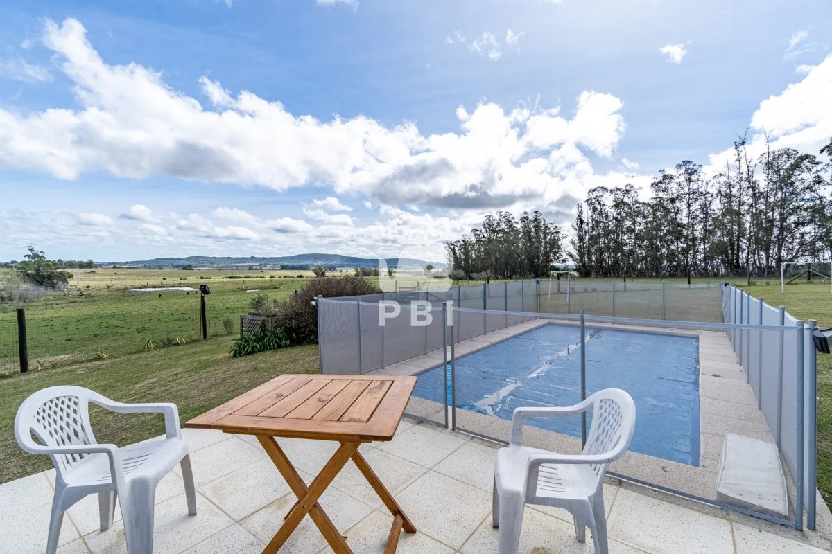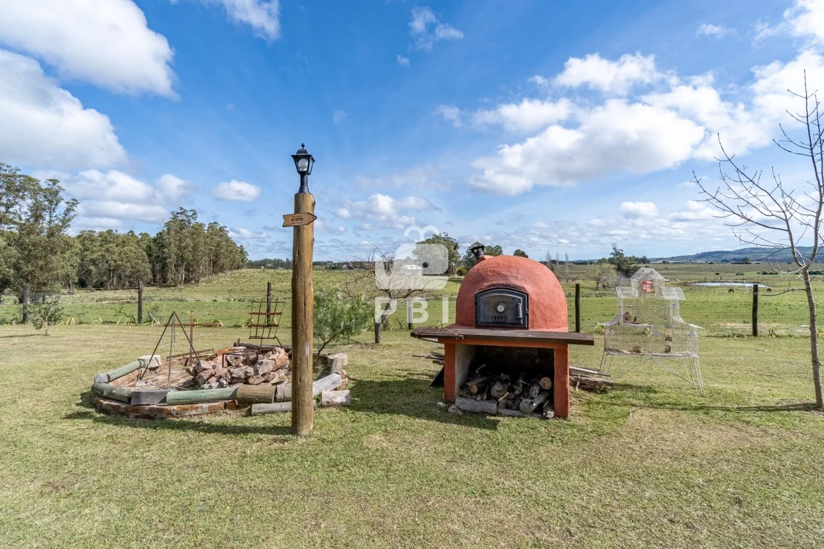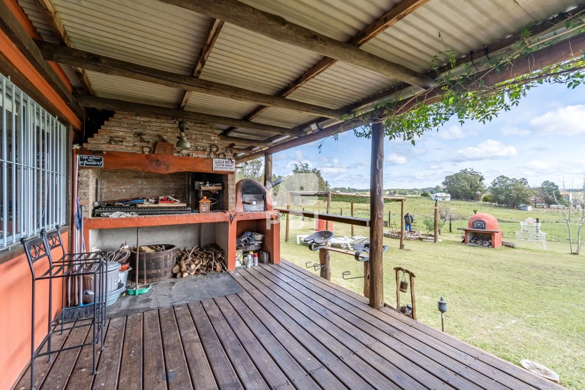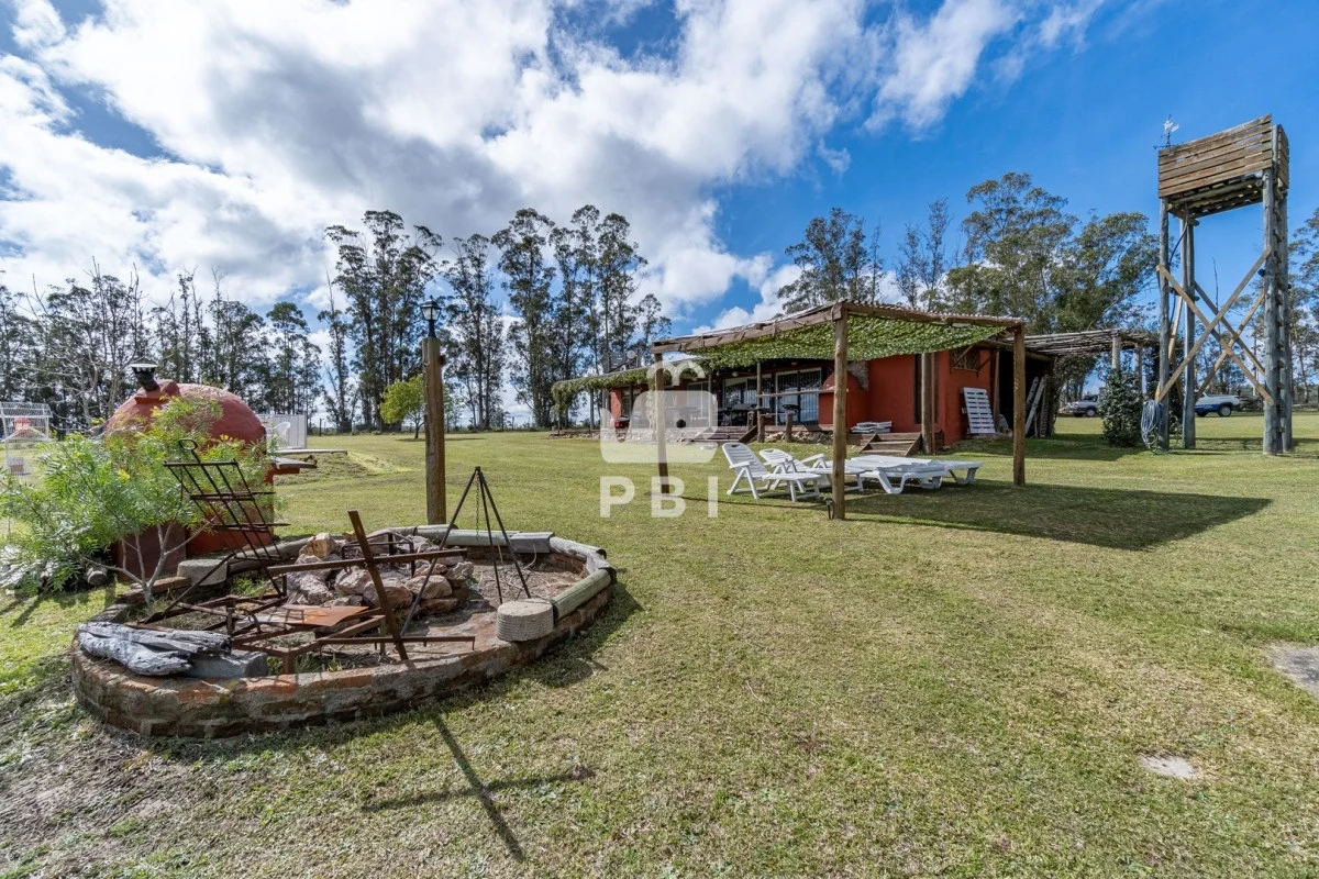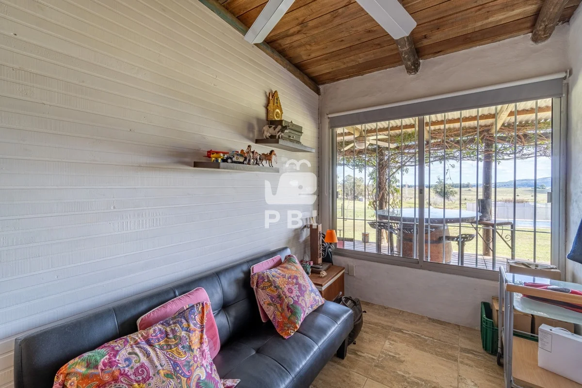 Chacra en venta de 5HA 5000m² de superficie, en un lindo entorno natural con vista a las sierras, tiene monte de eucaliptus, 3 tajamares, alambrada. Con casa de 1 dormitorio en suite con jacuzzi, living comedor con cocina integrada y estufa, otro baño completo, terraza con parrillero y horno a leña. Piscina y cancha de futbol.