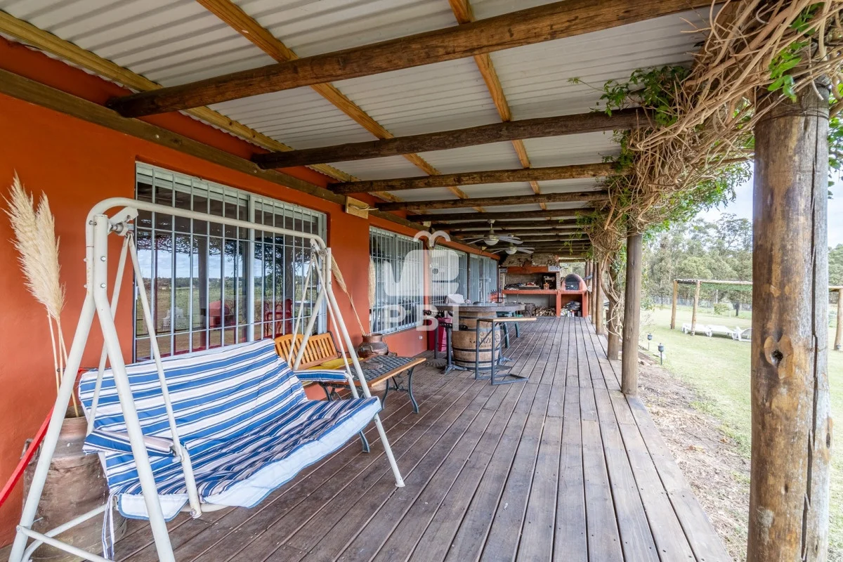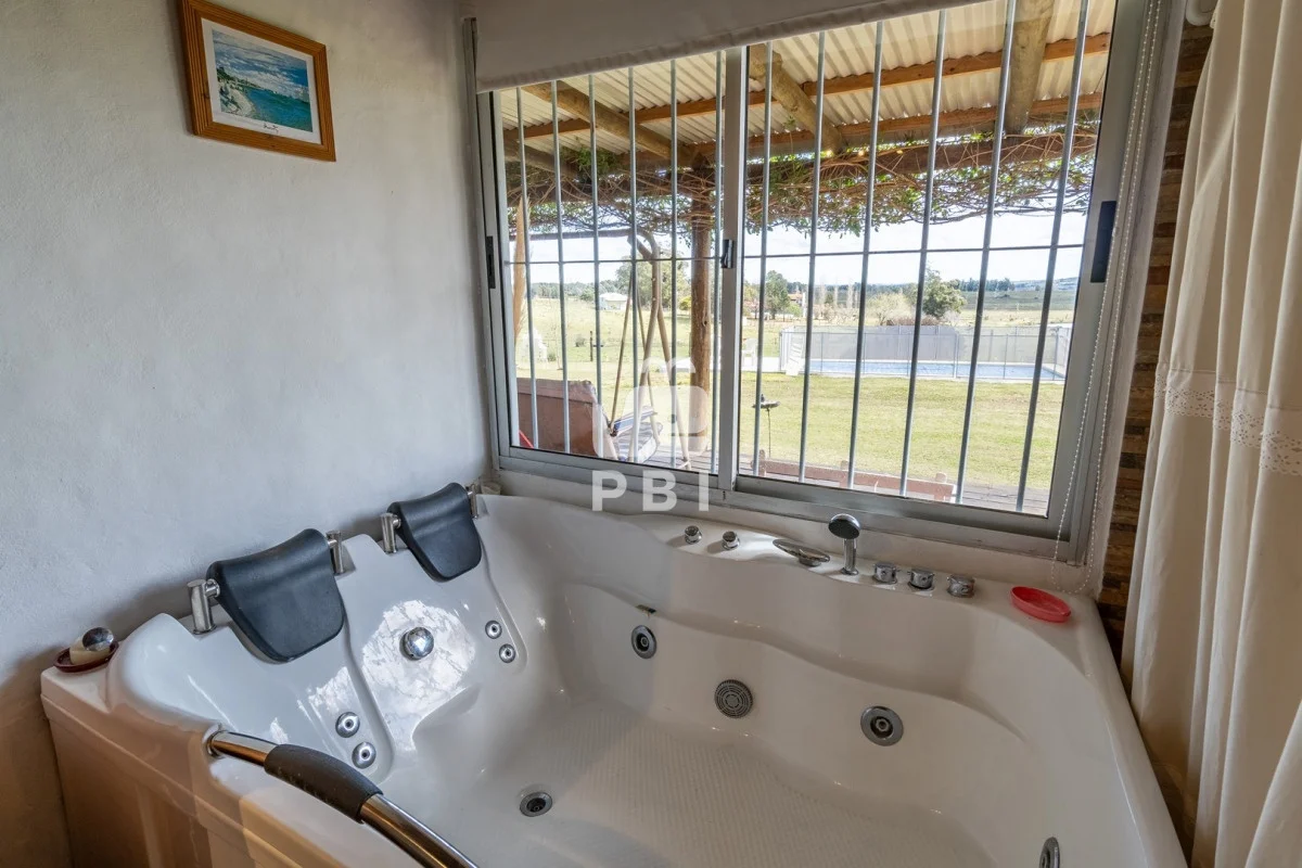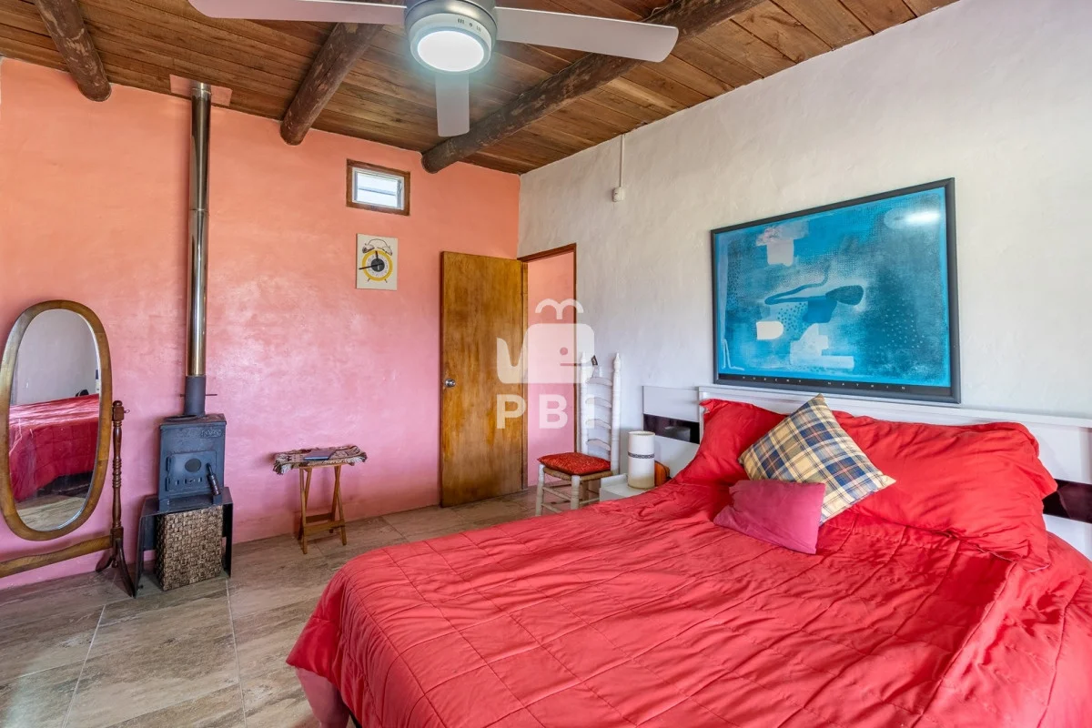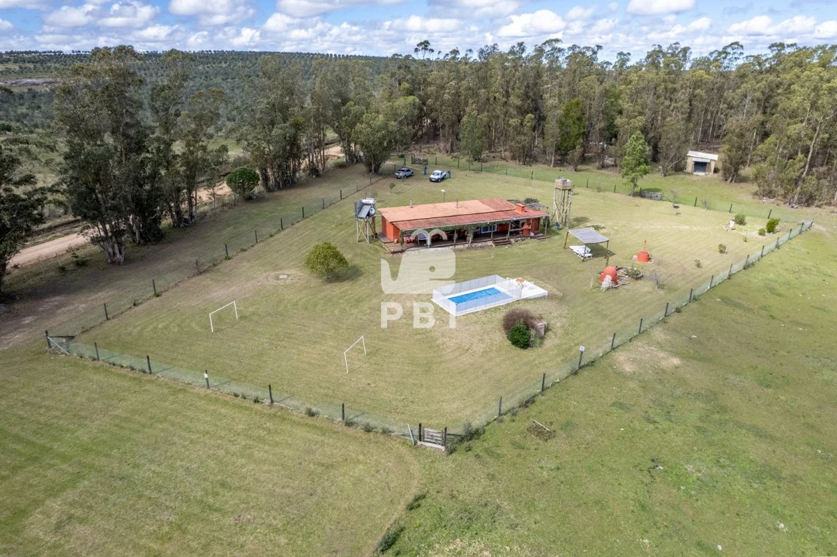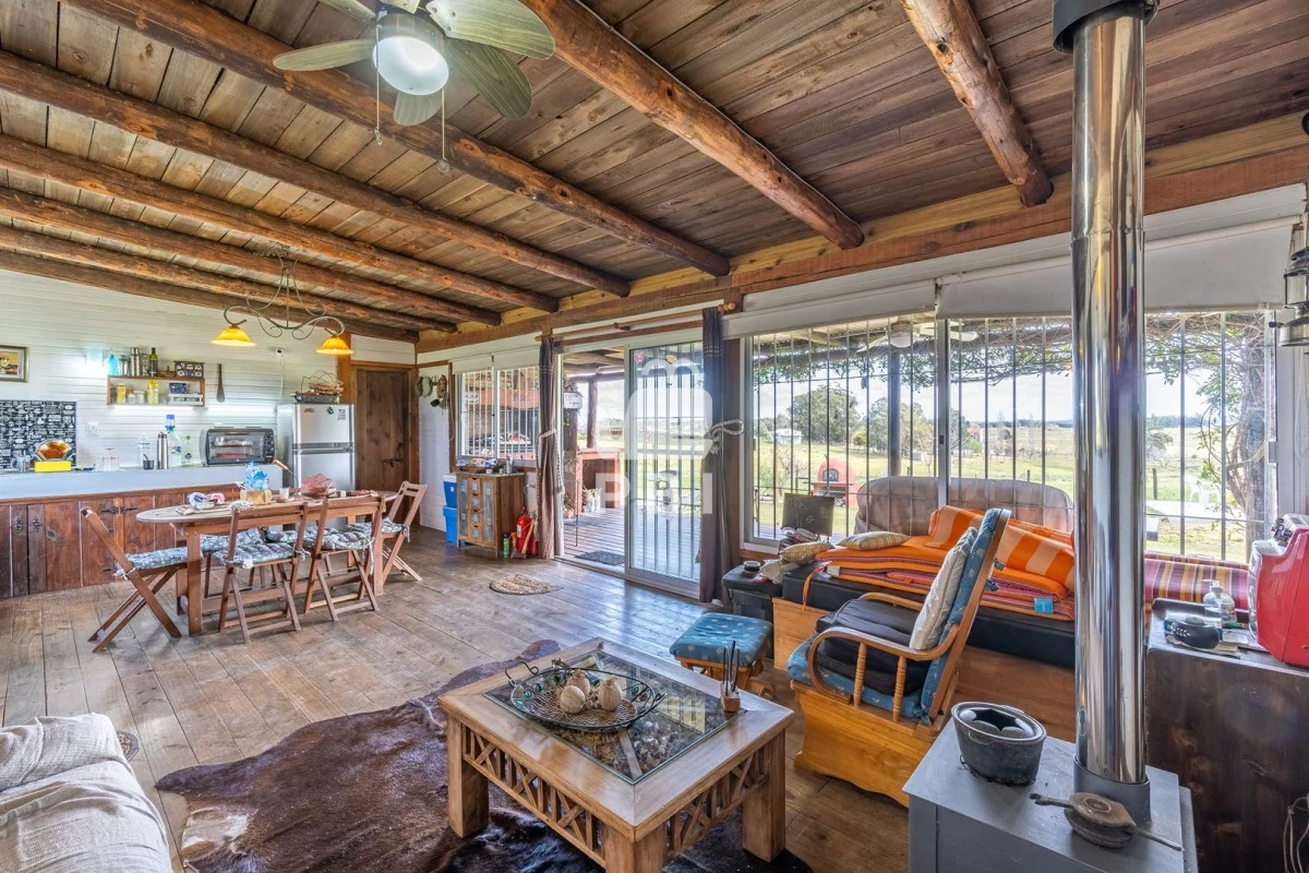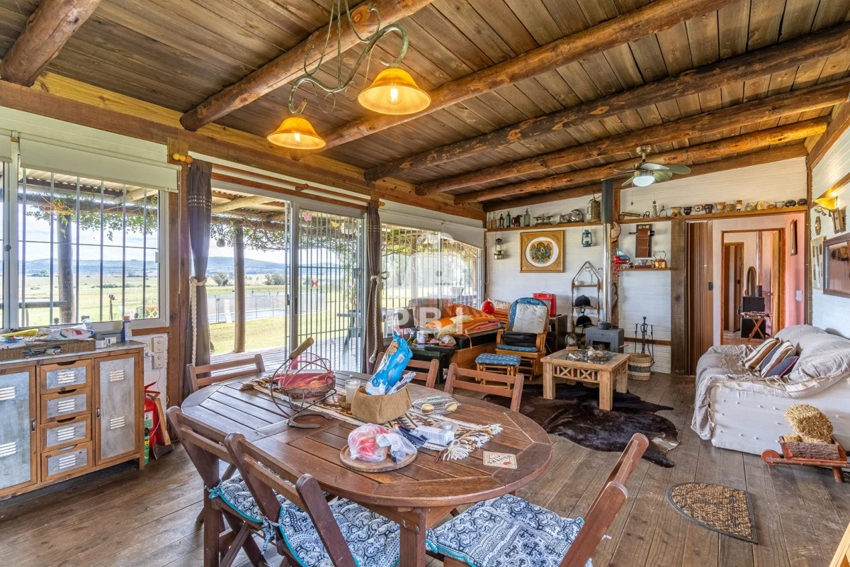 Chacra en venta de 5HA 5000m² de superficie, en un lindo entorno natural con vista a las sierras, tiene monte de eucaliptus, 3 tajamares, alambrada. Con casa de 1 dormitorio en suite con jacuzzi, living comedor con cocina integrada y estufa, otro baño completo, terraza con parrillero y horno a leña. Piscina y cancha de futbol.