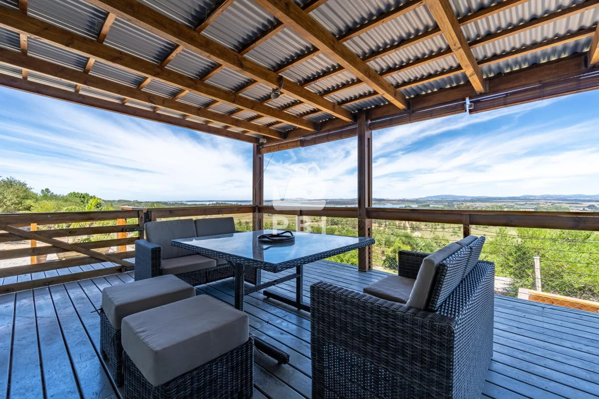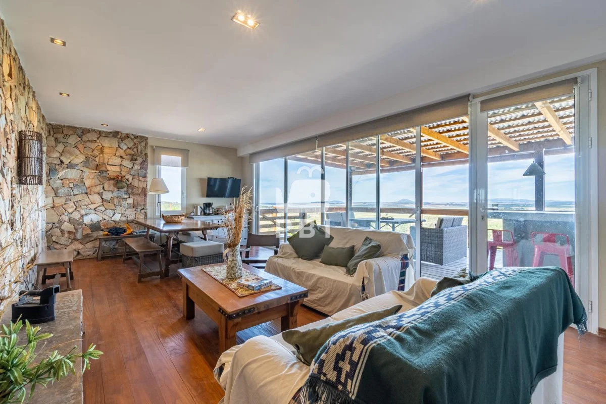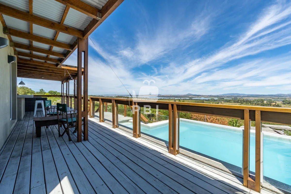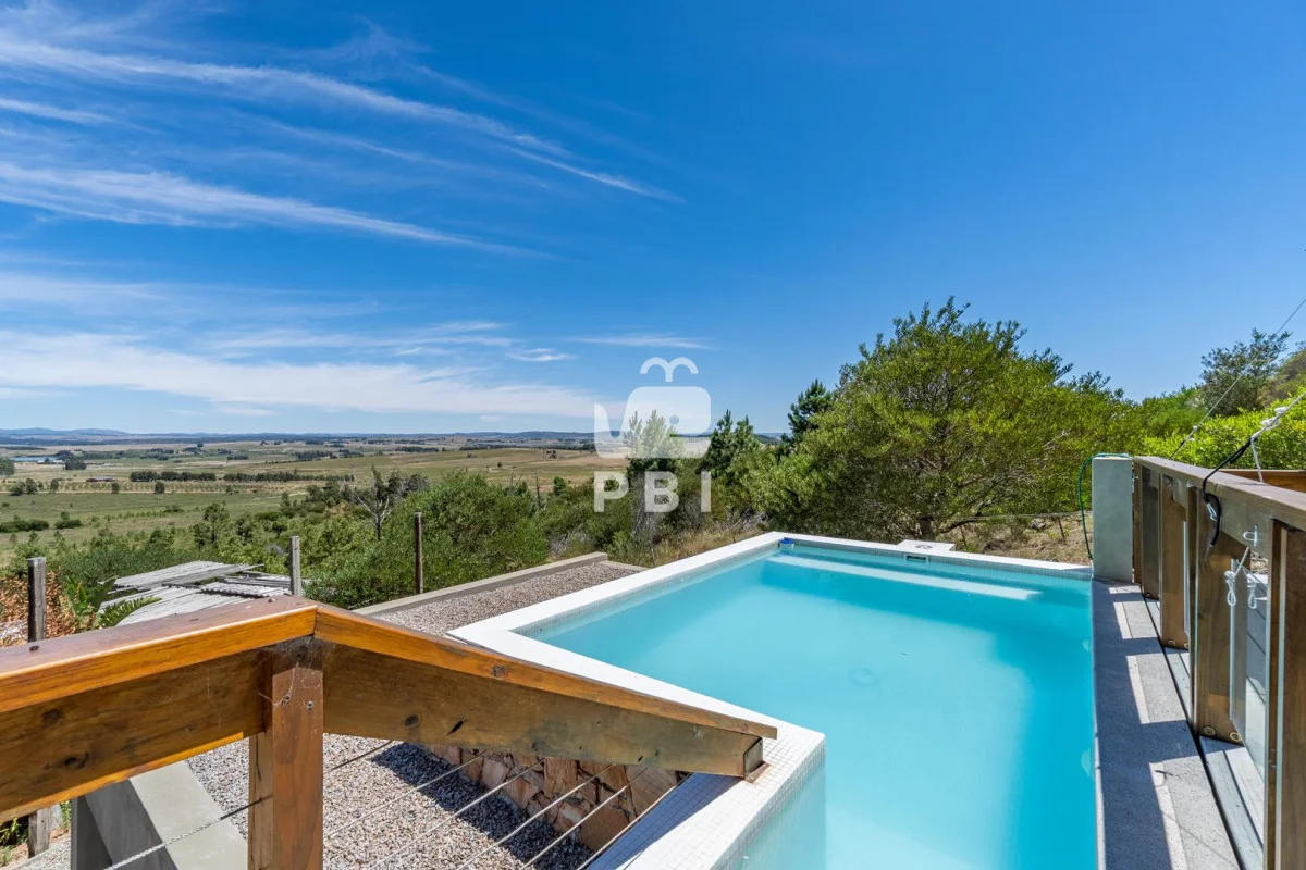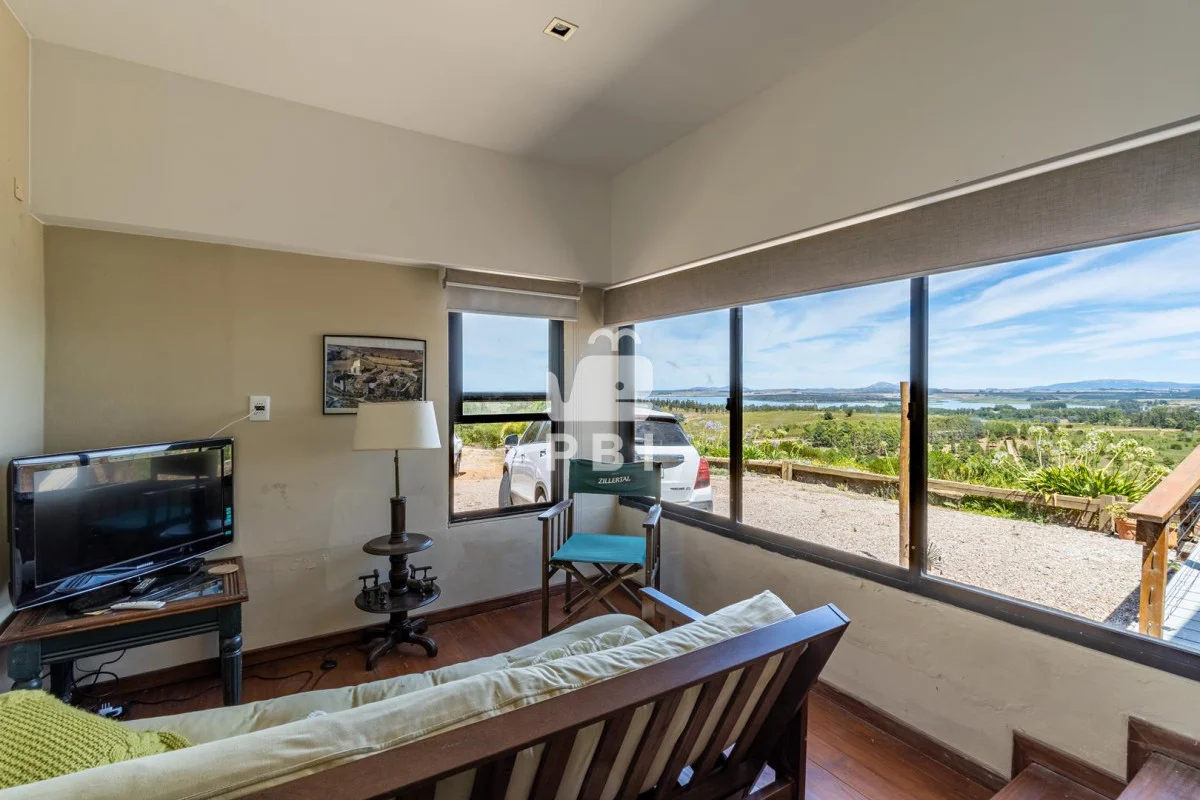 Desde la cumbre en la mitad de la propiedad se puede observar las sierras, la ciudad de San Carlos, el valle de Lapataia, Punta Del Este, el Mar de Solanas y la vista principal sobre la laguna del Sauce.