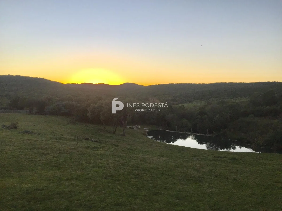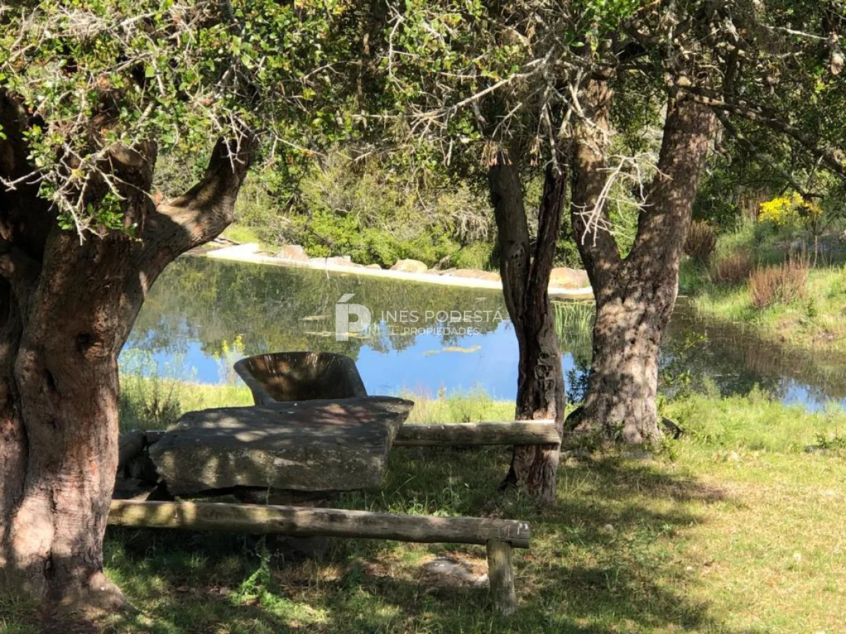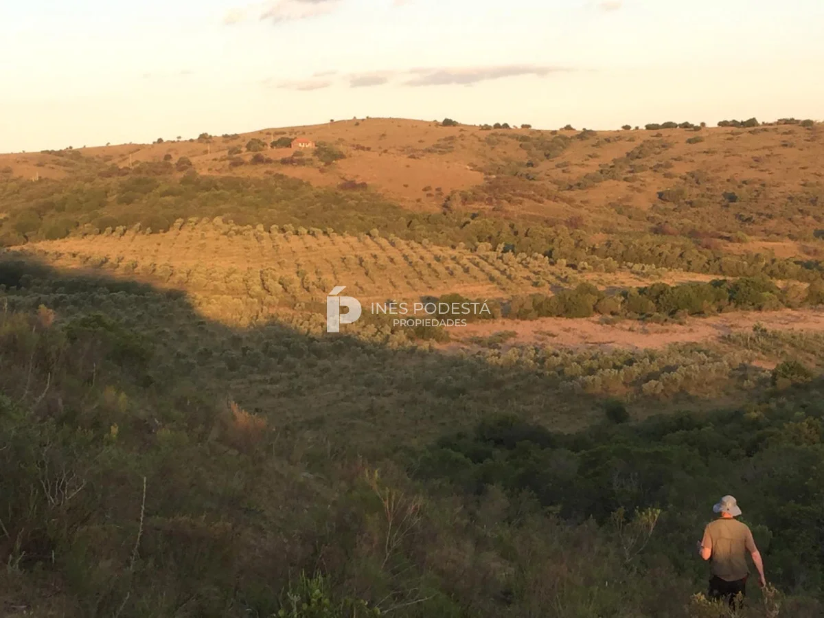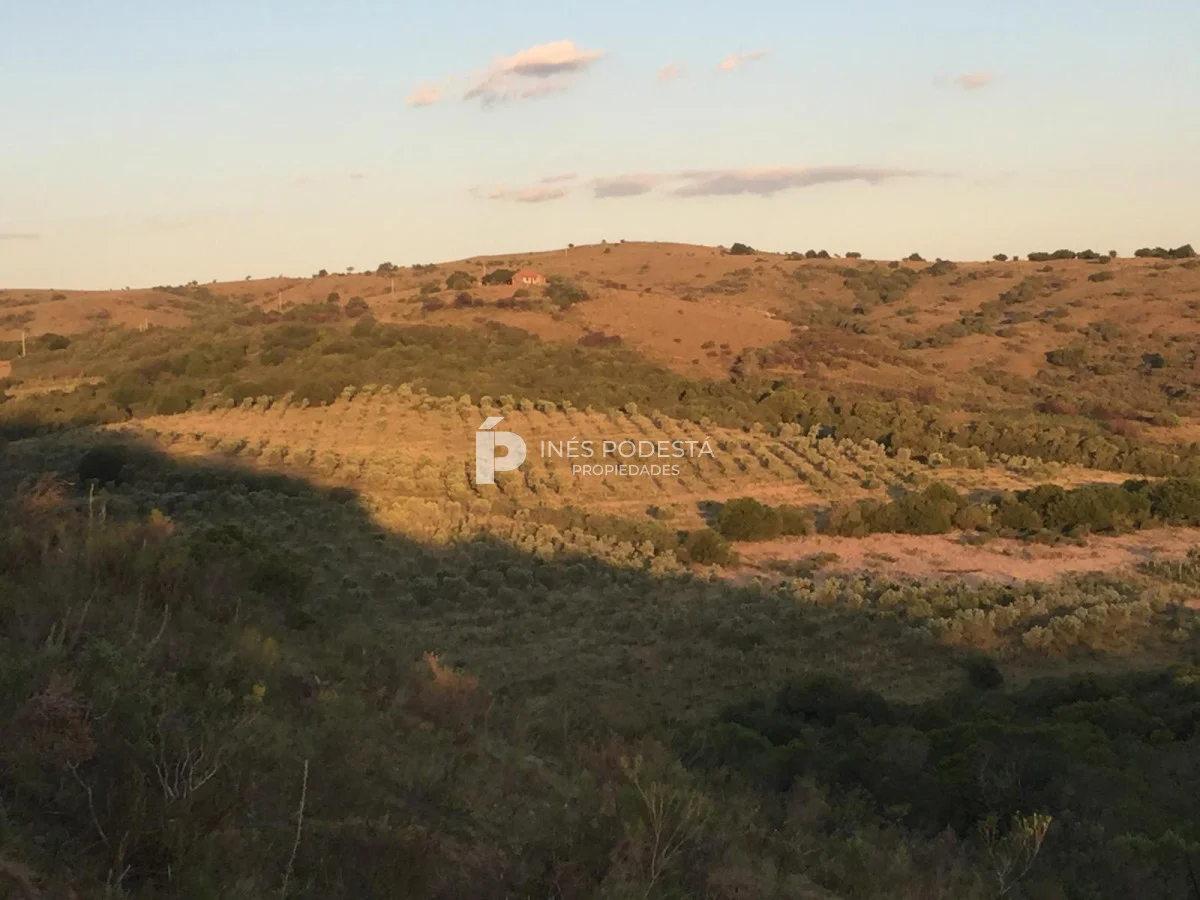 Muy pintoresco campo próximo a Sacromonte y a unos 16 kms de Pueblo Edén, así como también, a tan solo 50 kms de las playas de Punta Ballena, Punta del Este, con paisajes serranos, cañadas rodeadas por el arroyo Carapé, lagunas de 80 metros por 16 metros con 2 farallones de 15 metros de altura con riscos de piedra de 15 metros de altura, árboles nativos, 10 hc de olivares (variedades Picual y arbequina), taperas con corrales circulares de piedra, 3 cerros de250 metros de altura, montes nativos, flora y fauna autóctona (ciervos, carpinchos, zorros, zorrillos, lagartos, liebres, jabalíes, aves, etc. Además muy simpática casa de campo con living comedor con estufa a leña, más otra estufa a leña, cocina americana con desayunador, 3 dormitorios, 2 baños, estar, 3 calefactores a leña, deck de 50 m2 con parrillero y horno de barro, represa con espejo de agua a 30 mts de la casa, galpones, casa de casero de 2 contenedores con 1 baño (estado regular pero recuperable). Se le puede anexar 44 hectáreas con gran potencial por el piletón de agua natural de 20 metros de diámetro, además de un risco de más de 300 metros de altura para hacer una vivienda y tener vista de 360 grados. Para disfrutar, descansar, soñar, leer un buen libro, conectarse 100% con la naturaleza. Consulte por menor tamaño de campo!!