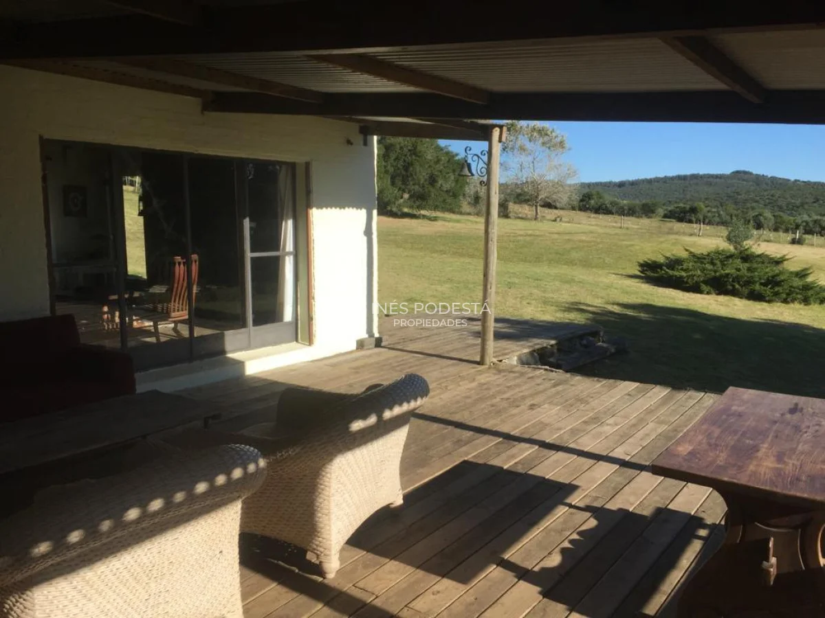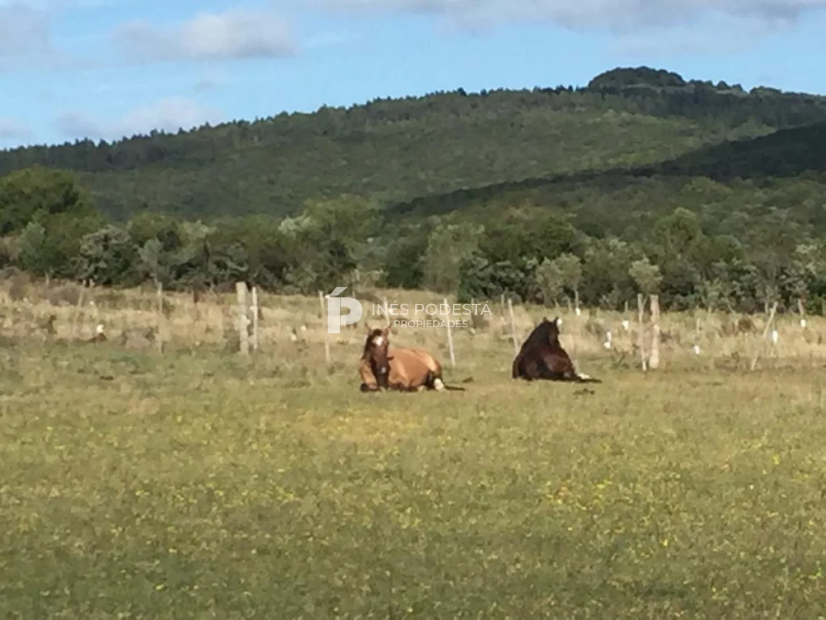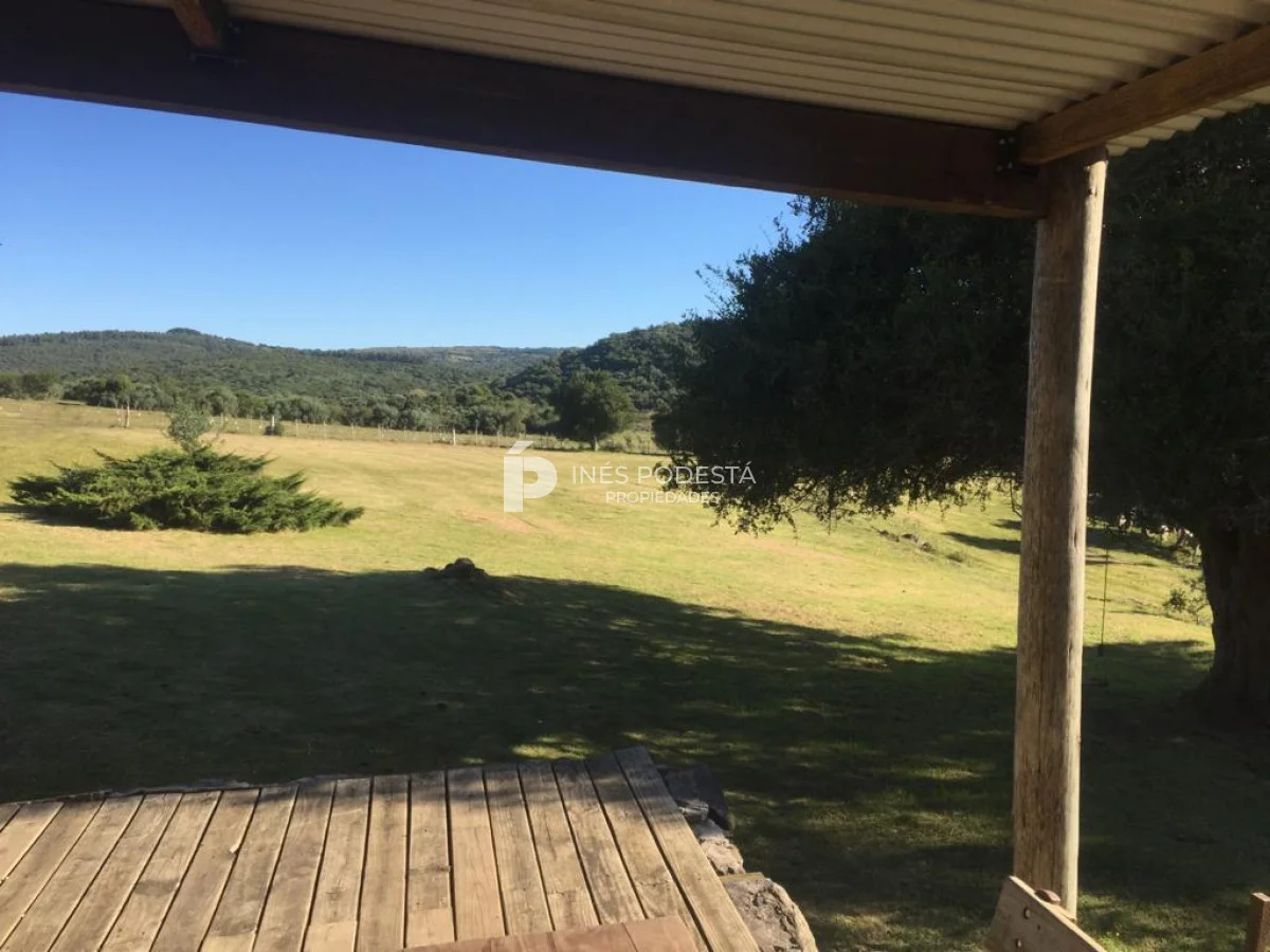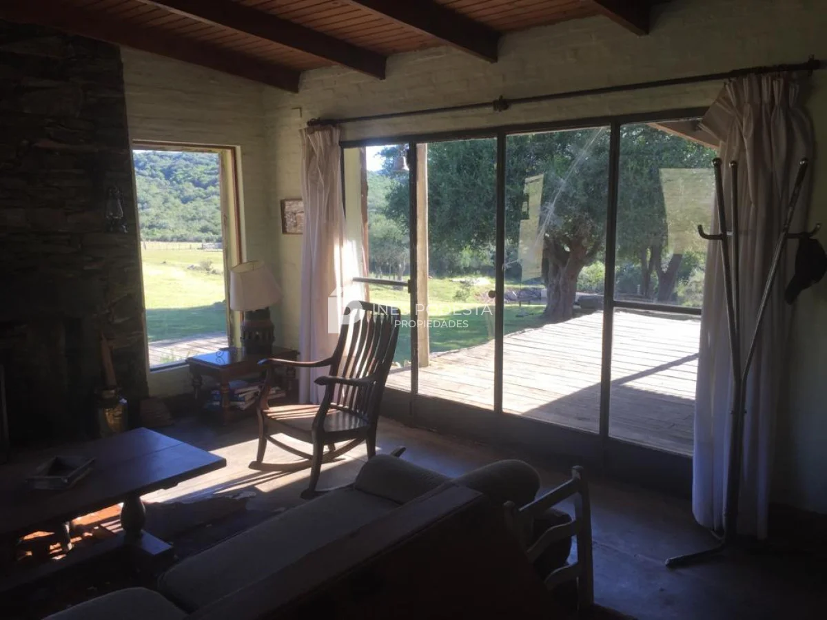 Muy pintoresco campo próximo a Sacromonte y a unos 16 kms de Pueblo Edén, así como también, a tan solo 50 kms de las playas de Punta Ballena, Punta del Este, con paisajes serranos, cañadas rodeadas por el arroyo Carapé, lagunas de 80 metros por 16 metros con 2 farallones de 15 metros de altura con riscos de piedra de 15 metros de altura, árboles nativos, 10 hc de olivares (variedades Picual y arbequina), taperas con corrales circulares de piedra, 3 cerros de250 metros de altura, montes nativos, flora y fauna autóctona (ciervos, carpinchos, zorros, zorrillos, lagartos, liebres, jabalíes, aves, etc. Además muy simpática casa de campo con living comedor con estufa a leña, más otra estufa a leña, cocina americana con desayunador, 3 dormitorios, 2 baños, estar, 3 calefactores a leña, deck de 50 m2 con parrillero y horno de barro, represa con espejo de agua a 30 mts de la casa, galpones, casa de casero de 2 contenedores con 1 baño (estado regular pero recuperable). Se le puede anexar 44 hectáreas con gran potencial por el piletón de agua natural de 20 metros de diámetro, además de un risco de más de 300 metros de altura para hacer una vivienda y tener vista de 360 grados. Para disfrutar, descansar, soñar, leer un buen libro, conectarse 100% con la naturaleza. Consulte por menor tamaño de campo!!