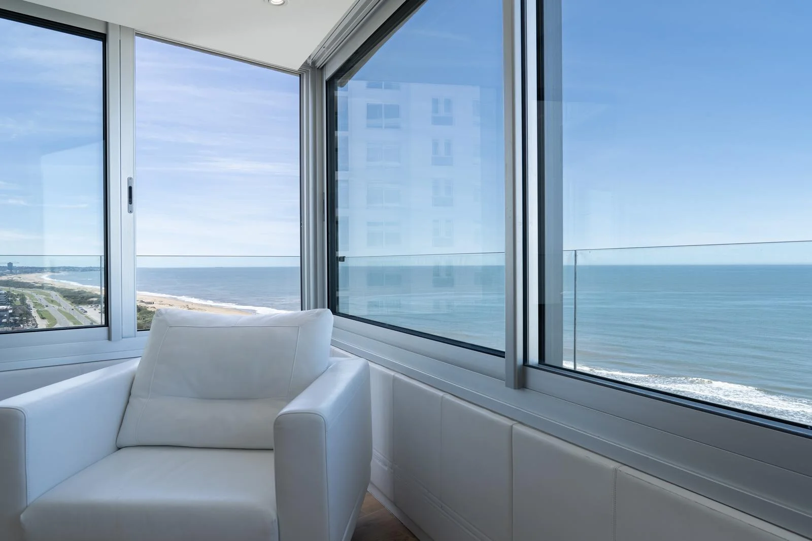 Living comedor amplio con vista al mar, ventanas con doble vidrio. Losa sectorizada.
