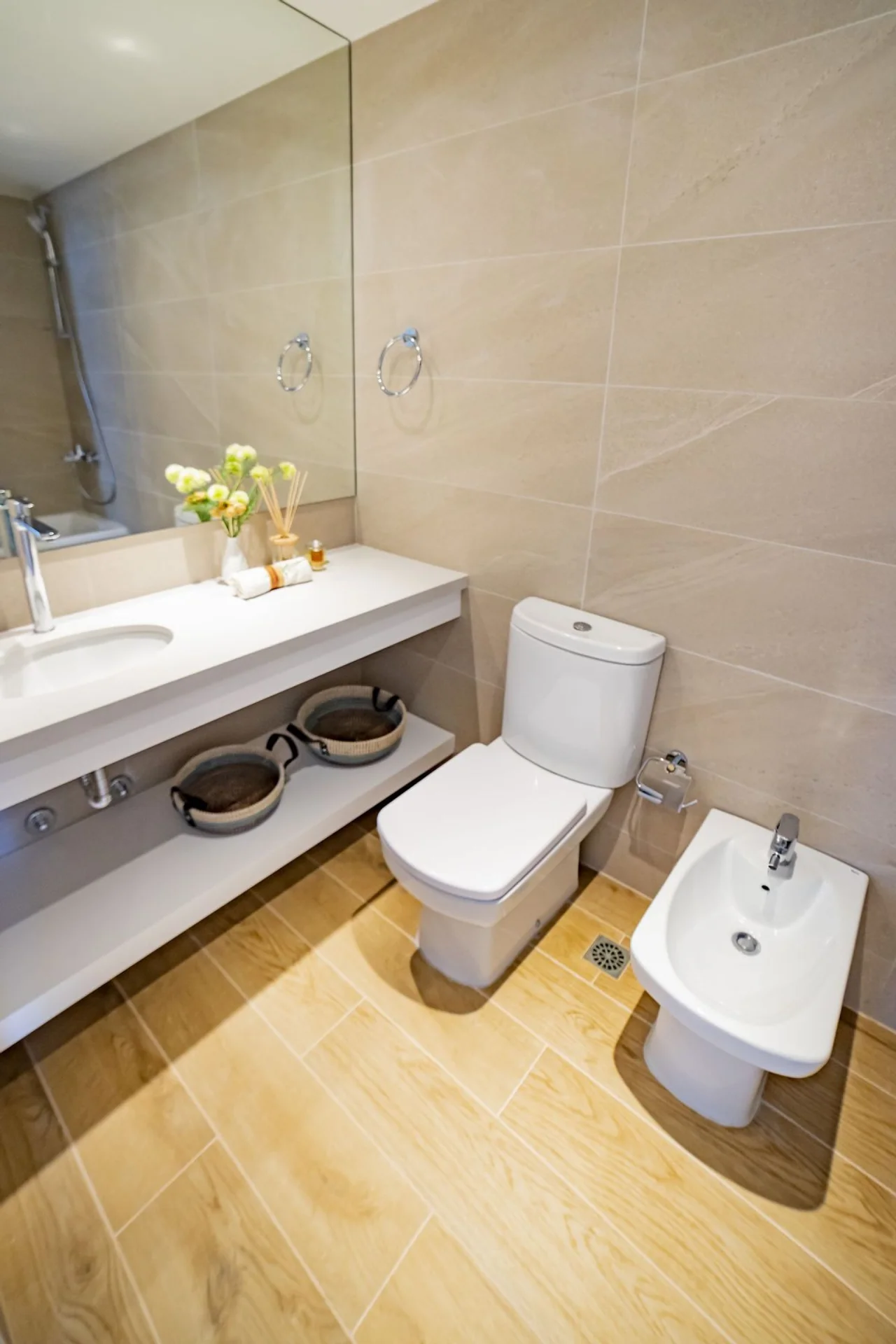 La distribución contempla dos habitaciones en suite, cada una diseñada para ser un santuario personal. Un toilette de cortesía complementa los dos baños completos, mientras que un luminoso balcón te conecta directamente con el paisaje costero. El lavadero integrado resuelve con practicidad las necesidades cotidianas.