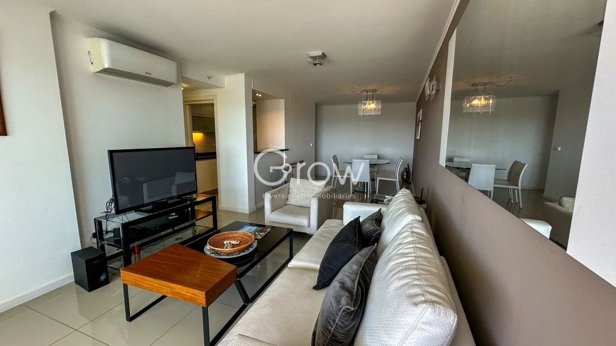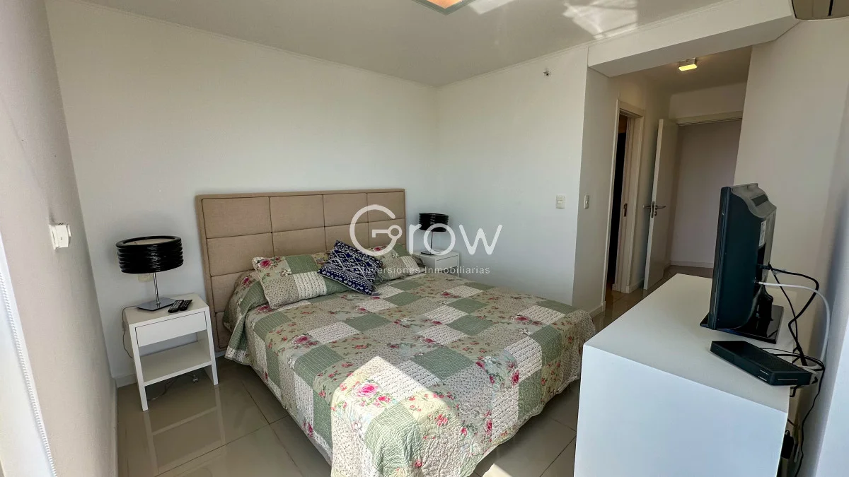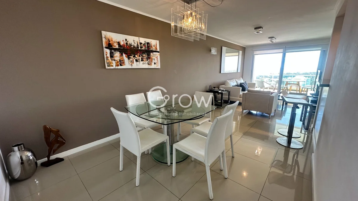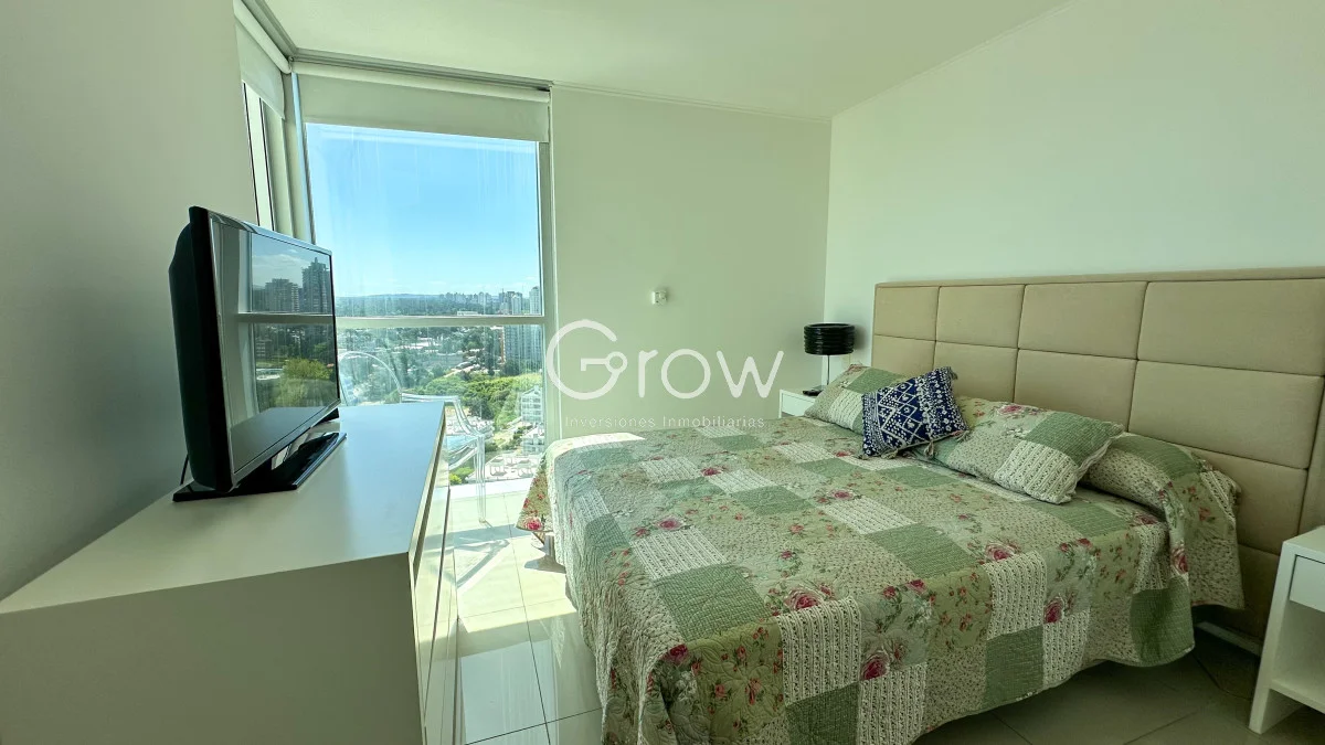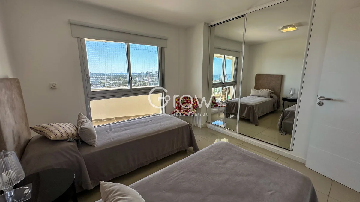 Exclusivo apartamento de 2 dormitorios en una de las mejores torres de Punta del Este, gran living comedor con salida a la terraza, cocina integrada, dos dormitorios con dos baños de los cuales tiene uno en suite.