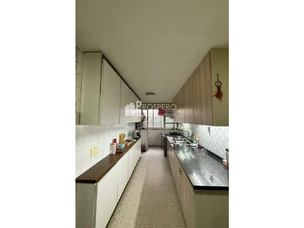 Desde allí, se accede a la cocina que también es muy amplia, con mucho lugar de almacenamiento, conexión para lavavajillas, mesada de 3 mts. En granito nueva.