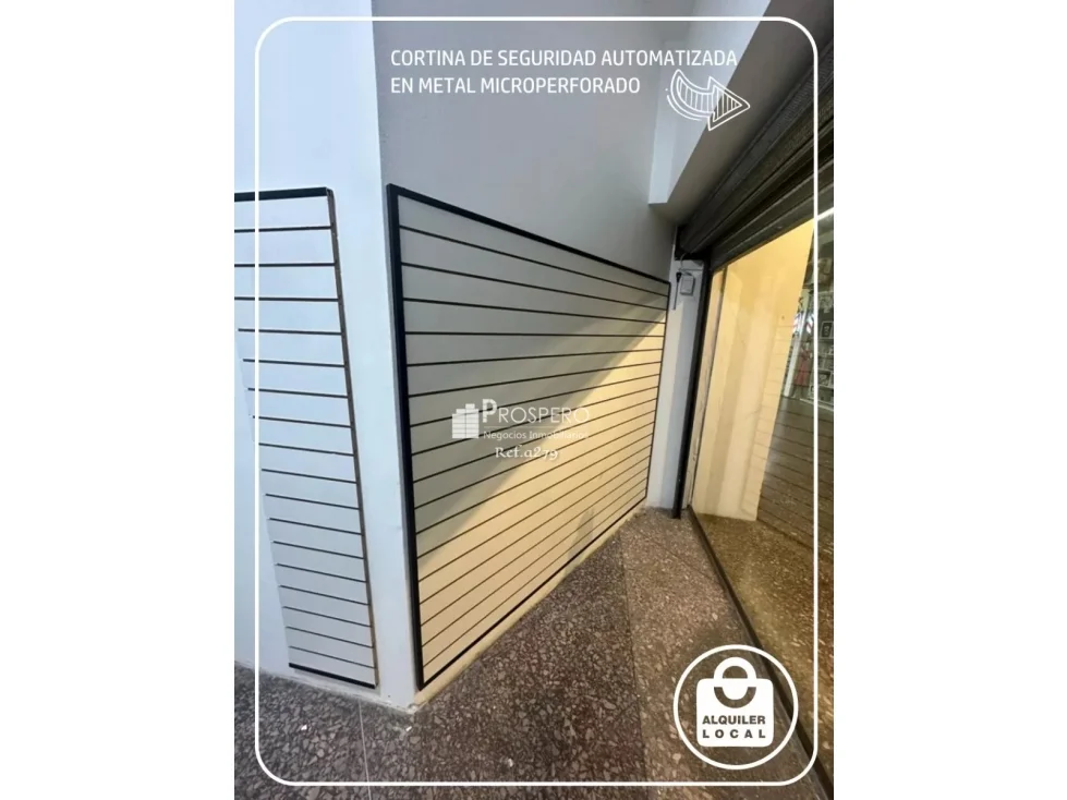 El local cuenta en sus dos aberturas (vidriera interior y ventana exterior) con cortinas de enrollar en metal microperforado automatizadas las cuales le brindan una barrera sólida y resistente que ayuda a prevenir cualquier intento de robo.