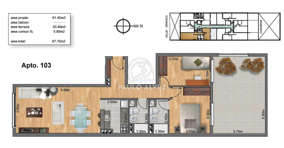 Últimas unidades. Edificio de 4 plantas a estrenar a menos de 100 m del mar en Malvín. Unidades al frente con 55 m² de interiores distribuidos por living comedor, cocina con desayunador y muebles bajo y sobre mesada, dos dormitorios (principal en suite) y baño social completo. Balcón / patio y cochera fija. El edificio cuenta con servicios tales como parrillero, solárium y terraza en el último piso. Circuito cerrado de vigilancia por Video Cámara, portero eléctrico con código de última generación y cerradura con tarjeta en acceso principal. Por más información contáctenos.