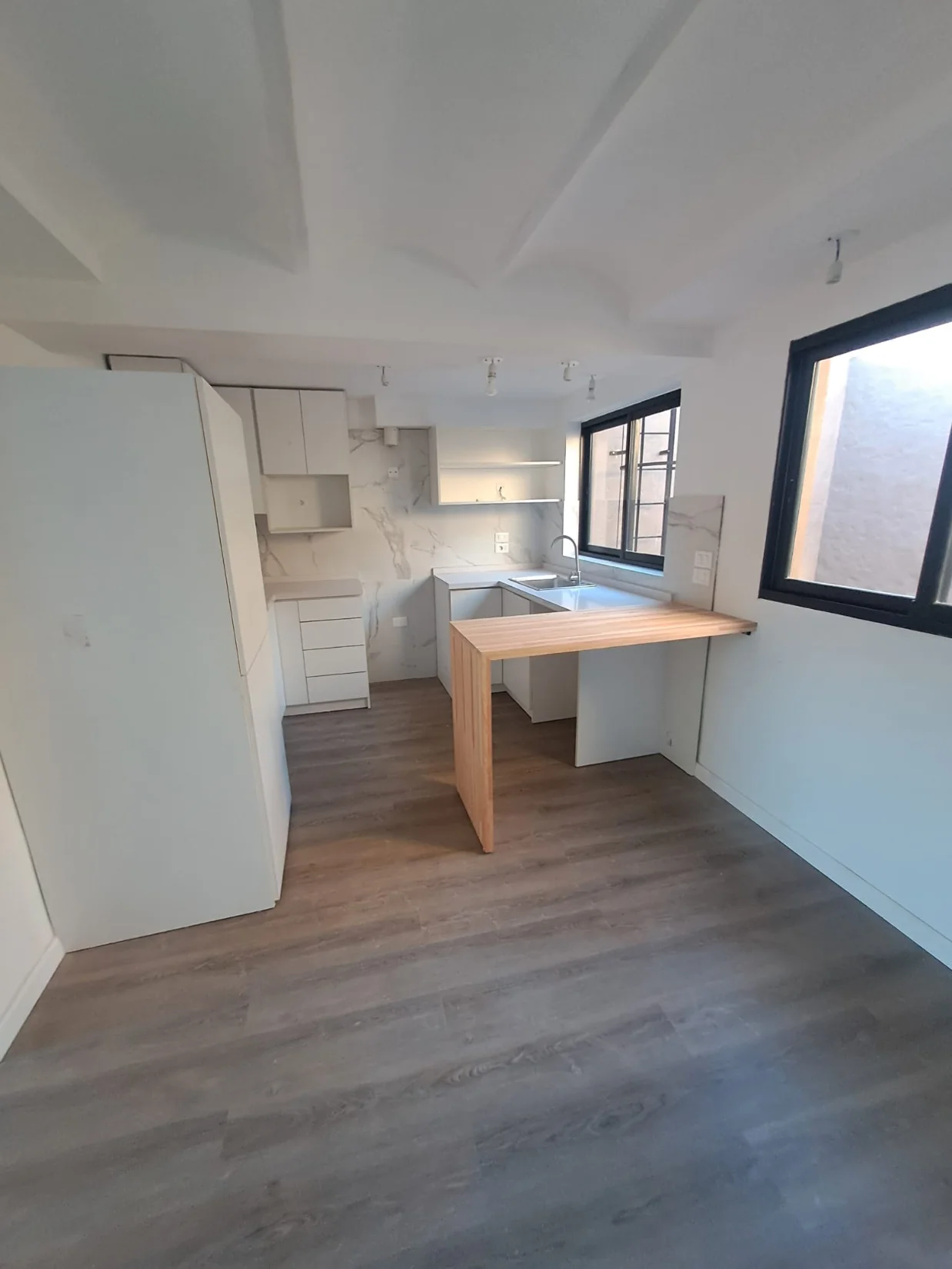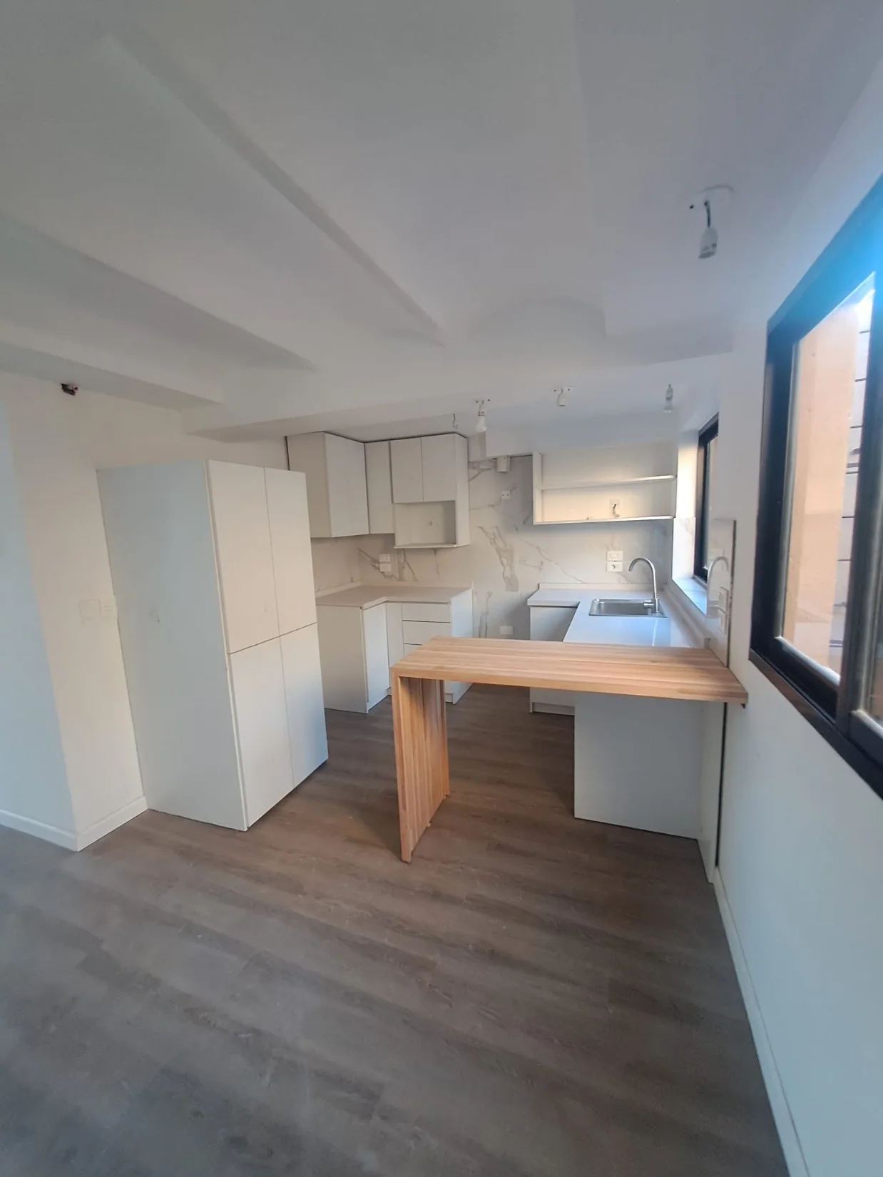 PISOS DE TABLAS VINILICAS 5MM DISEÑO MADERA, CORTINAS DE ENROLLAR DE ALUMINIO Y POLIURETANO, REJAS AL FRENTE, LIVING COMEDOR COCINA INTEGRADO, LA COCINA AMPLIA CON PREVISION DE TODOS LOS ELECTRODOMESTICOS TIENE MESADA DE SILESTONE 4CM , BARRA DE MADERA FINGER. MUY FUNCIONAL DORMITORIO PRINCIPAL Y LIVING AL FRENTE NORTE.