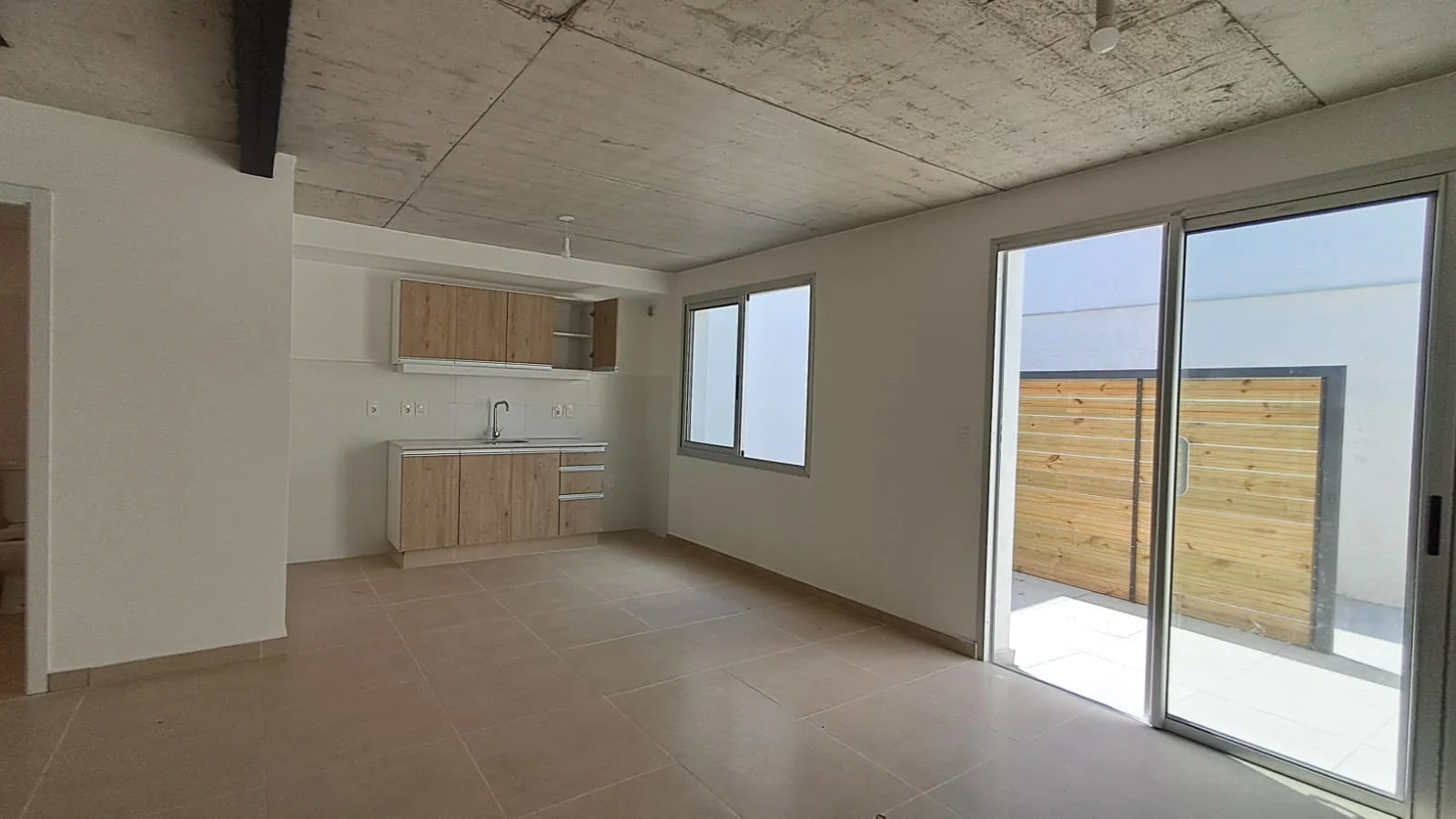 En Planta Baja living con cocina integrada y baño social con instalación de lavarropas