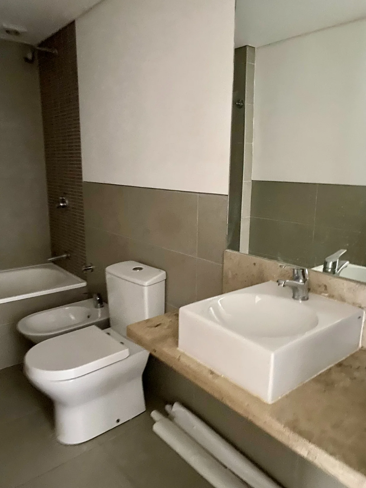 Hermoso apto. a pasos del Parque sobre Roque Graseras. Living comedor con cocina integrada con doble mesada, calefón y conexion para lavarropas. Salida a amplia terraza. Dos dormitorios con placard, el principal en suite. Lso dos baños de la unidad cuentan con bañera. Aire acondicionado en todos los ambiente. Barbacoa y lavadero de uso comun. Portería con amplio horario. VALE LA PENA VERLO.