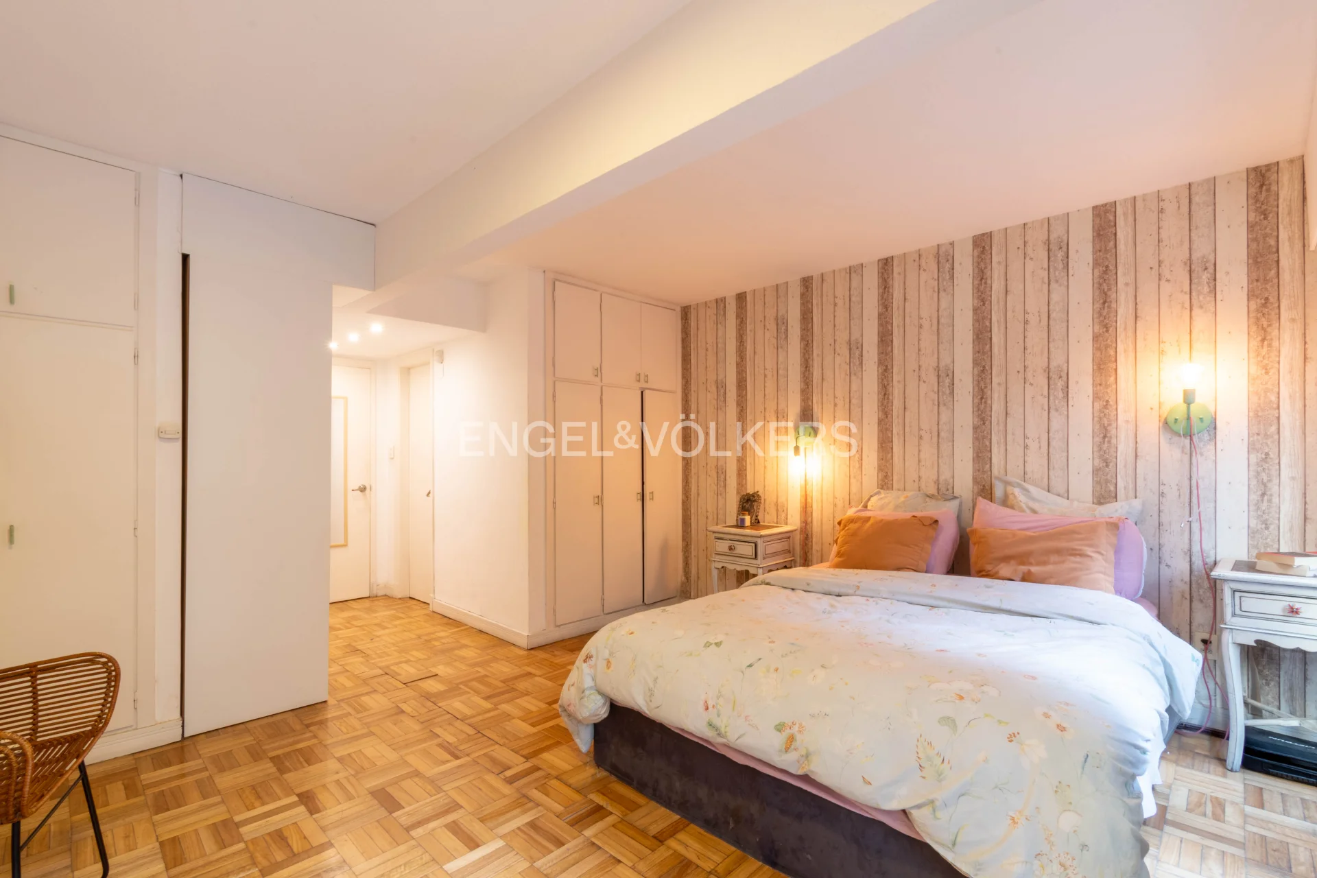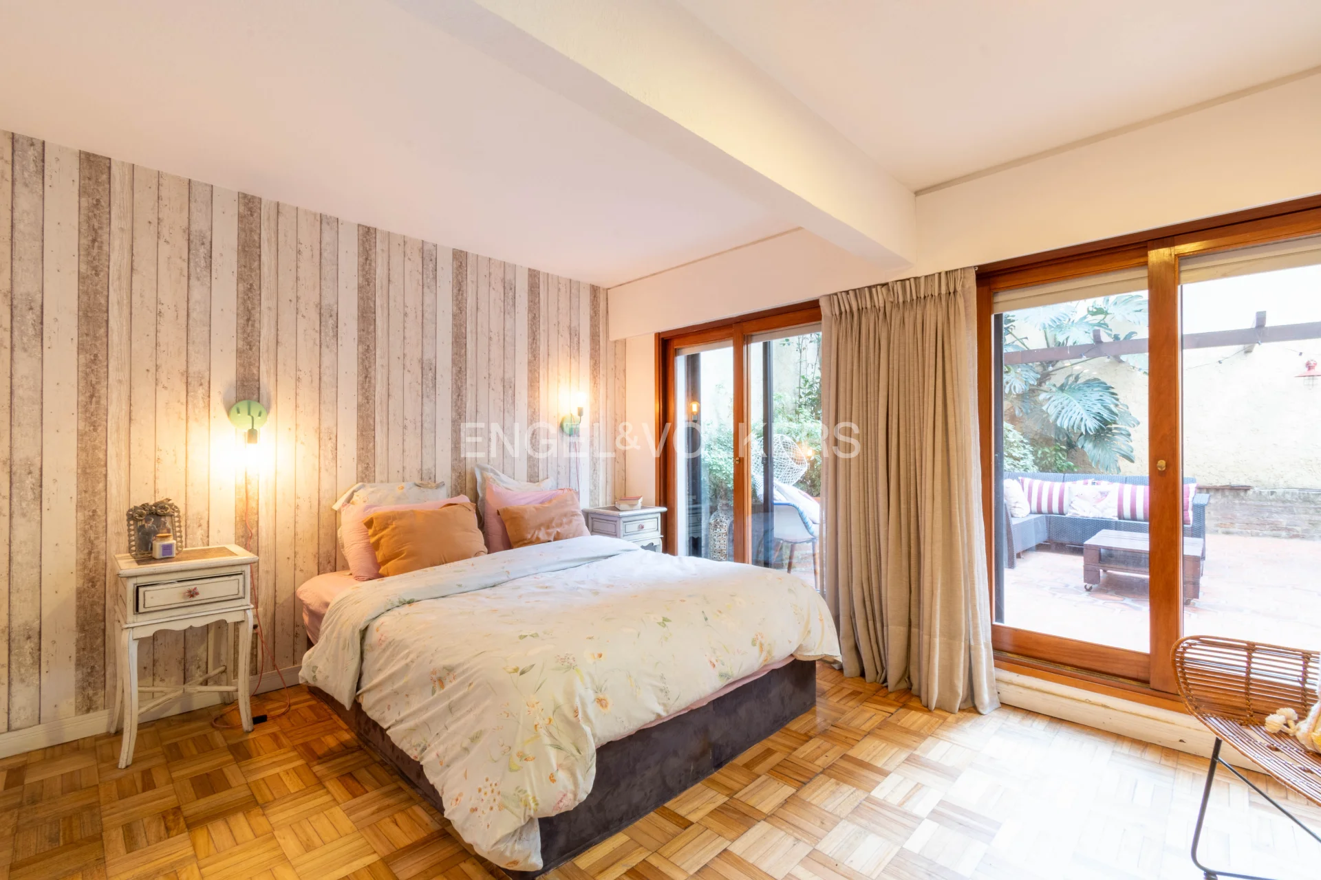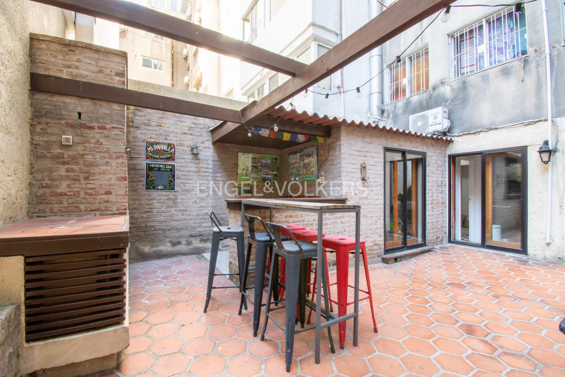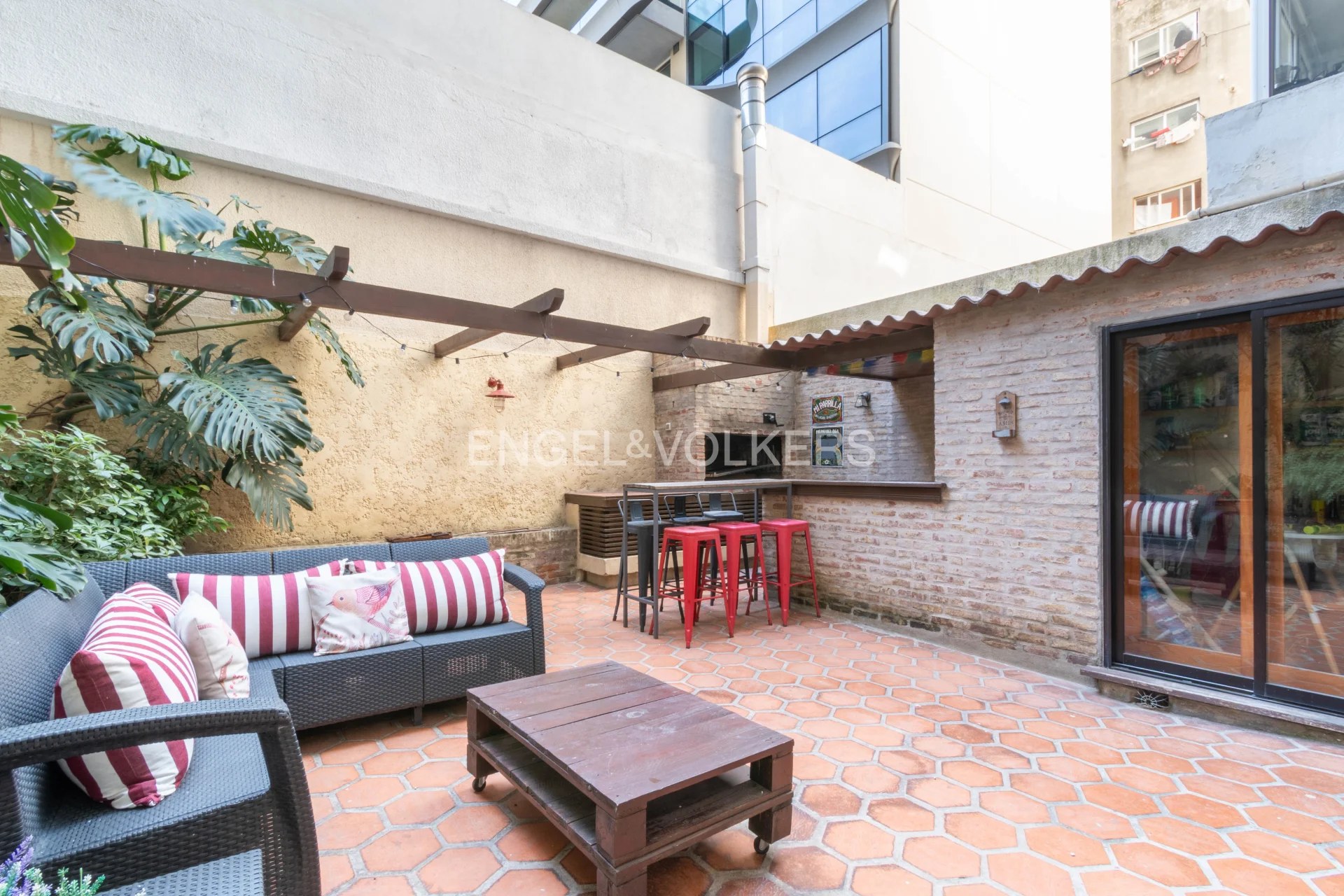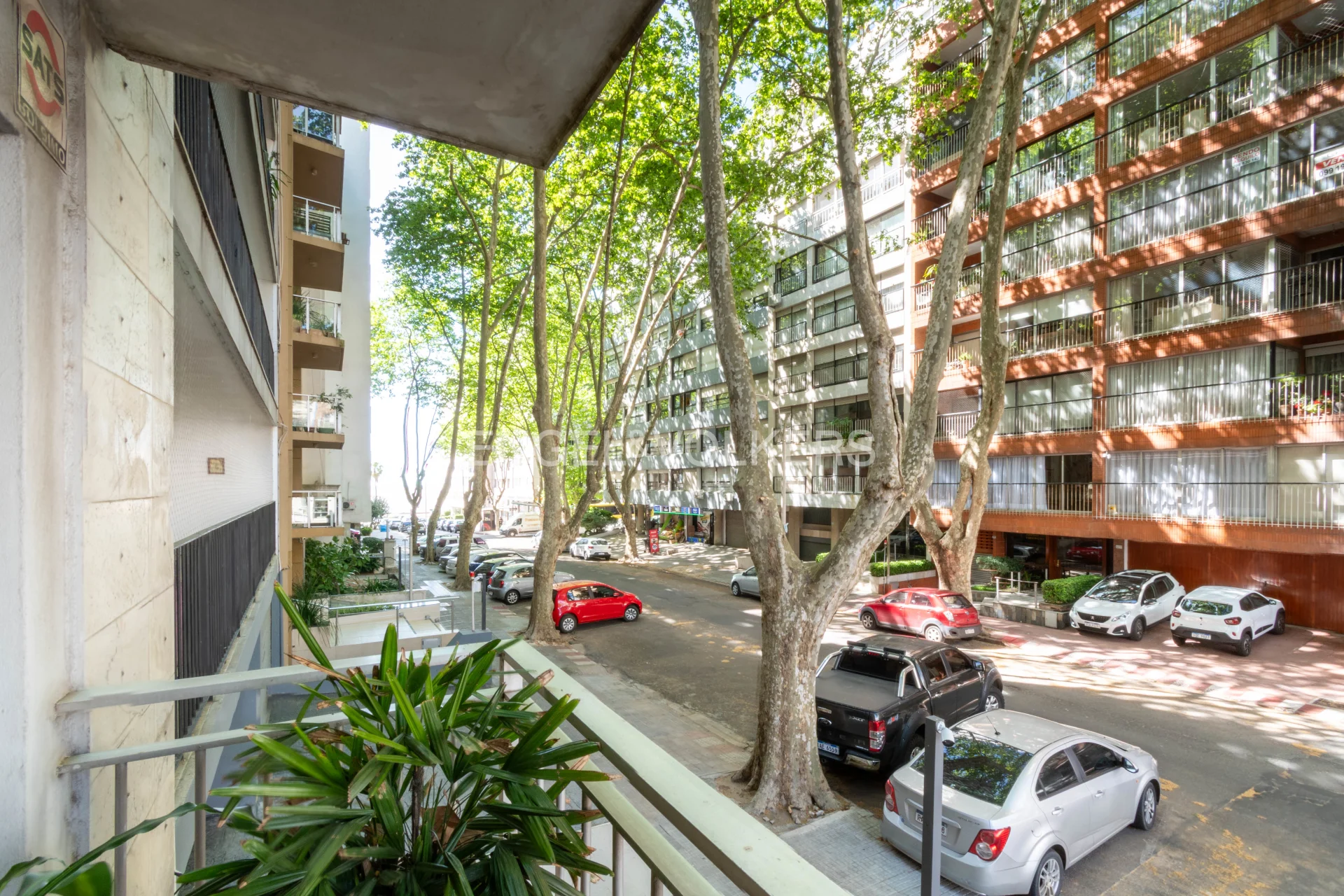 En un edificio de pocas unidades, con una unidad por piso, se encuentra esta cómoda planta de 146 m2, siendo 91 m2 interiores + 7 m2 de balcón al frente y 48 m2 de un exclusivo patio con parrillero privado y mucha vegetación. Es un apartamento del año 1984, que fue completamente reciclado en el año 2016, conservando sus pisos originales de parquet.