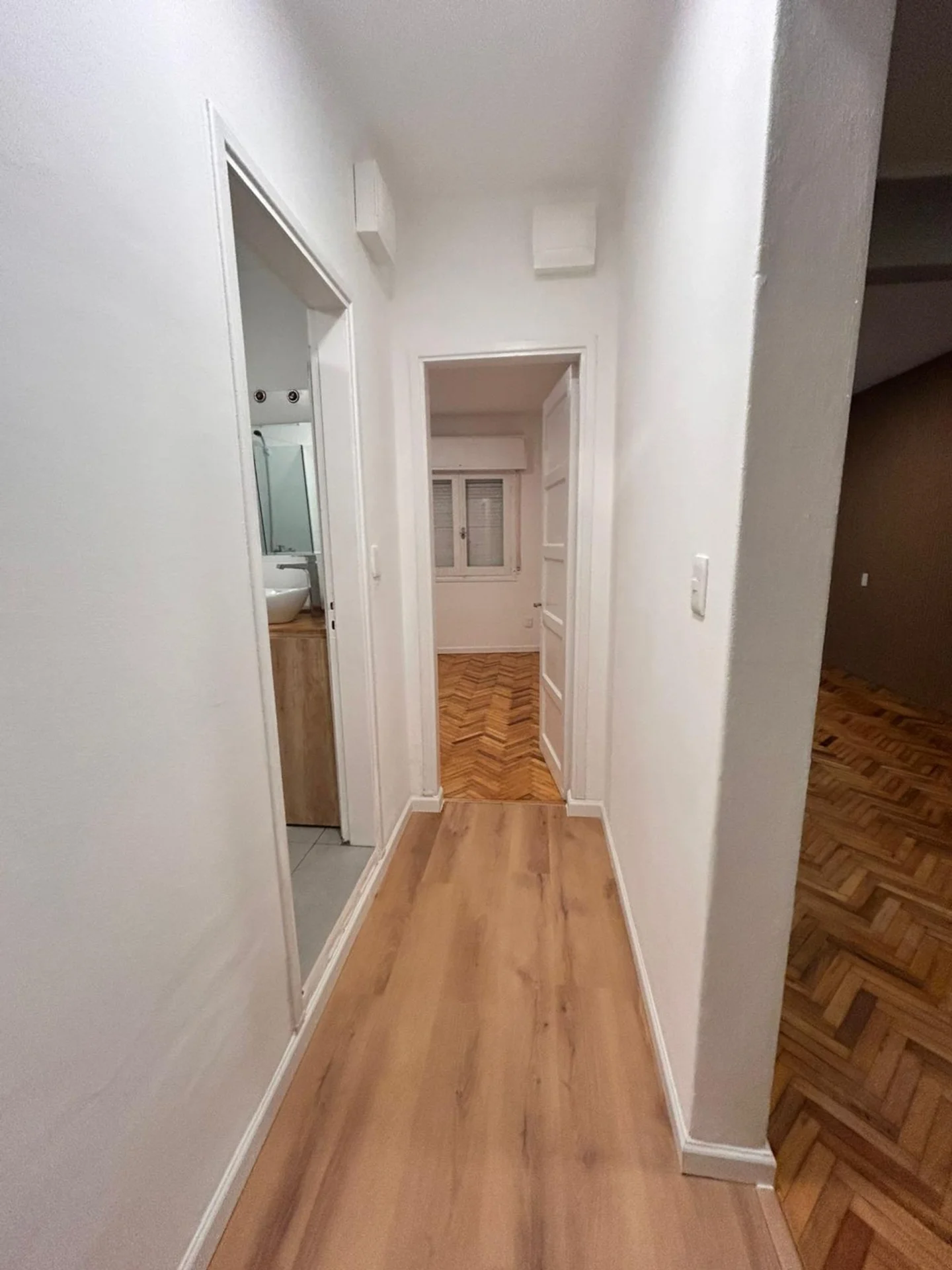 Cocina toda a nuevo, caños con termo fusión, con bacha y griferia de acero inoxidable, muebles aéreos y bajo mesada. Ventanal de puertas corredizas con salida a pequeña terraza para colgar la ropa. Piso flotante color madera.