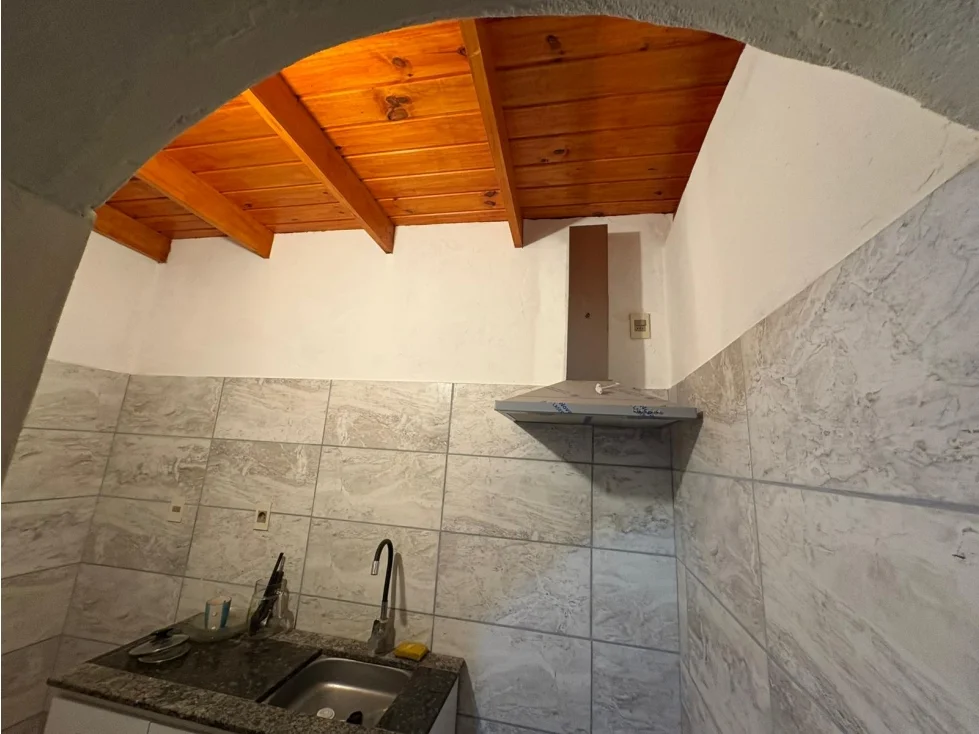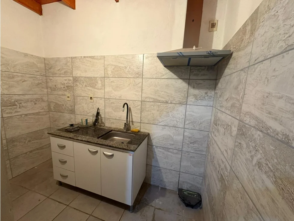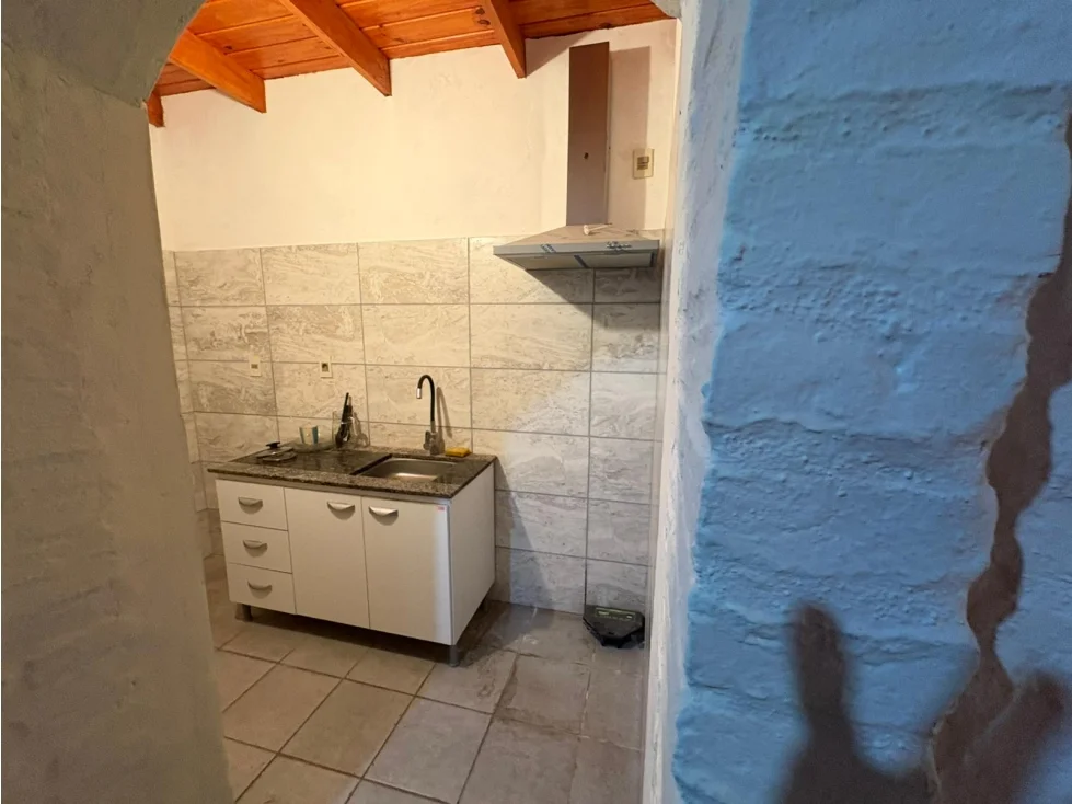 Cómodo, con baño completo, cocina definida, habitación que puede ser dormitorio, pequeño depósito.