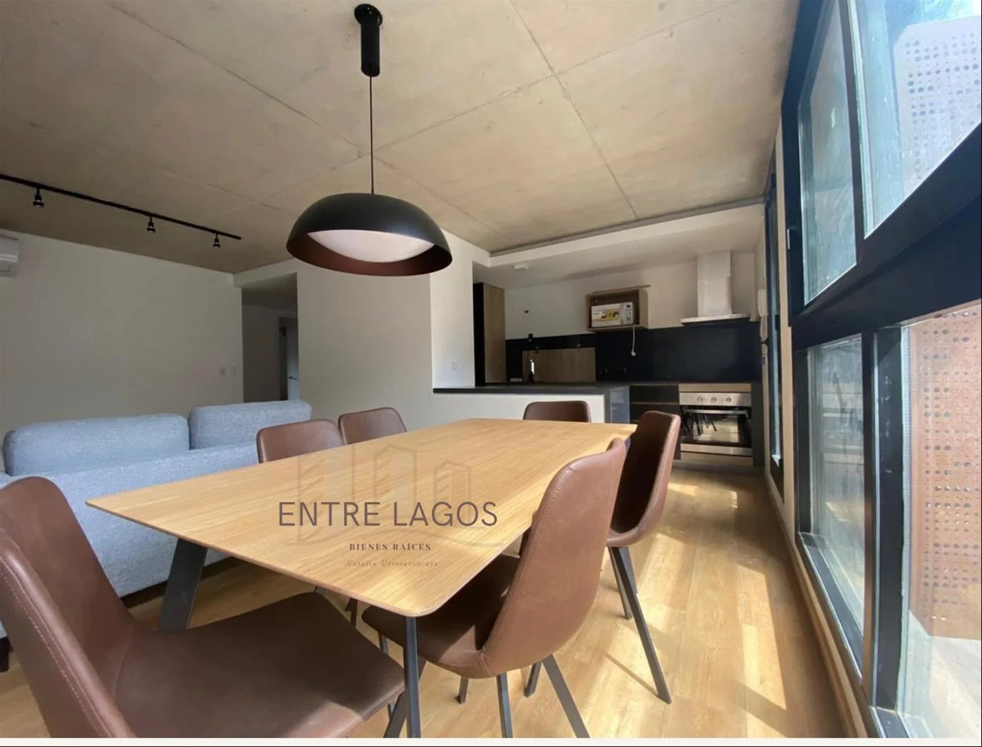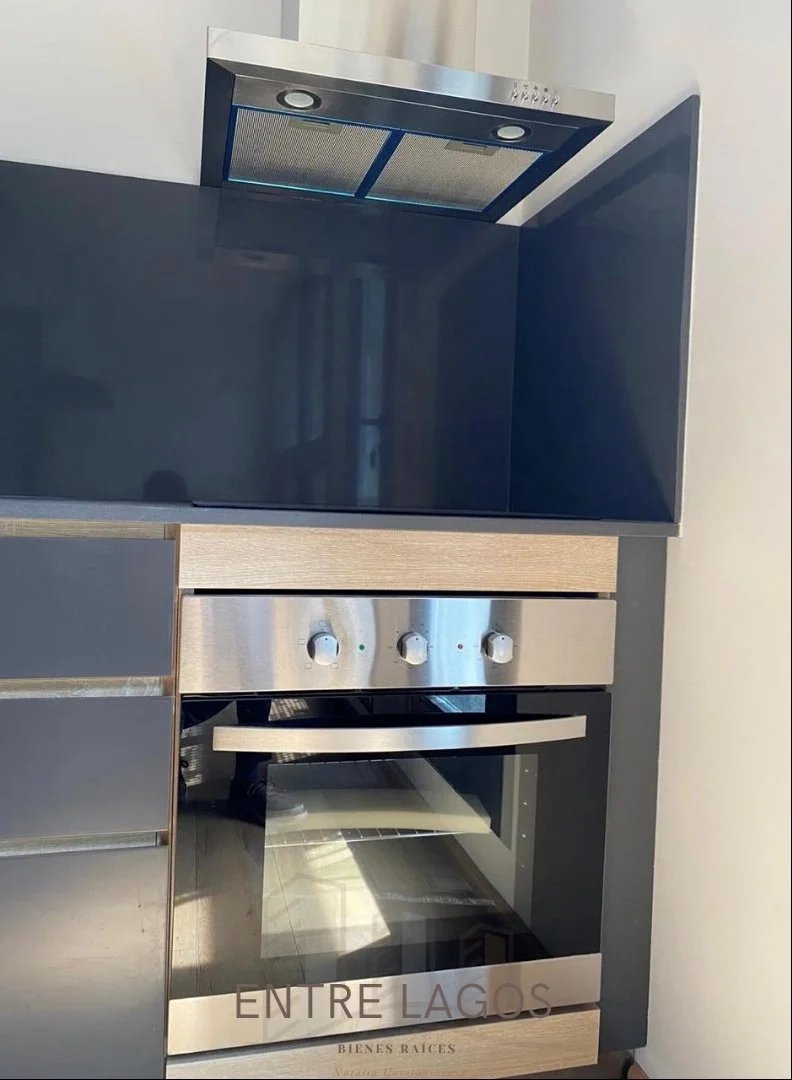 Comedor amplio con cocina integrada con muebles sobre y bajo mesada, horno, anafe y campana.