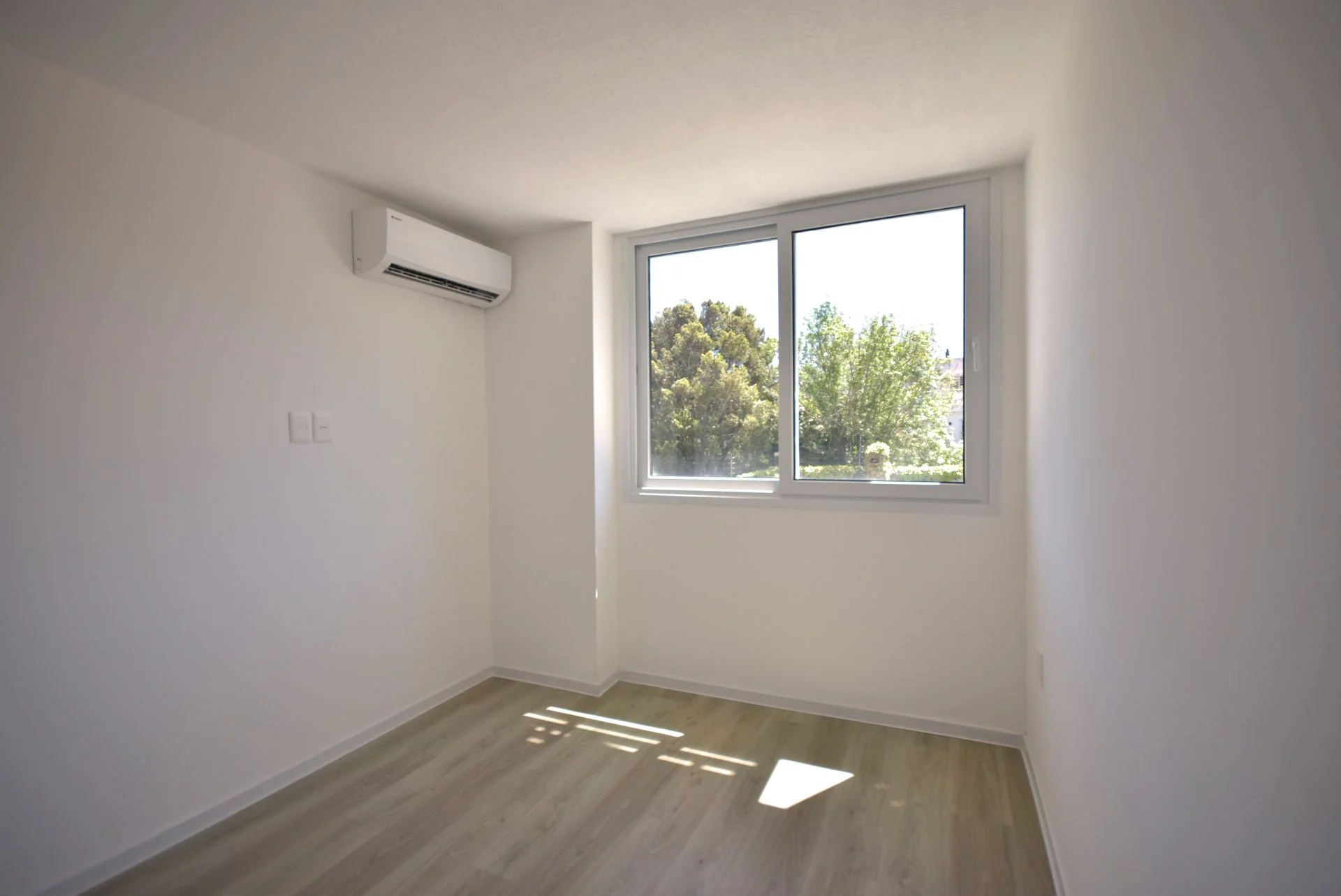 Dormitorio con aire acondicionado, amplio placard empotrado y ventana al nororeste.