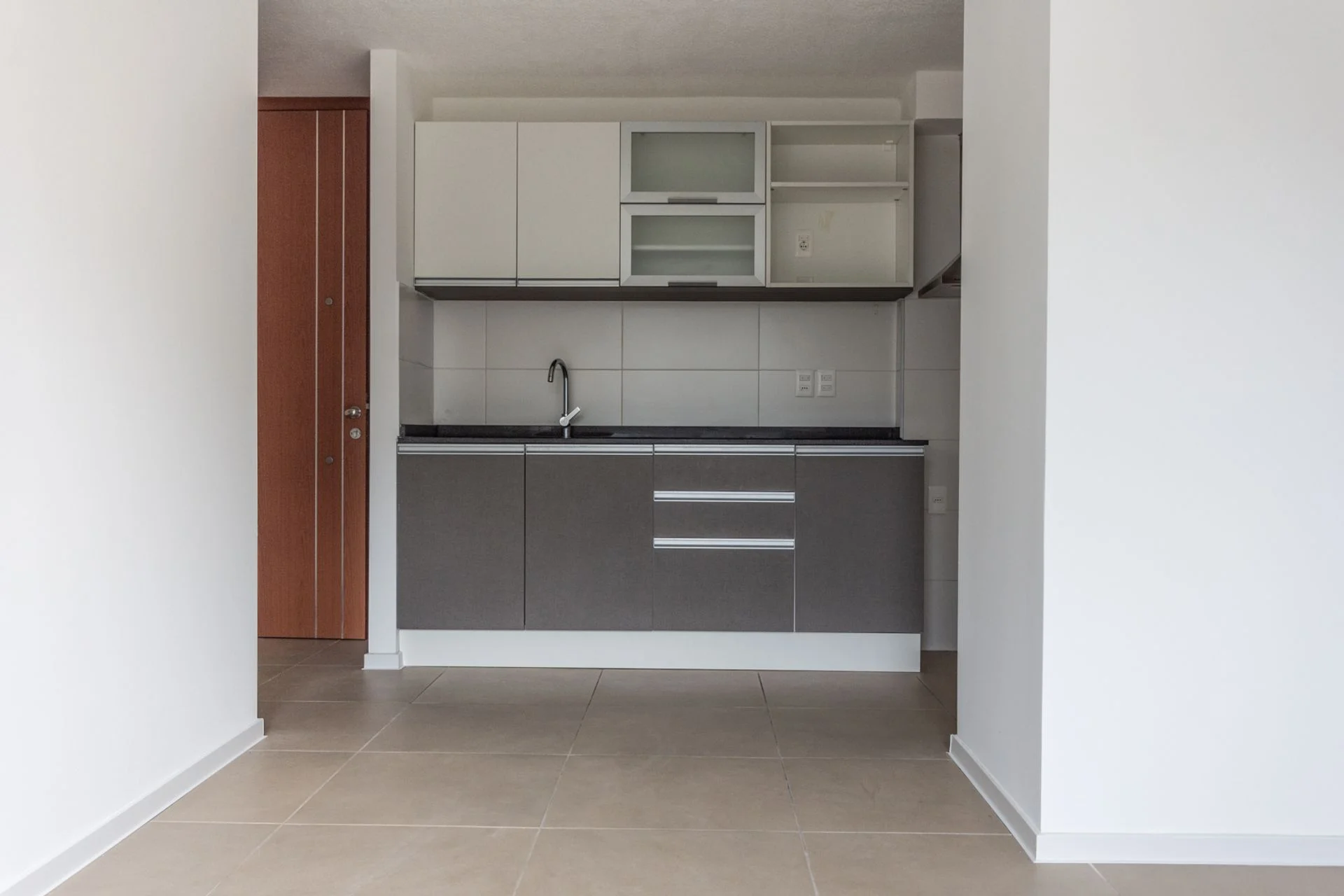 Cocina integrada con mueble aéreos, bajo mesada y campana extractora, espacio para heladera y placard con conexión para lavarropas y calefón. Todo en excelente estado.
