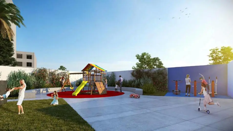 El edificio cuenta con recepción, ascensores, salón de usos múltiples, parrillero con terraza, gimnasio y áreas de juegos infantiles.