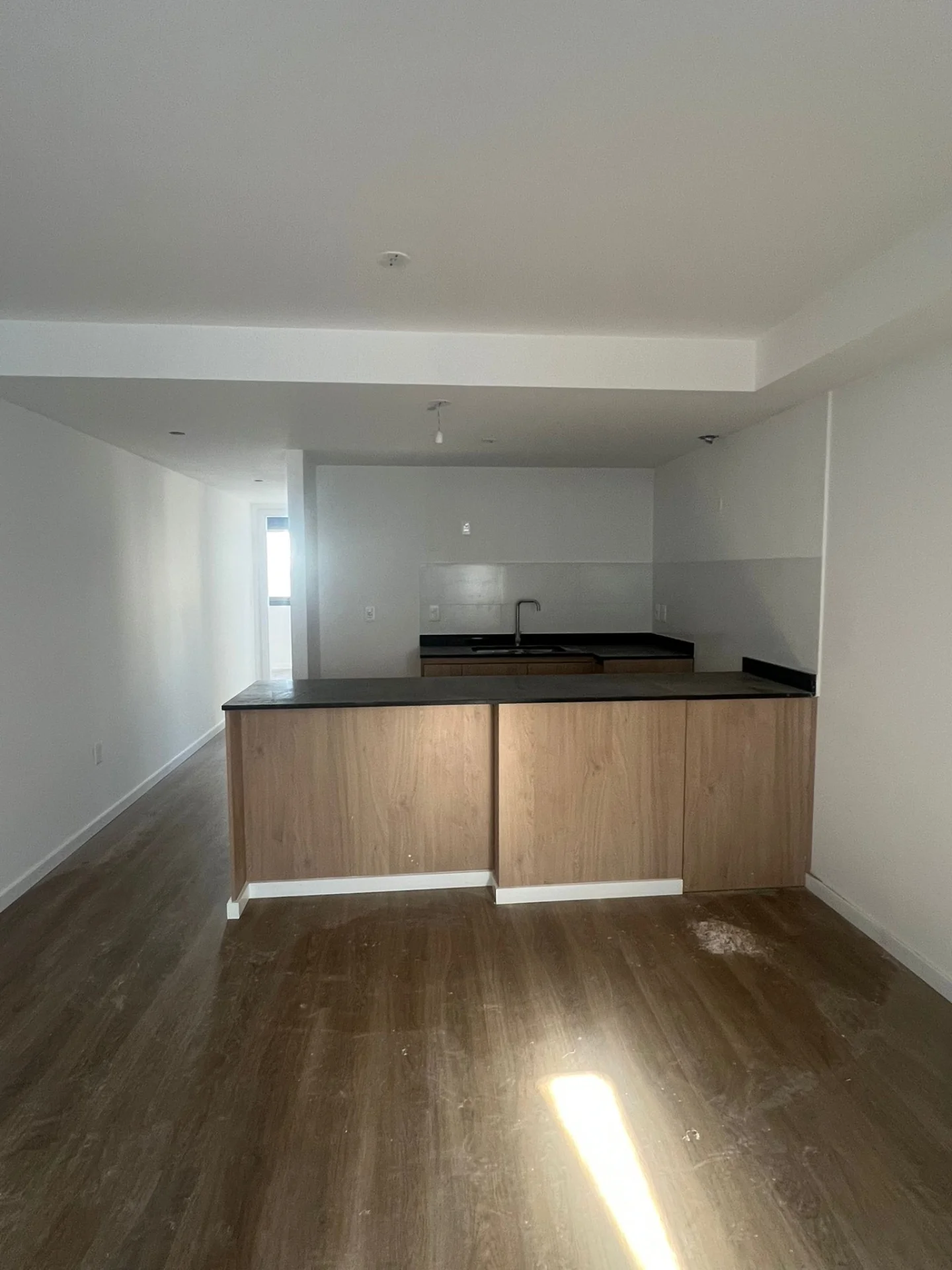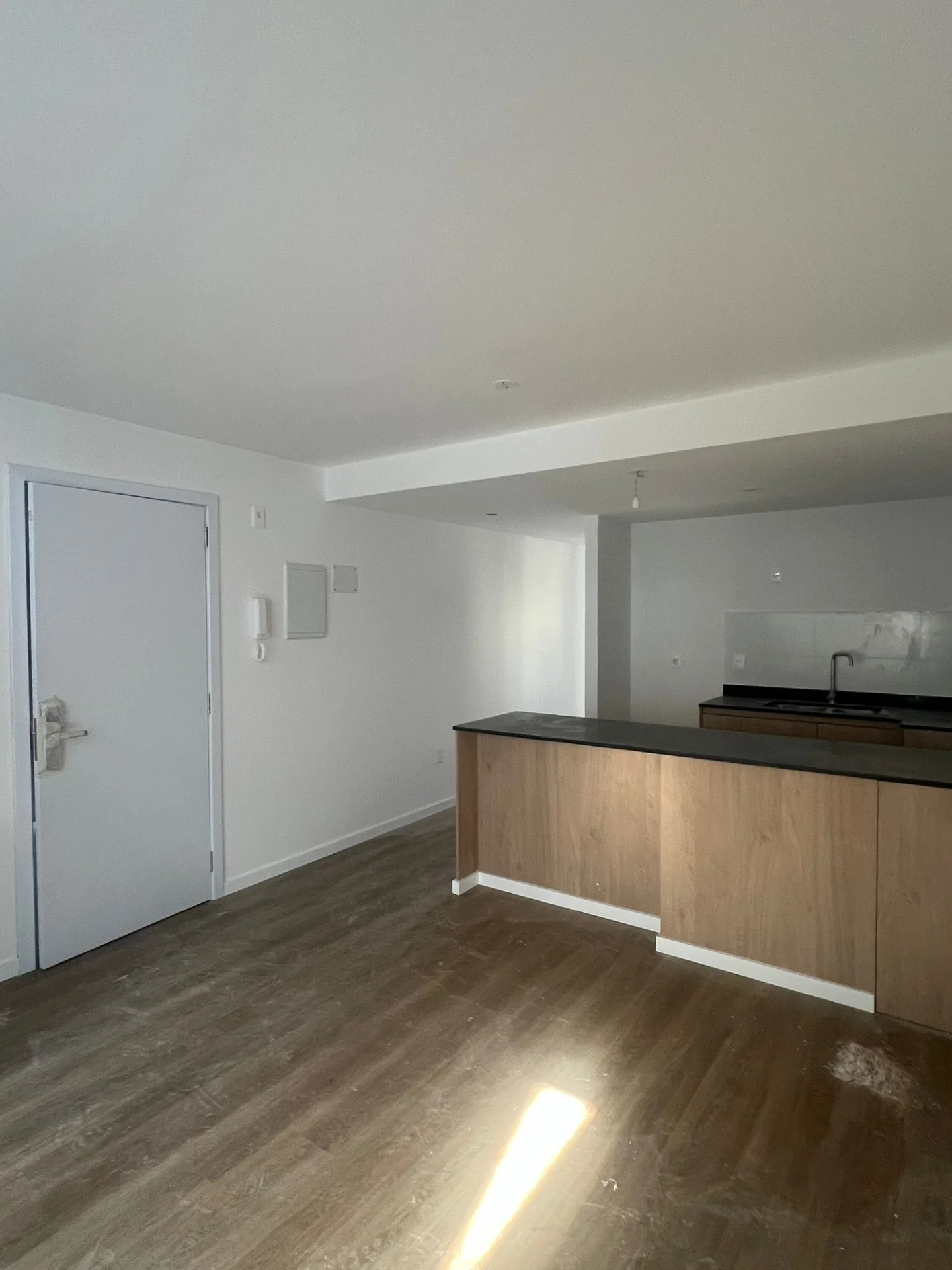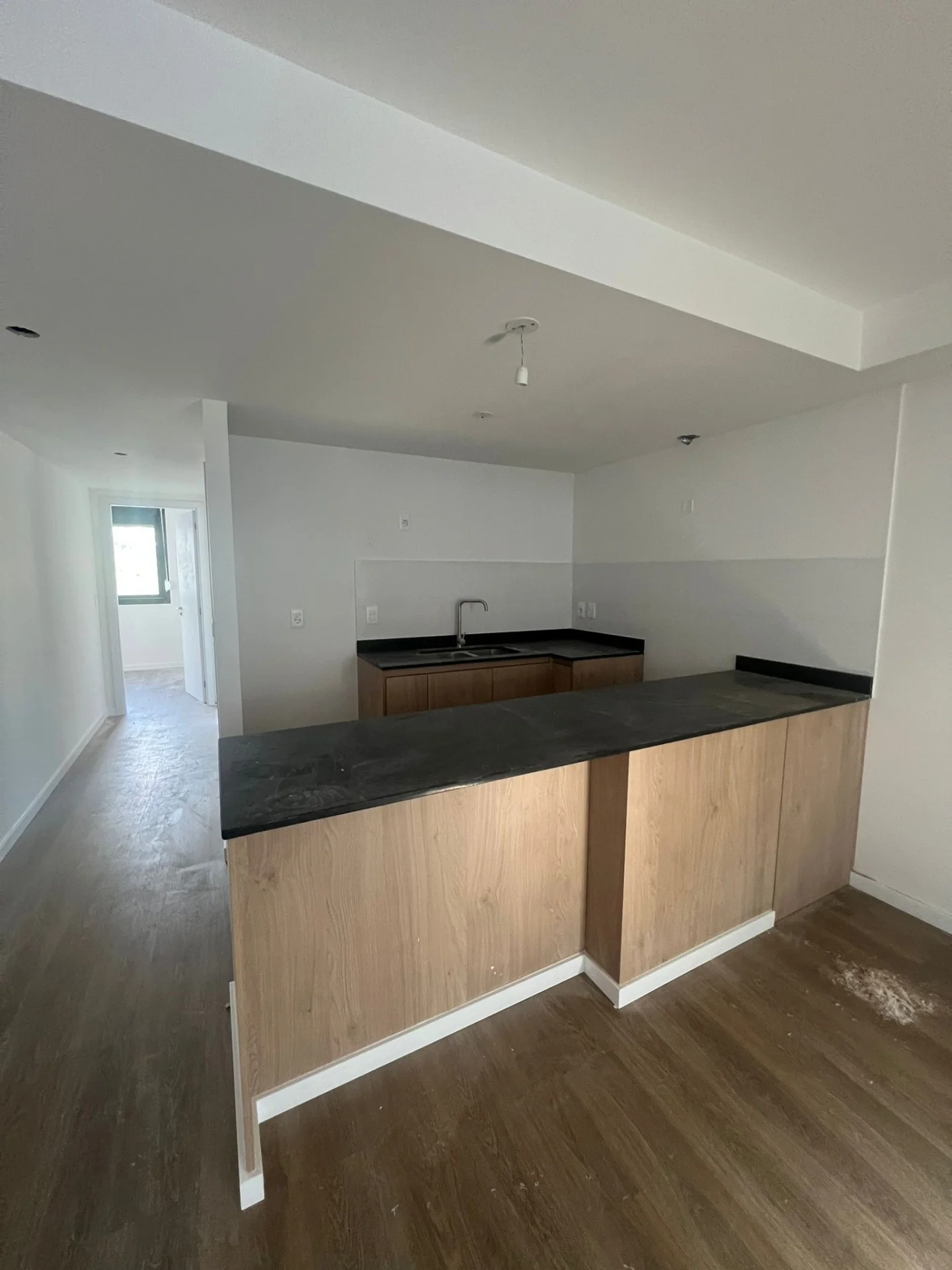 Living comedor con Cocina integrada, placares y desayunador