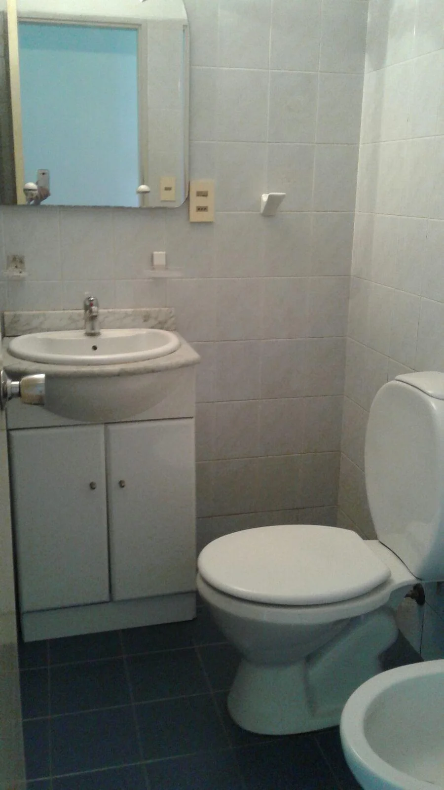 Ventilado baño completo, con mampara en la zona de ducha, revestimiento cerámico en buen estado y mueble bajo pileta.