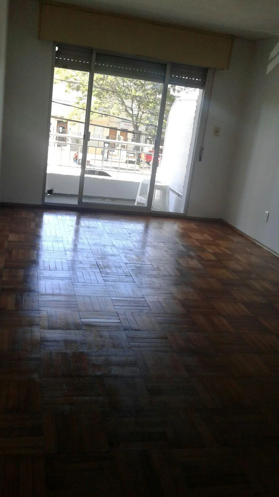 Espacioso Living comedor, con pisos de parquet en excelente estado, y cuenta con acceso directo a una terraza al frente con baranda de hierro, ideal para disfrutar del aire libre y la vista despejada.