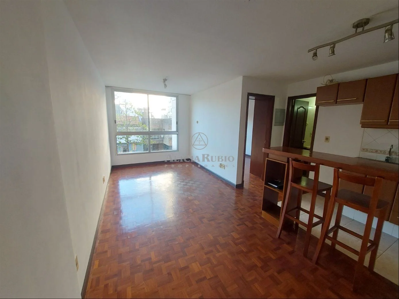 Lindo apartamento al frente, living comedor, cocina integrada separada por una barra, dormitorio con placard y baño completo El edificio tiene barbacoa cerrada y equipada, piscina y gimnasio Portería 24 hs y vigilancia, gastos comunes $ 6.530 Calefacción losa eurocable (eléctrica individual).- Garantía aseguradoras, contrato mínimo 2 años.-