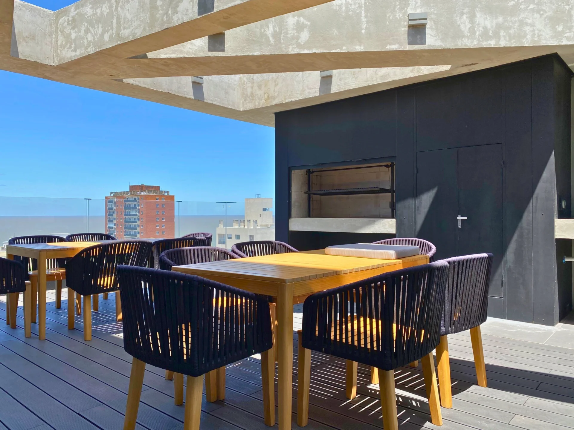 El edificio cuenta con barbacoa con kitchenette y estufa a leña, y parrillero en la terraza.