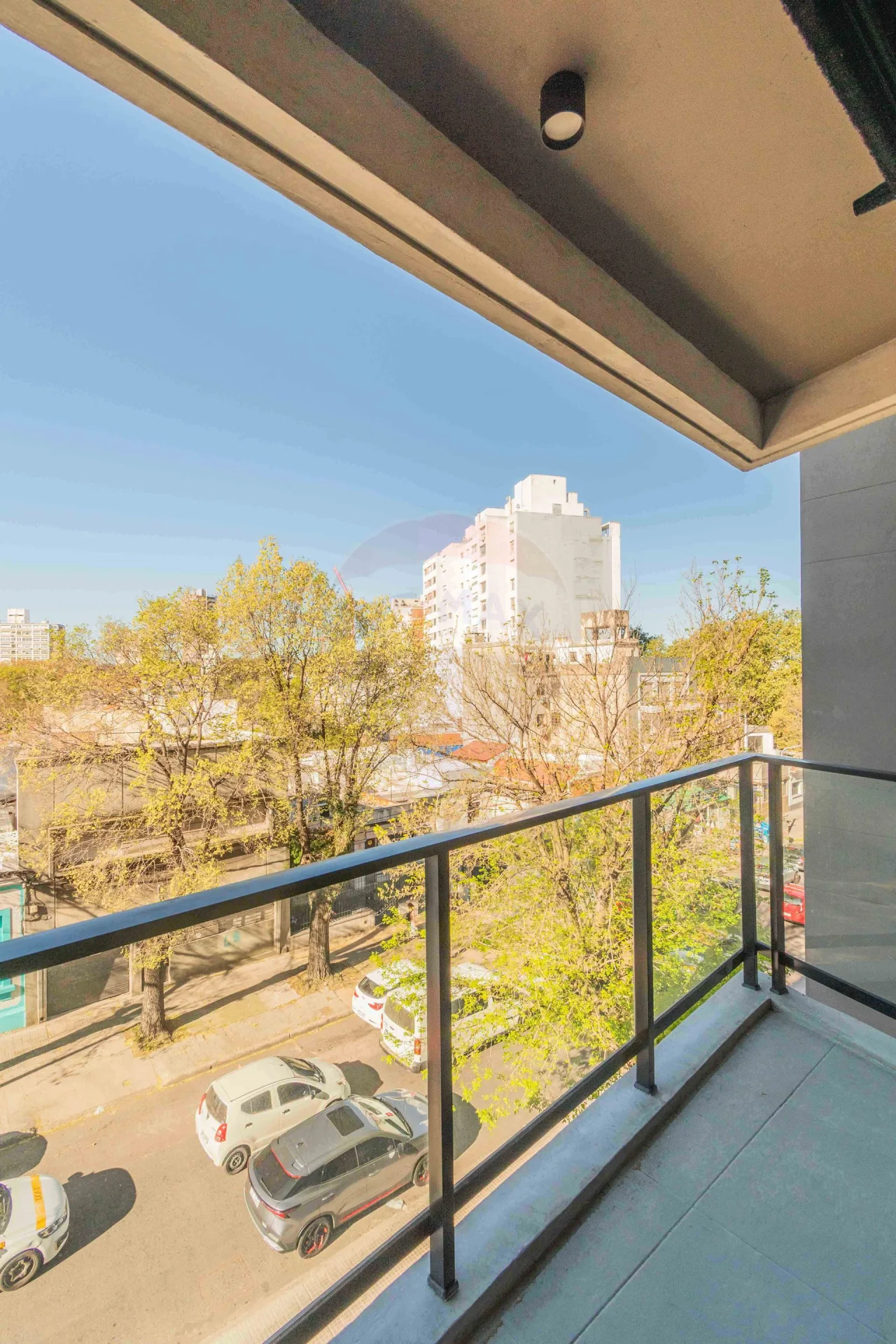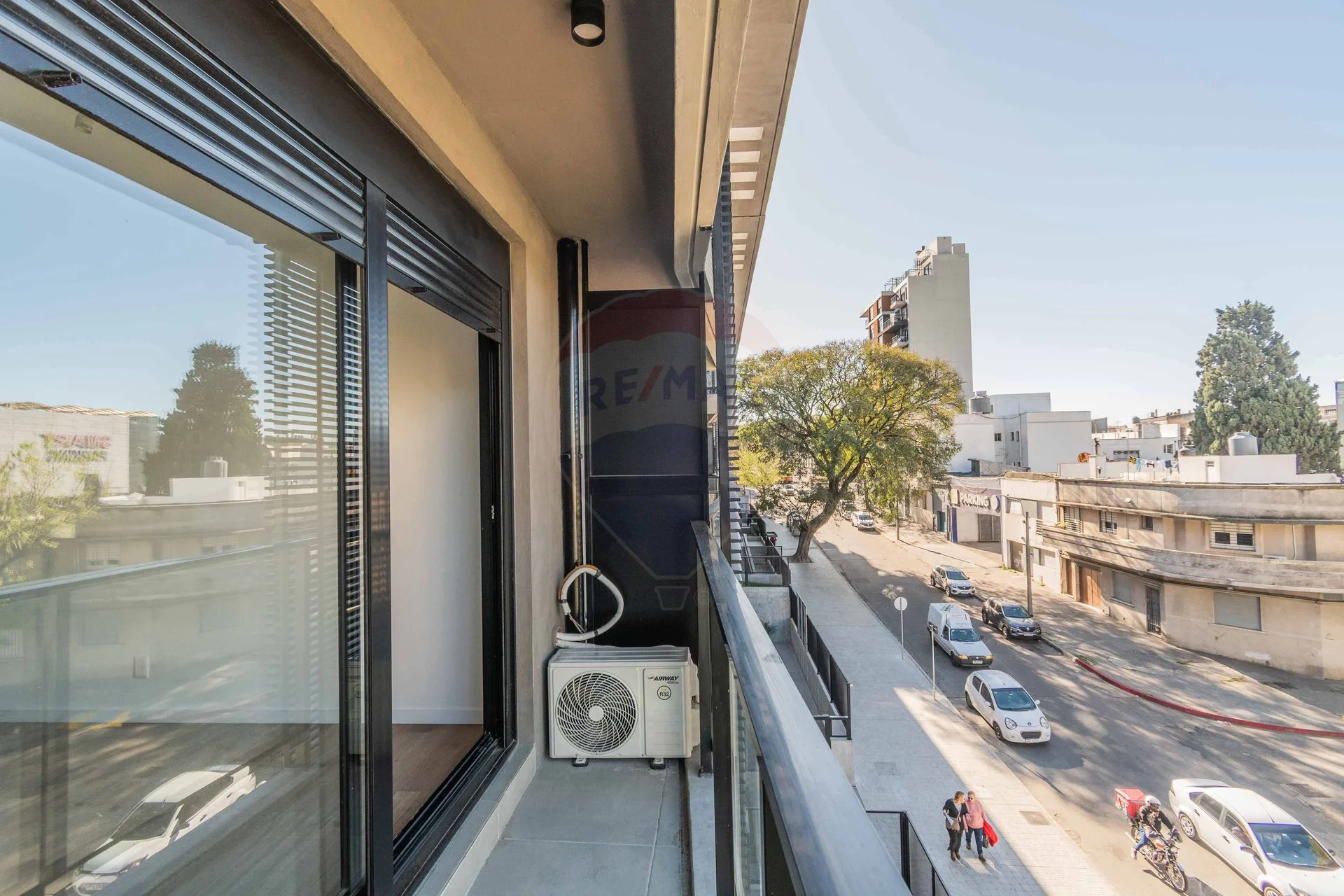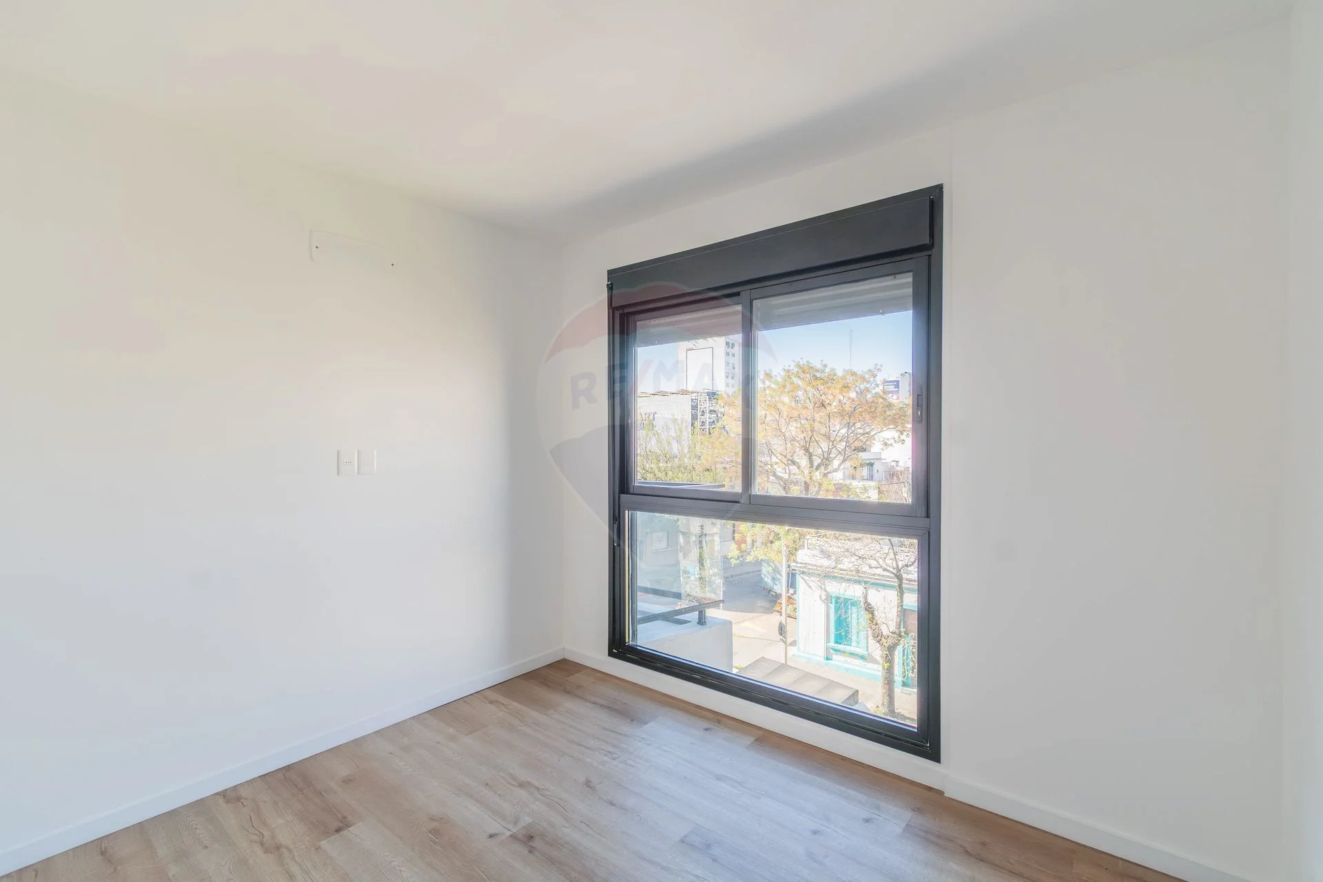 El apartamento cuenta con Aberturas de aluminio con cortina de enrollar y Pisos en vinílico de alto tránsito símil madera.