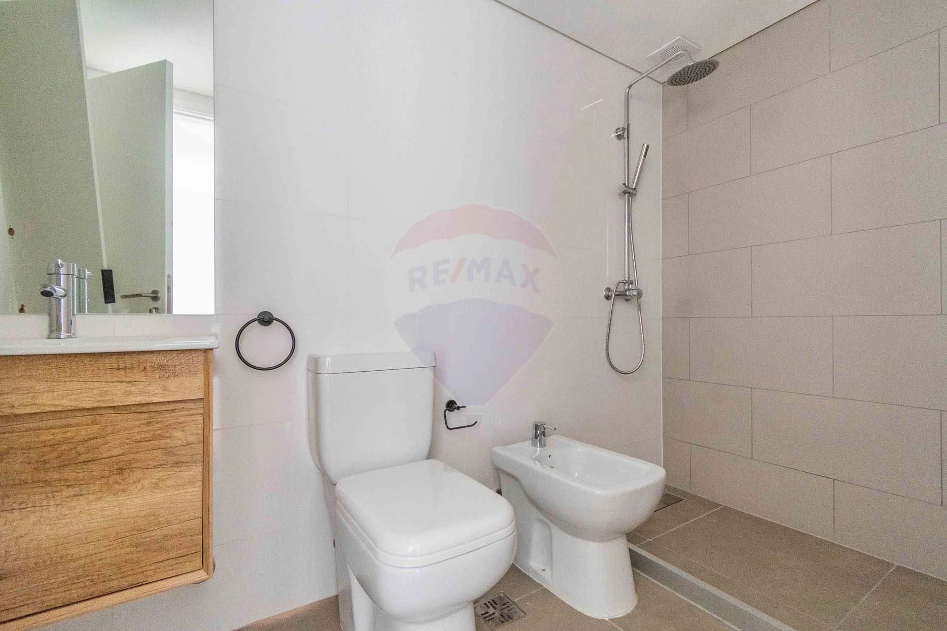 - Baño completo con mueble, espejo, columna de ducha y placard con calefón.