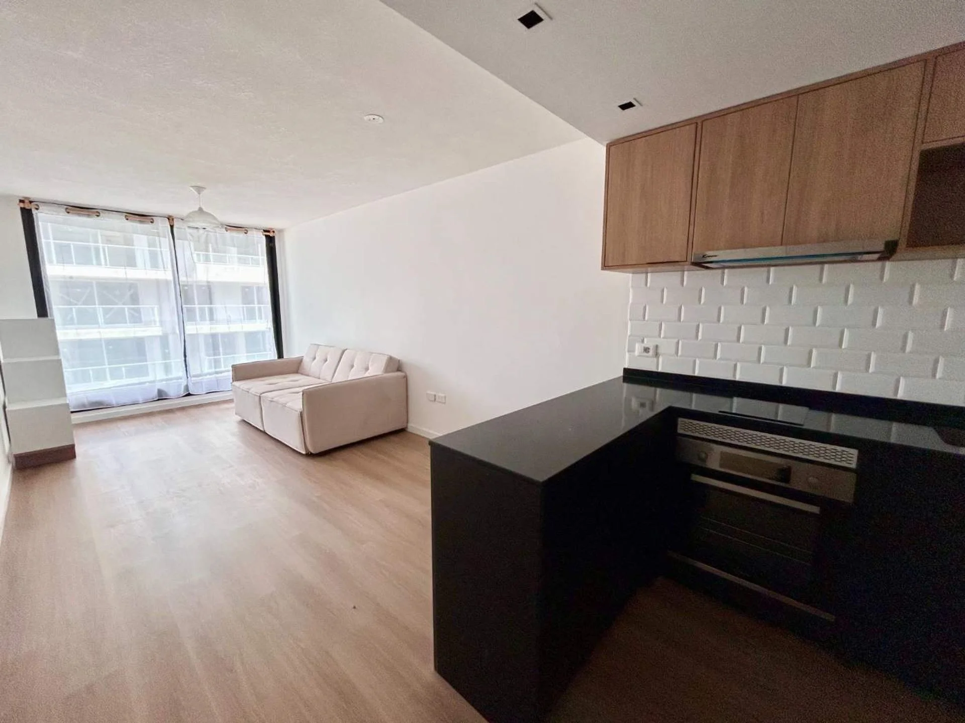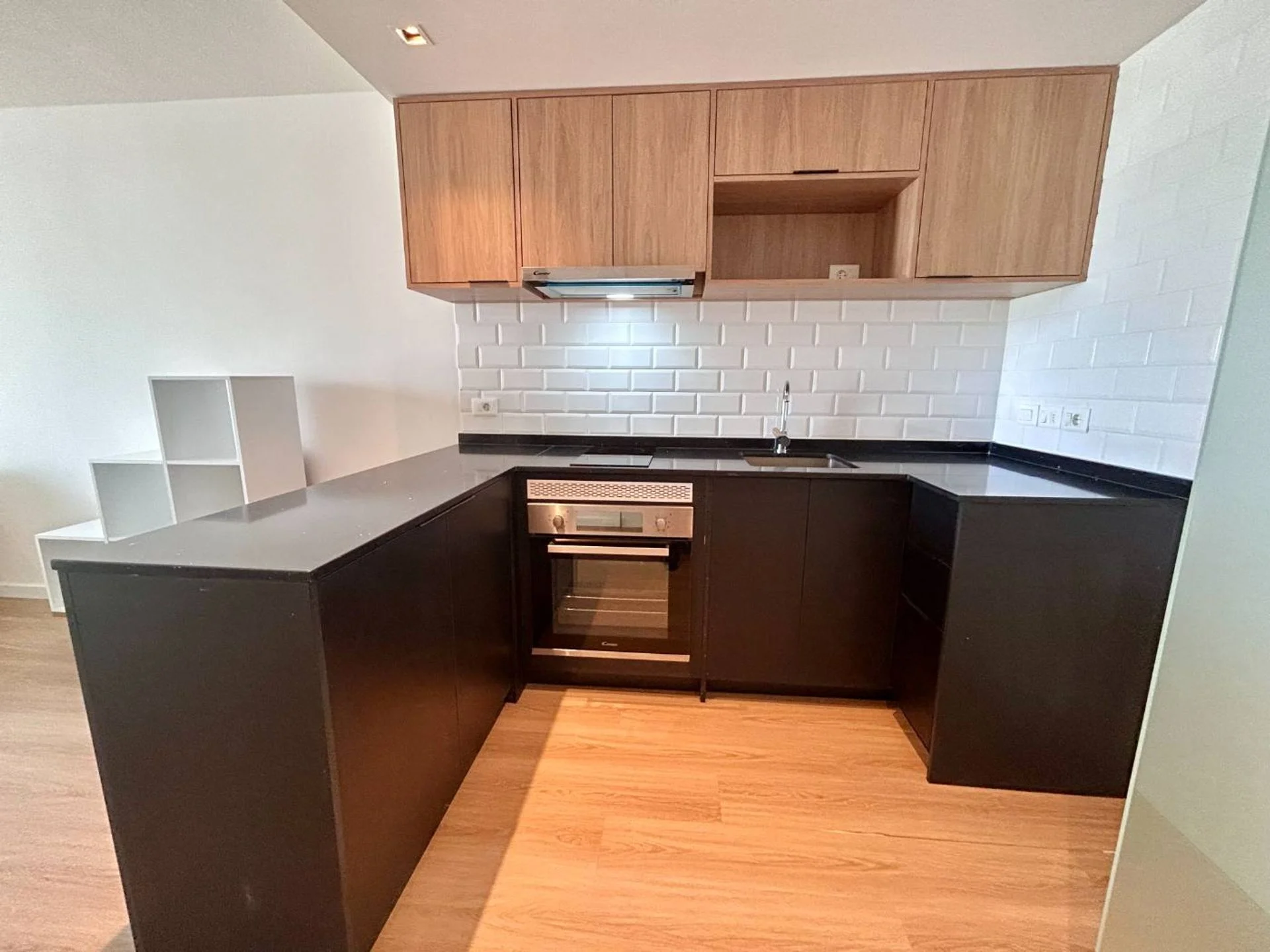 El espacio interior integra living-comedor con cocina, diseñada con desayunador y equipamiento completo que incluye muebles bajo y sobre mesada, horno empotrado, anafe y campana de extracción. Además de conexion para lavarropas y calefón instalado. El dormitorio, de buenas dimensiones, cuenta con placard empotrado que optimiza el almacenamiento. Un baño completo complementa la distribución.