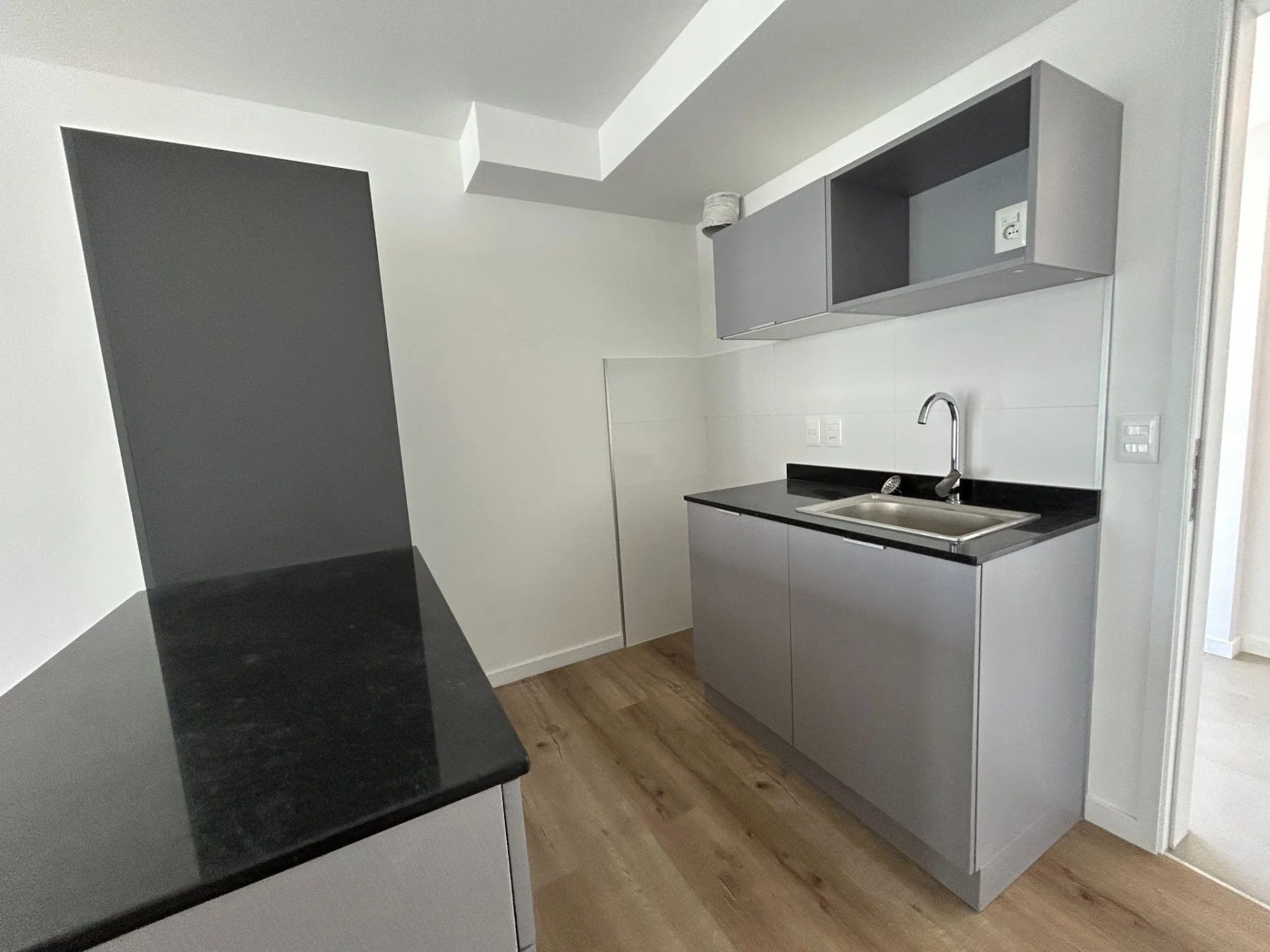 Living comedor con terraza, 1 dormitorio amplio, cocina integrada con muchos placares y barra desayunadora, baño completo. Lugar para lavarropas. Aire acondicionado instalado.