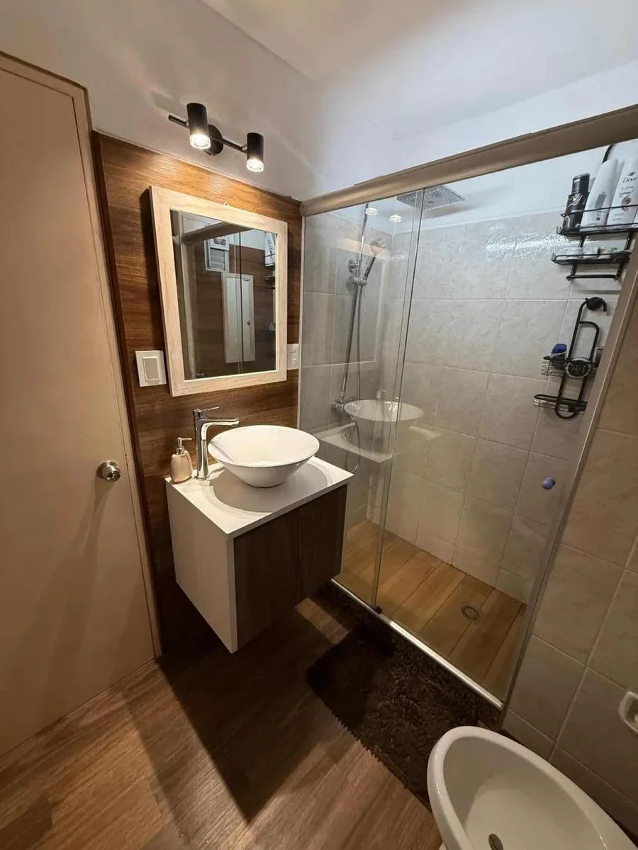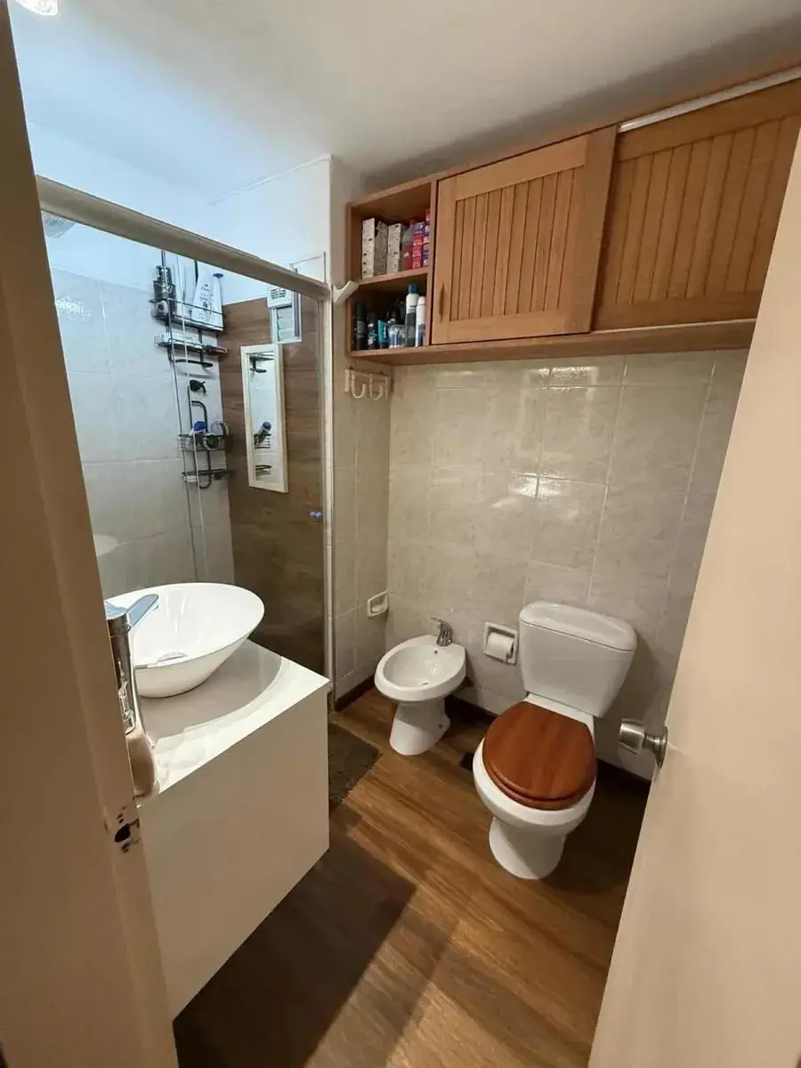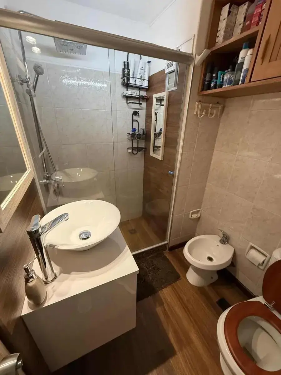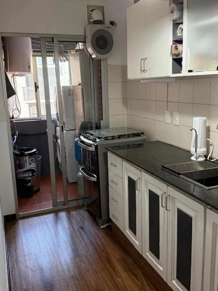La cocina está equipada con muebles aéreos y bajo mesada, además de un extractor nuevo. Dispone de terraza lavadero con cerramiento de aluminio, mosquitero y rollers. El baño está reciclado, con extractor, mampara de vidrio y mueble aéreo, todo en excelente estado.