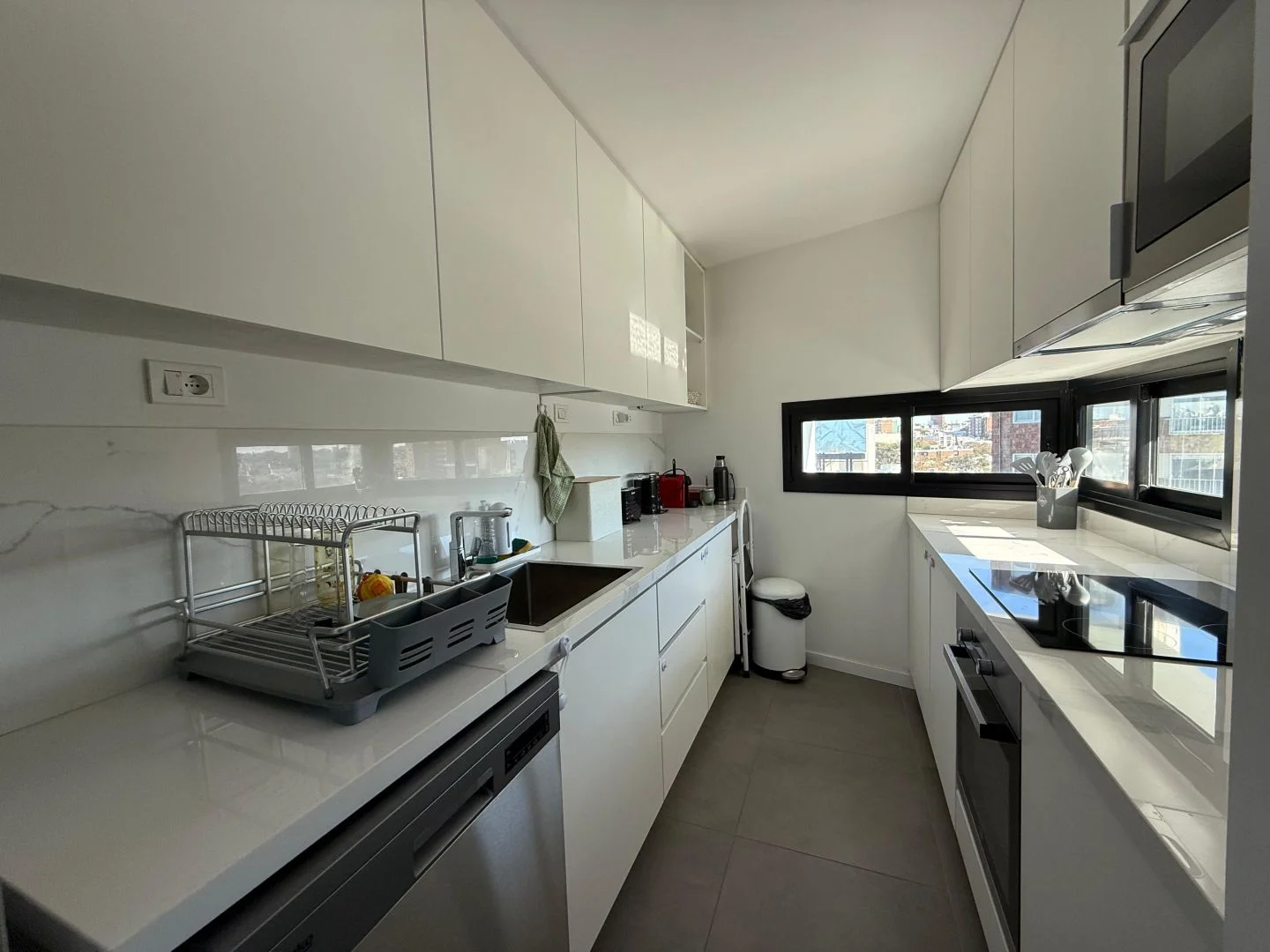 Ubicado en una esquina privilegiada y con orientación suroeste, este apartamento se destaca por su luz natural y su diseño pensado en cada detalle. La cocina, equipada con línea blanca Beko, combina estilo y funcionalidad, y se conecta directamente con la terraza de servicio.