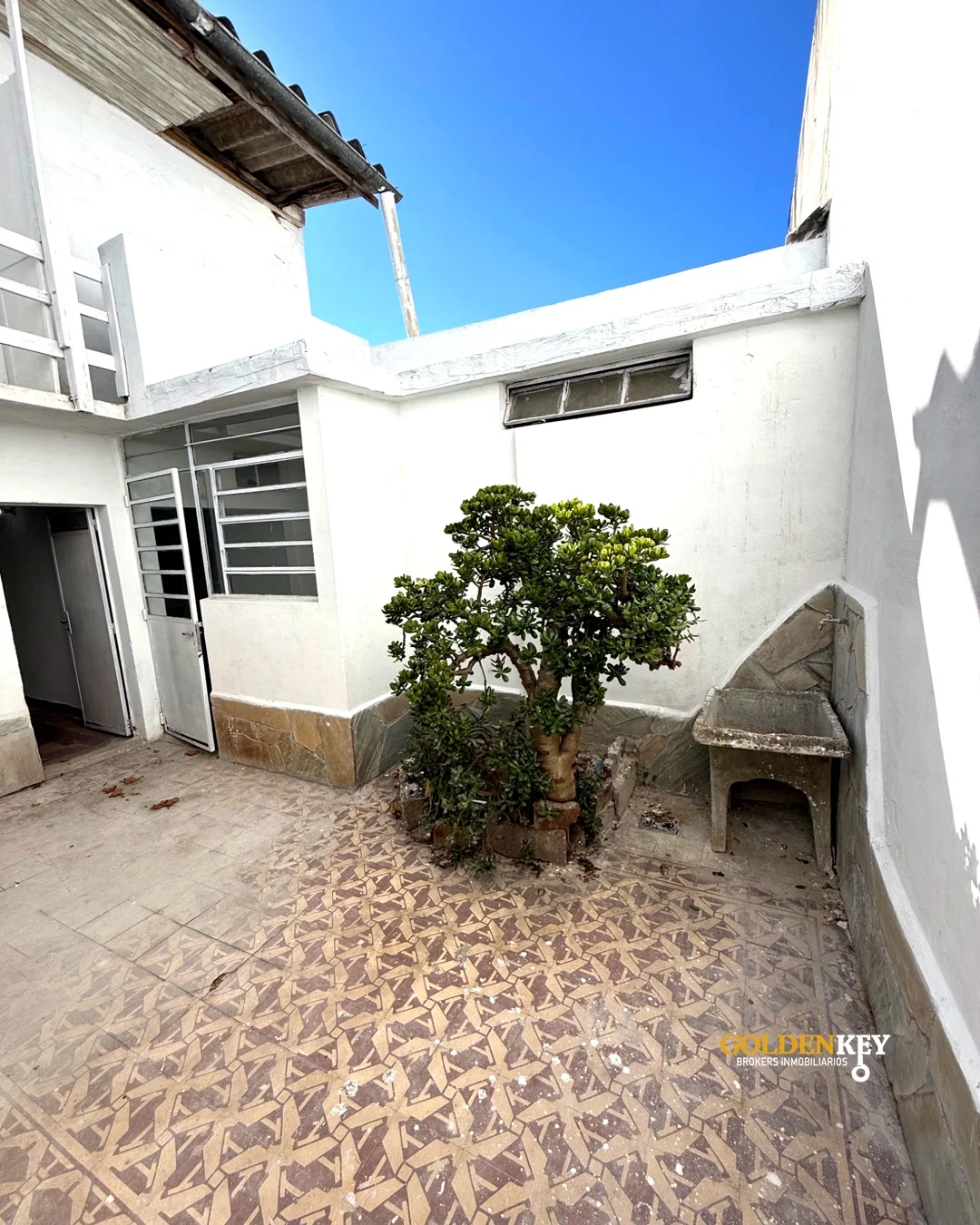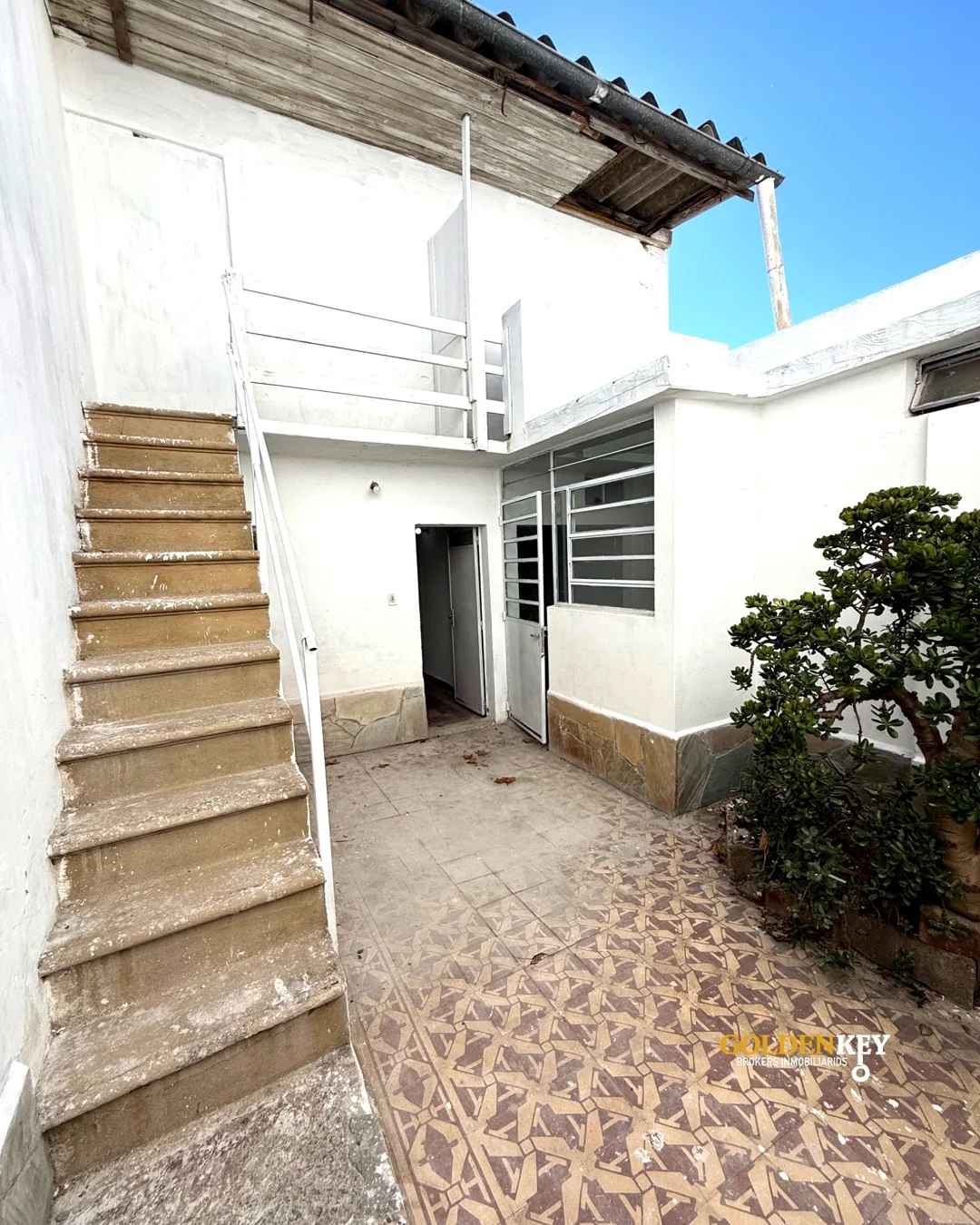 Salida a patio amplio con balcón.