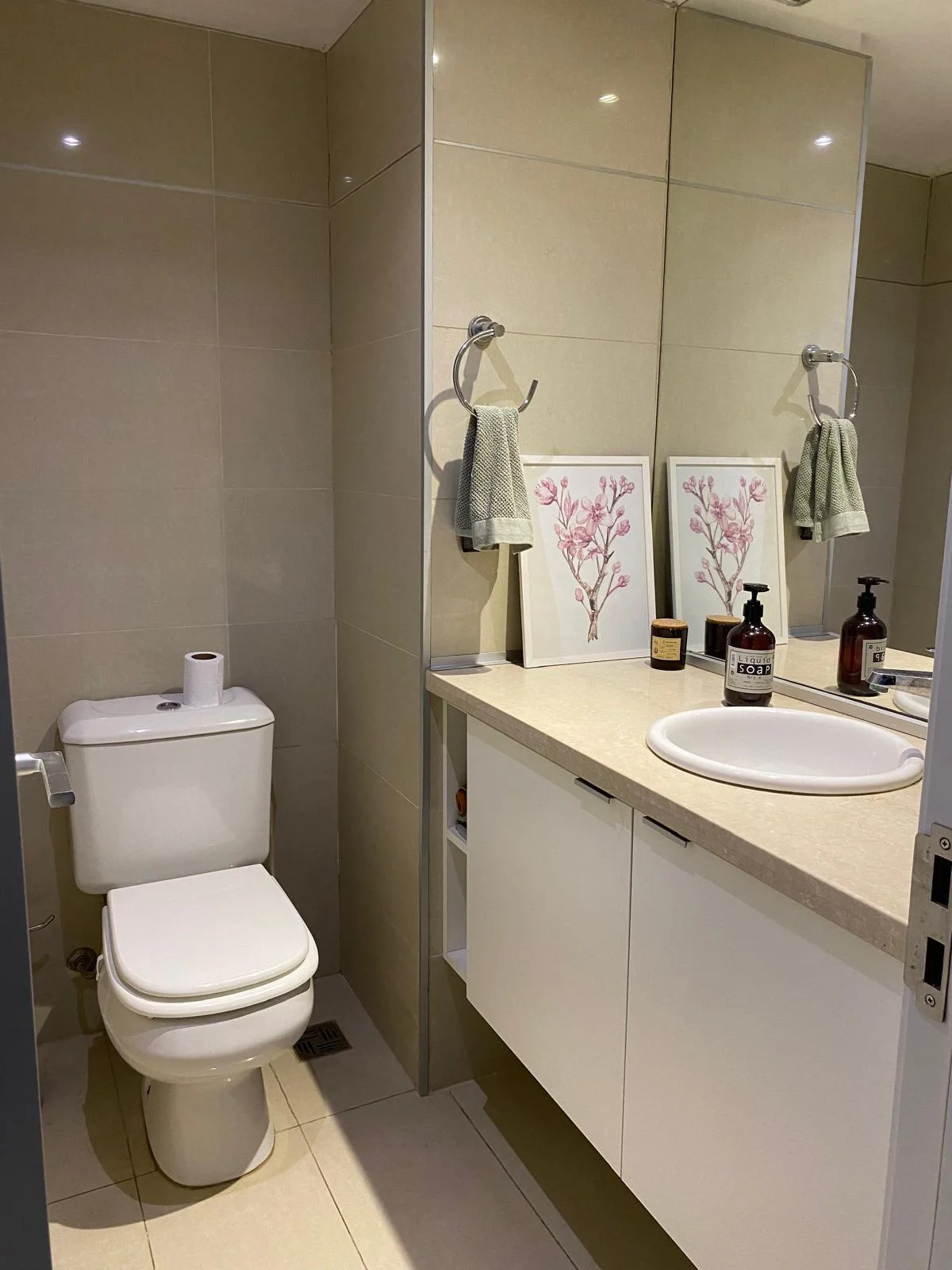 DOS BAÑOS COMPLETOS CON ACCESORIOS DE PRIMERA, UNO DE ELLOS EN SUITE ADEMAS TOILETTE EN LIVING.