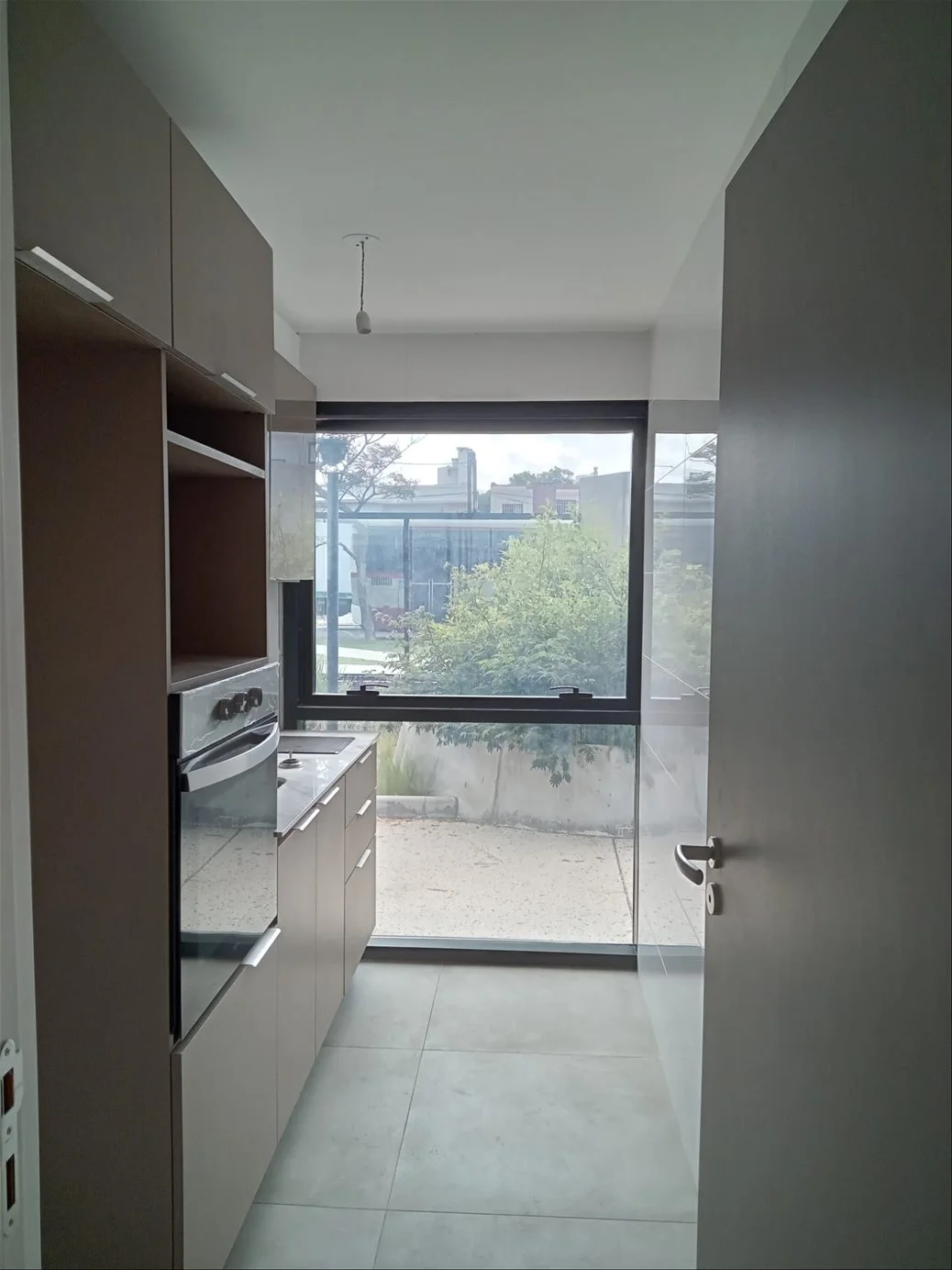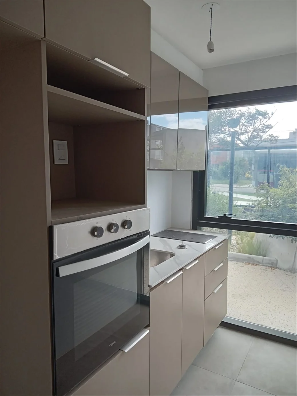 Cocina con anafe, horno y campana.