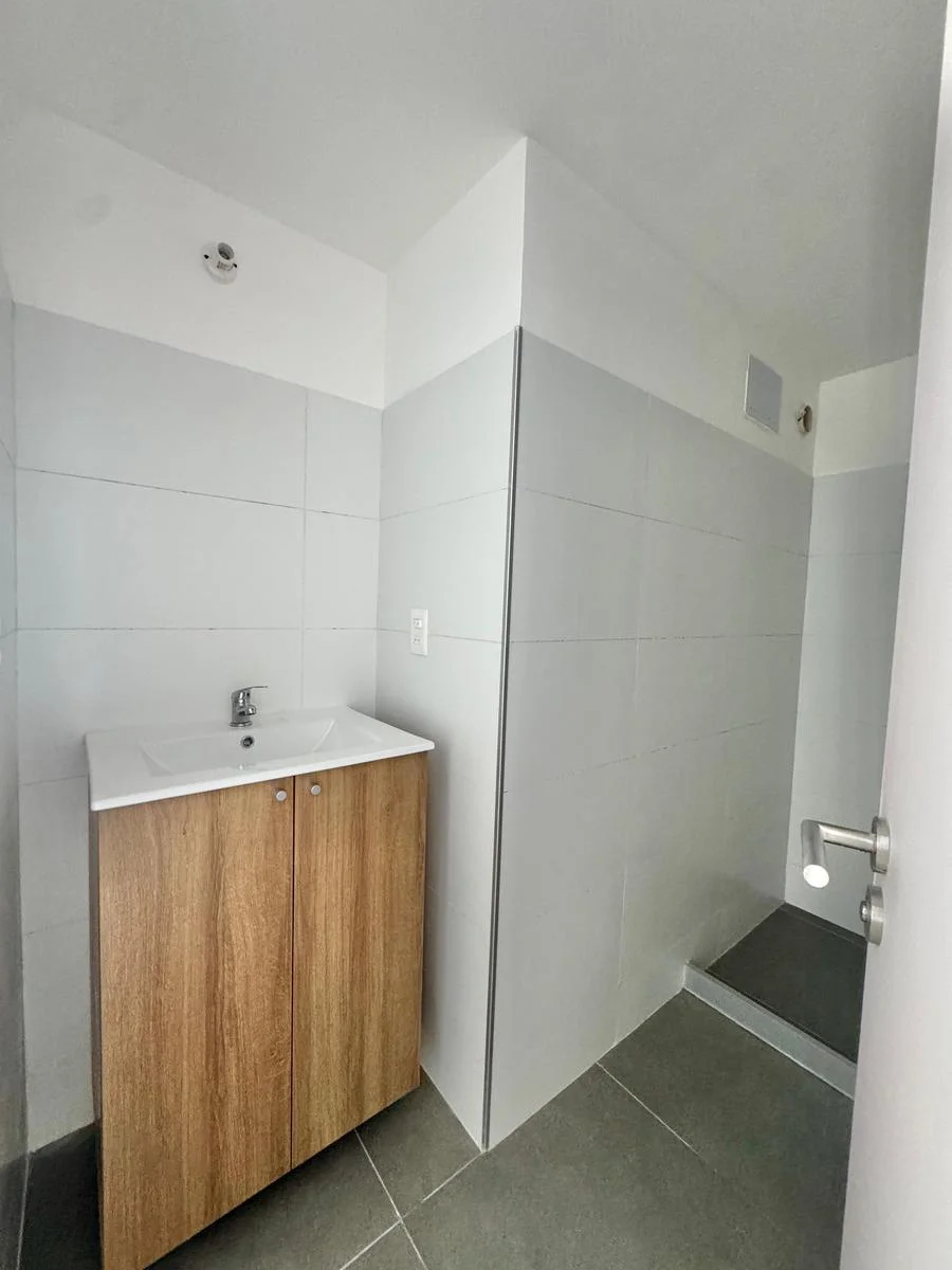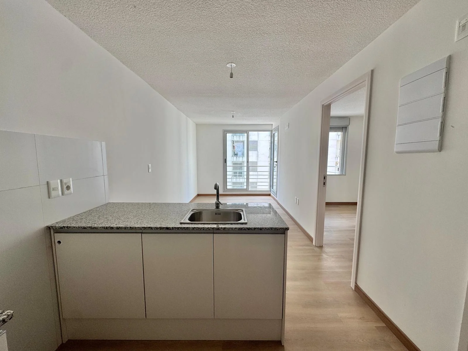 Cuenta con un dormitorio con persiana de enrollar, baño completo con previsión para lavarropas y un cómodo living comedor con cocina integrada, equipada con muebles bajo mesada e isla.