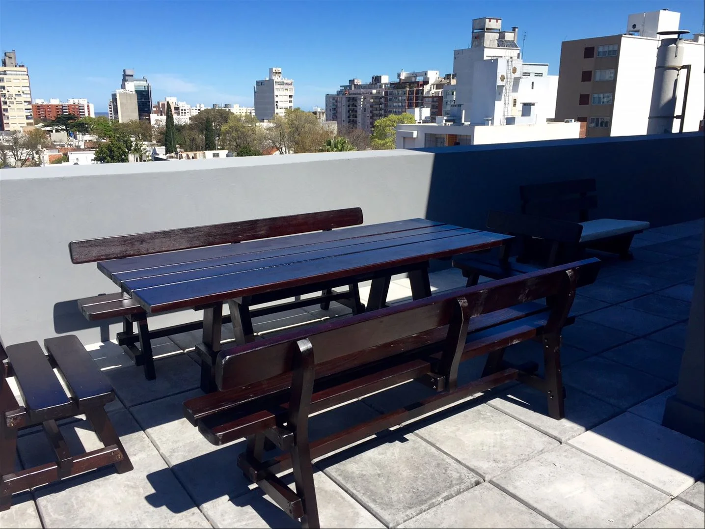 El edificio tiene piscina, lindo patio español y barbacoas abiertas con parrilleros.