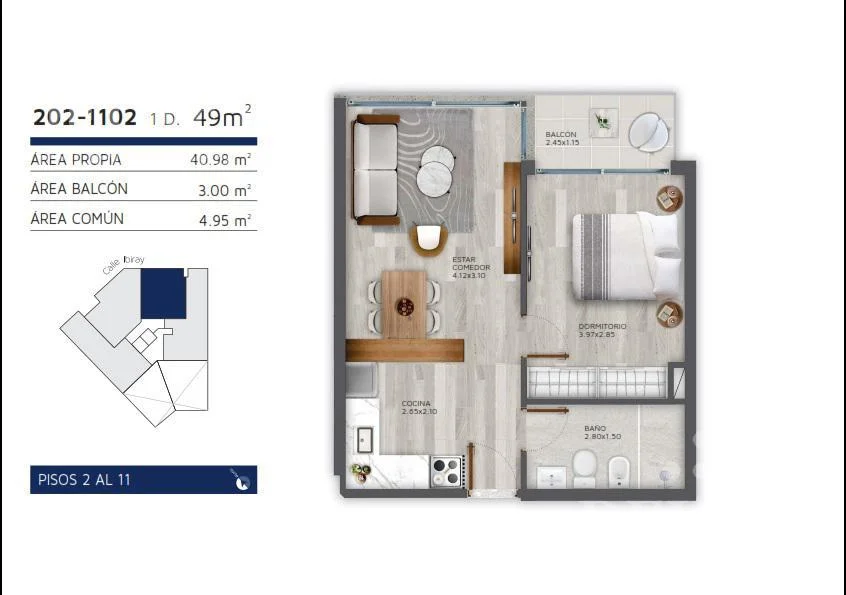 HERMOSO APARTAMENTO AMOBLADO AL FRENTE EN UN PUNTO EXCEPCIONAL.