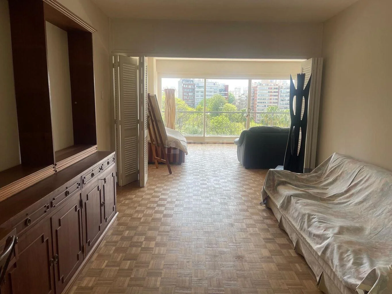 Living comedor apaisado con salida a terraza con muy linda vista al Parque