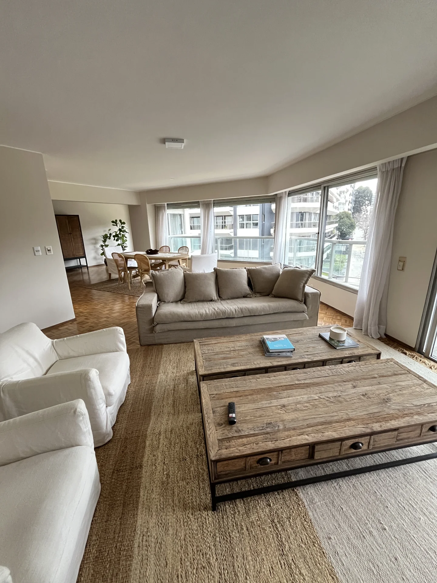 Son 129 m2 de planta +5 m2 de terrazas, todo en impecable estado, con baños y cocina recicaldos en con muy buen gusto, living comedor muy cómodo y apaisado con ventanales y salida a terraza al frente con hermosa vista al Parque,escritorio o estar (tambien al frente),cocina definida muy linda , con muchos placares y buenos electrodomésticos, baño social, 3 dormitorios con placares (el principal en suite), muy buen servicio completo (puede ser perfectamente un 4to dormitorio ya que está integrado al hall de distribucion ), losa central, y garaje con lugar fijo.