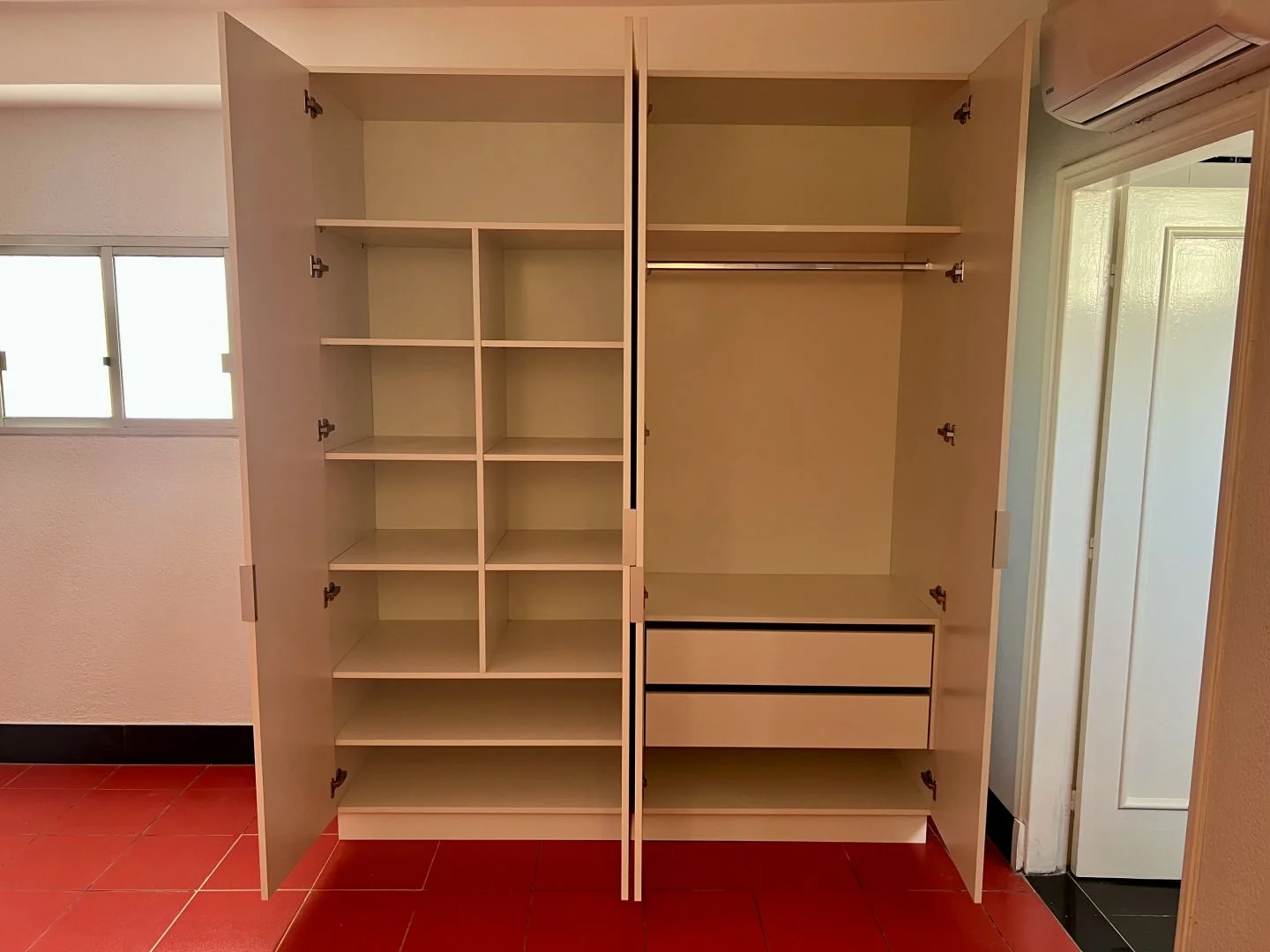 Gran dormitorio en suite con placard y aire acondicionado instalado.