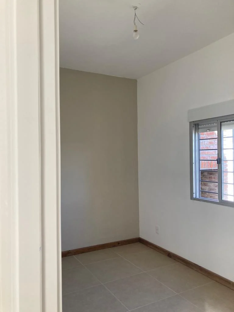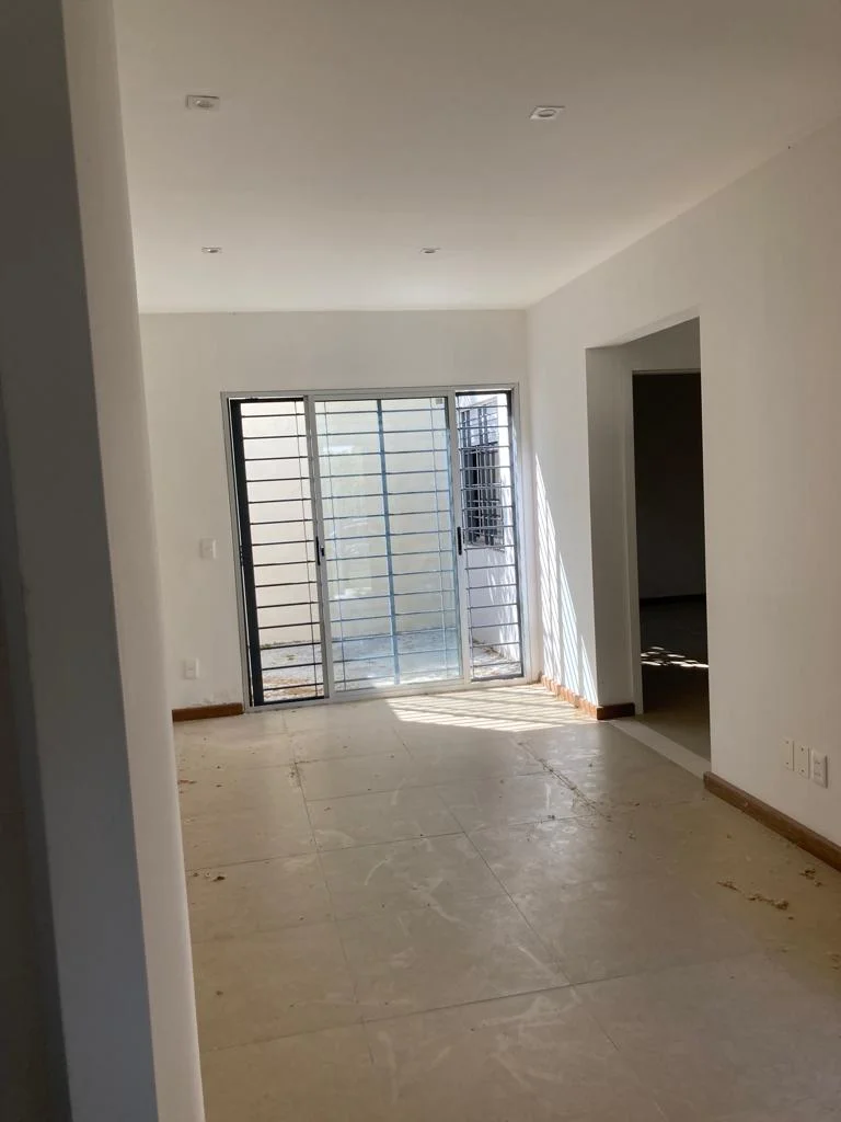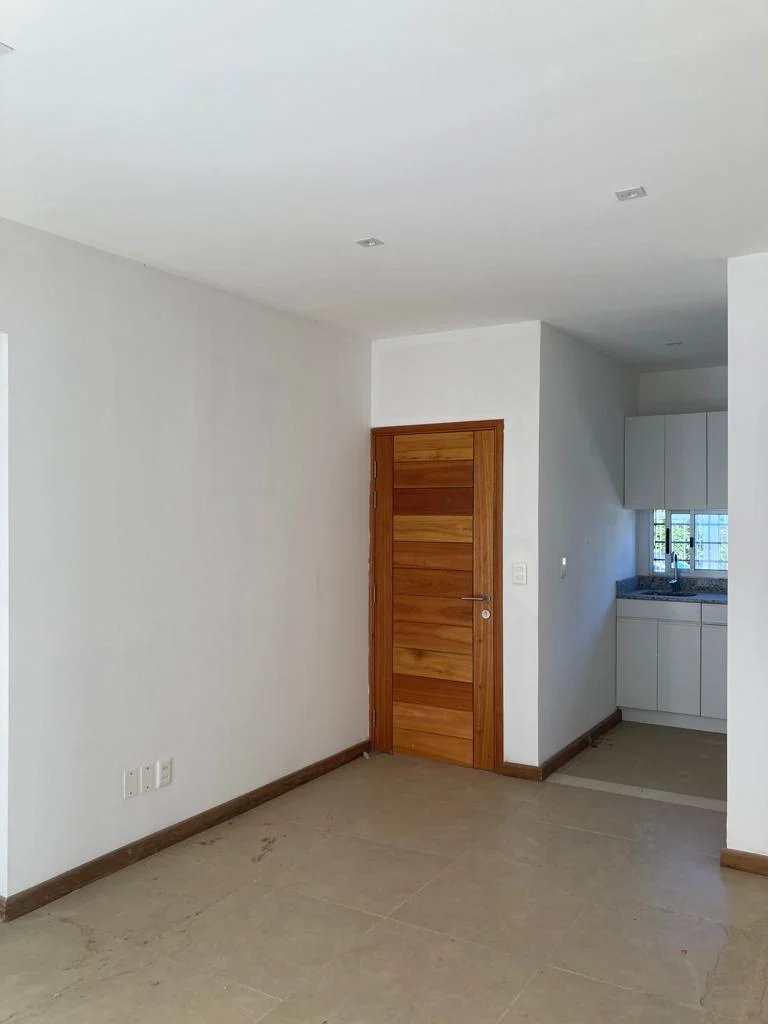 Living comedor al frente con cocina integrada. Salida a fondo.