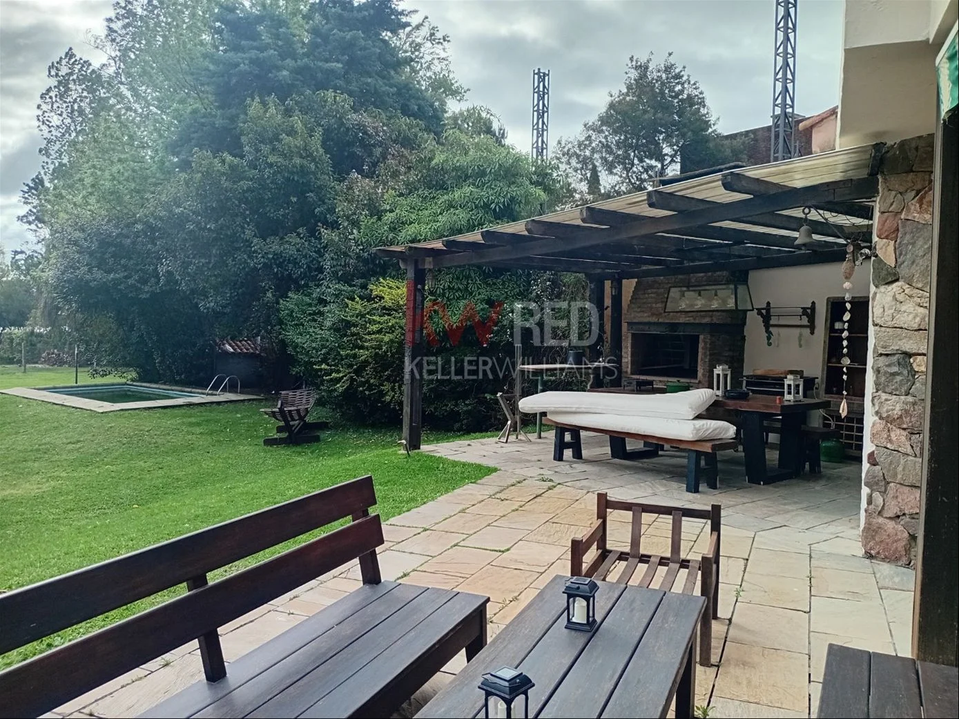 Cuenta con 267 m2 edificados sobre un terreno de 1015 m2. Propiedad en 2 plantas. En planta baja al entrar amplio ambiente en forma de L con grandes ventanales al frente y al fondo y una hermosa estufa a leña. Ambiente comedor con salida a importante terraza con parrillero. Cocina con abundantes placares. 1 ambiente con baño completo incluido, contando además con baño completo en esta planta. Entrada de servicio. En planta alta encontramos 3 ambientes con placares , (1 de ellos con baño completo y jacuzzi ). Baño completo con doble bacha, placares y muy amplio. Para el confort térmico, dispone de calefacción por aire acondicionado split en varios ambientes.