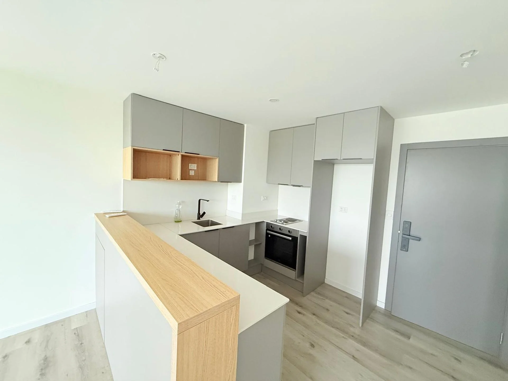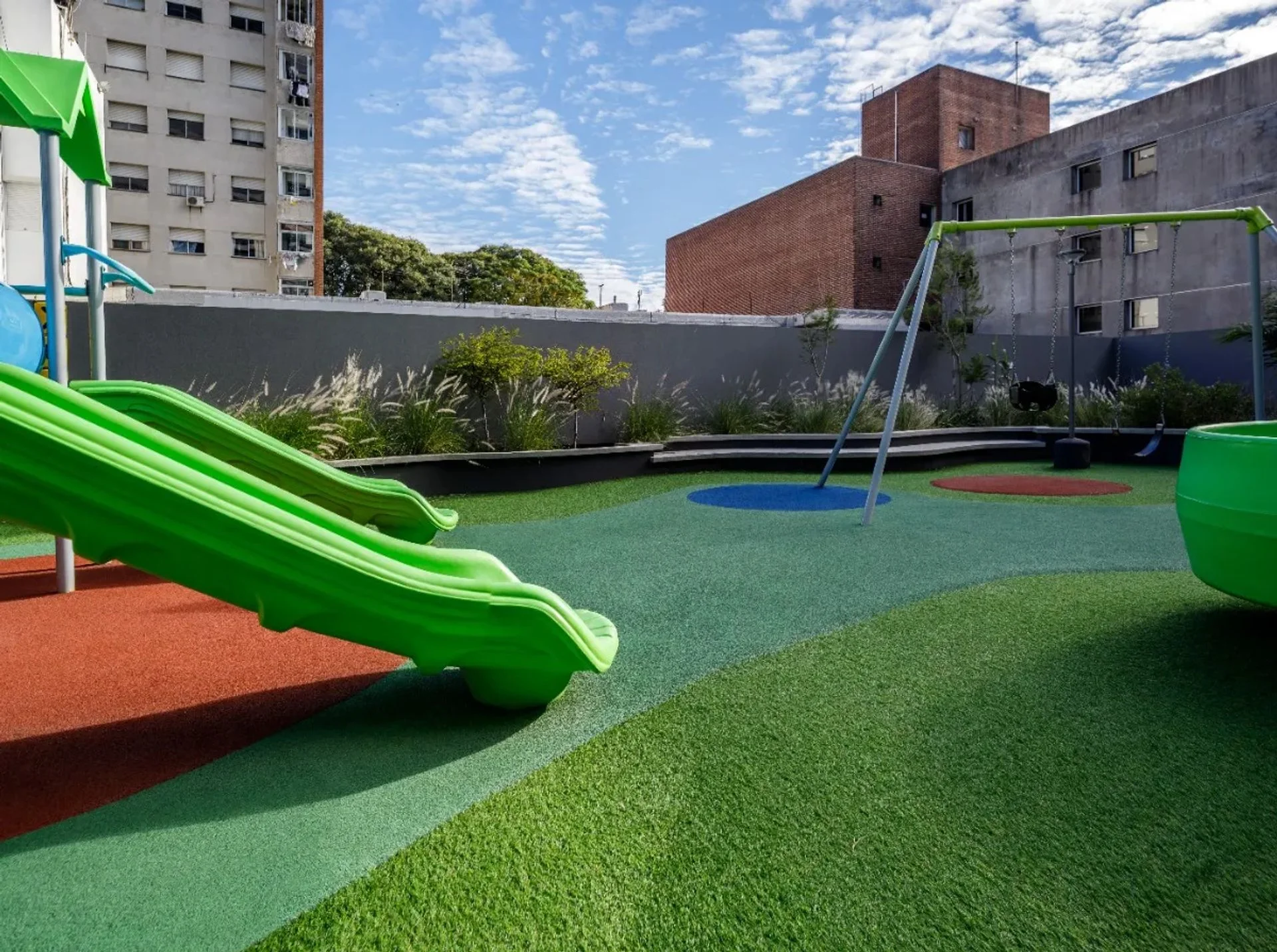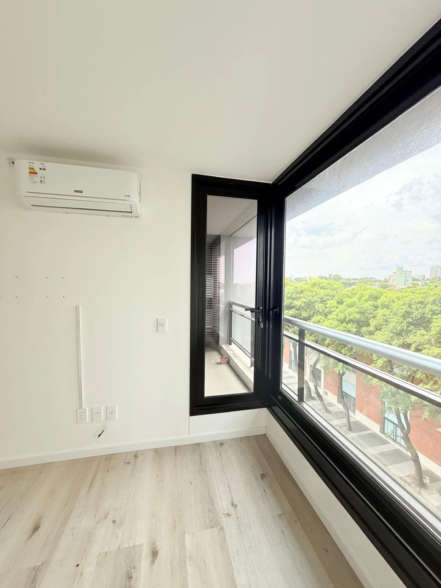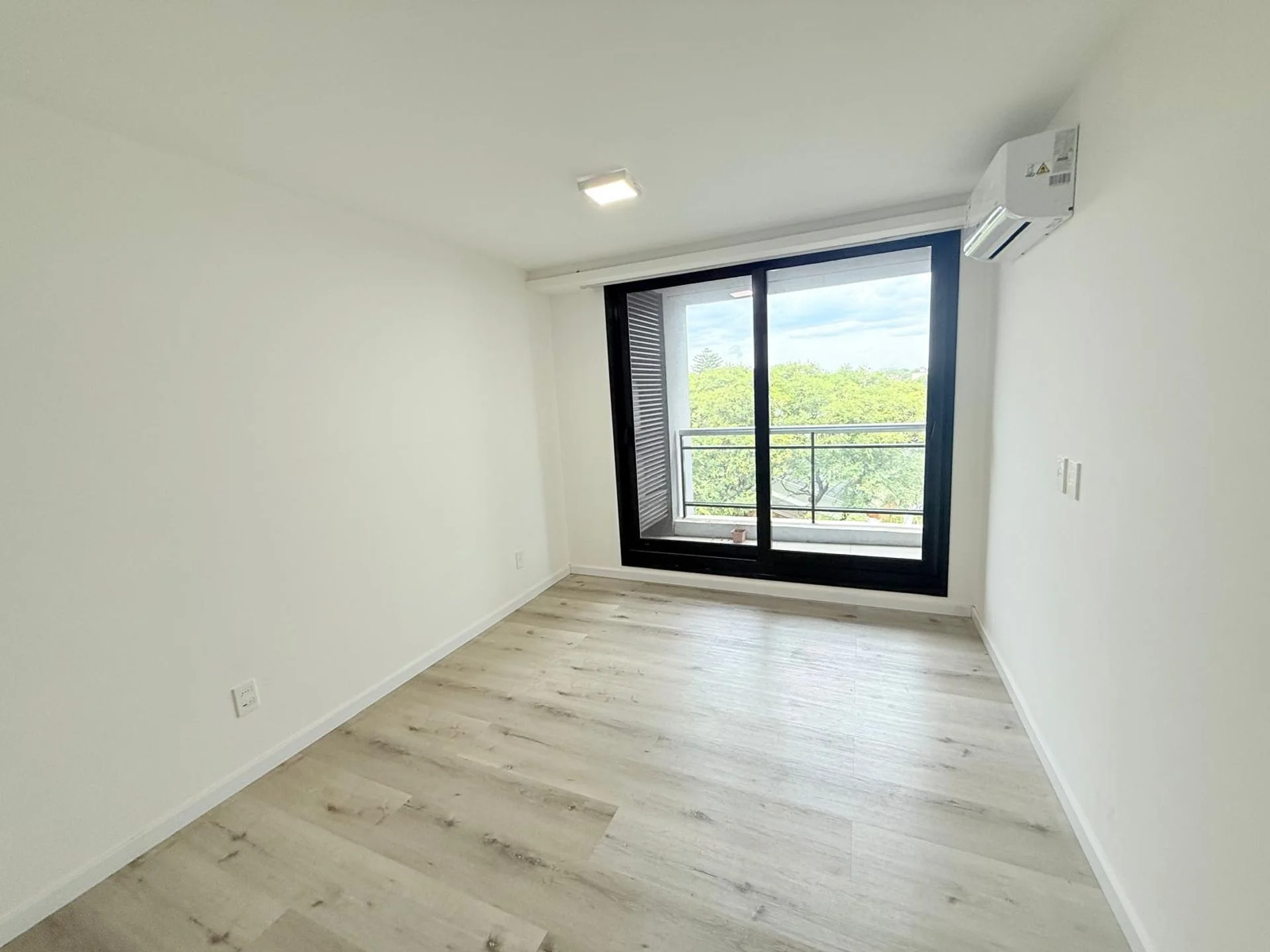 Equipamiento de primer nivel: cocina con horno empotrado, anafe, campana extractora, muebles bajo mesada y aéreos. Dormitorio con placard, aire acondicionado y acceso directo a terraza. Baño completo con artefactos modernos.