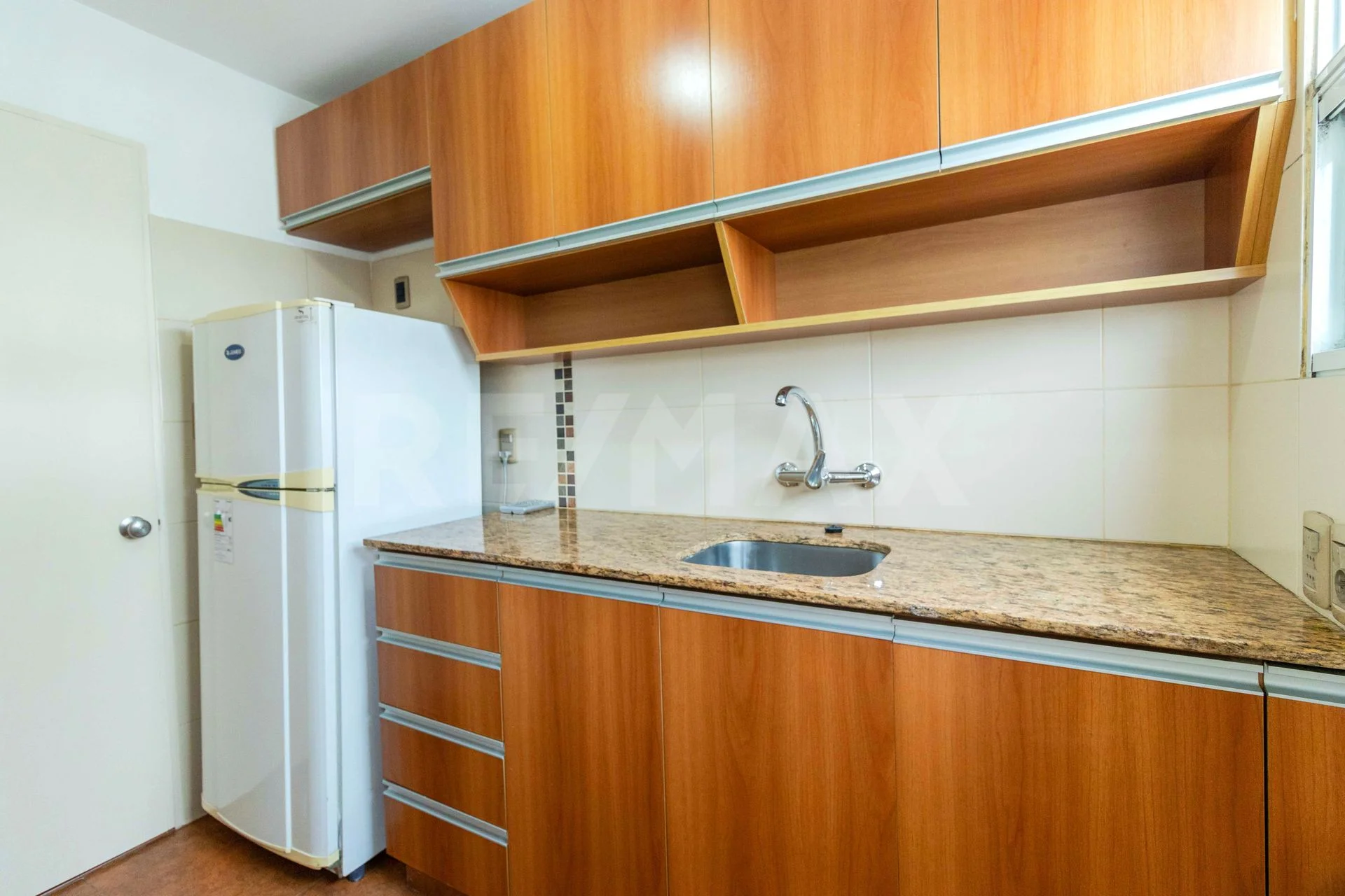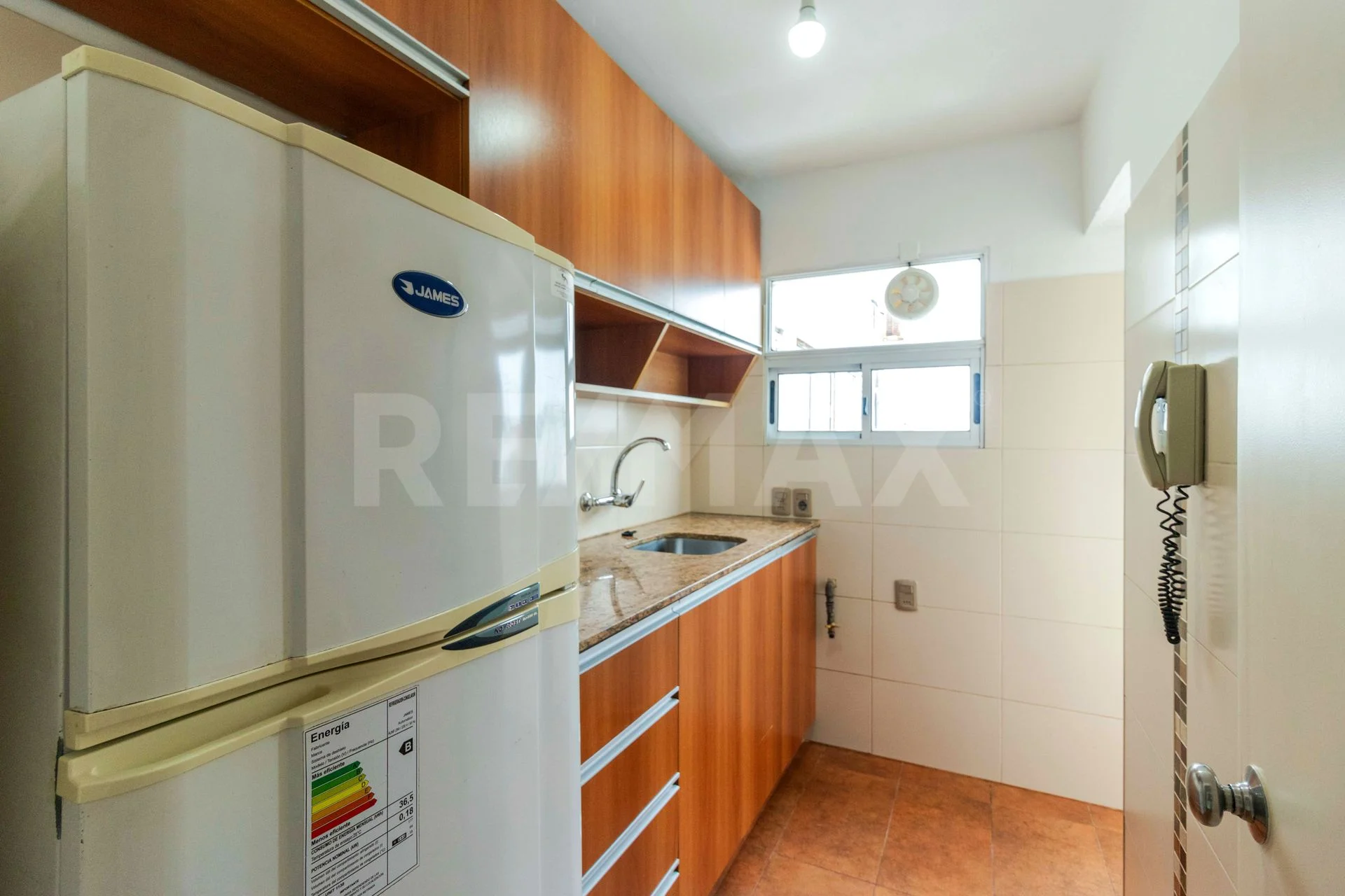 Un pasillo de distribución conecta los demás ambientes con practicidad. La cocina definida, compacta y funcional, cuenta con mesada de granito, placares renovados y extractor nuevo. Desde allí, se accede a una terraza lavadero cerrada, ideal para optimizar el espacio.