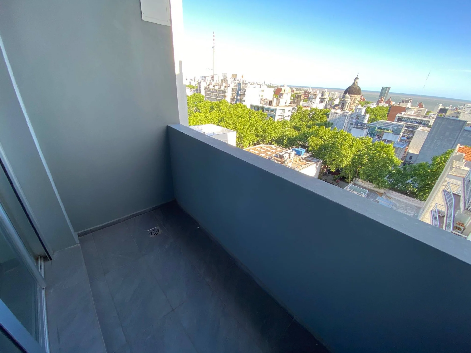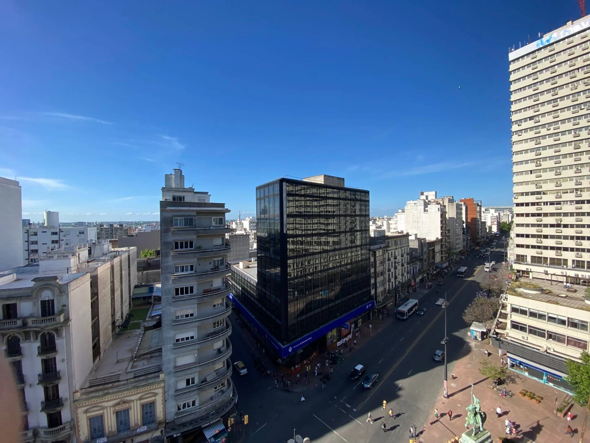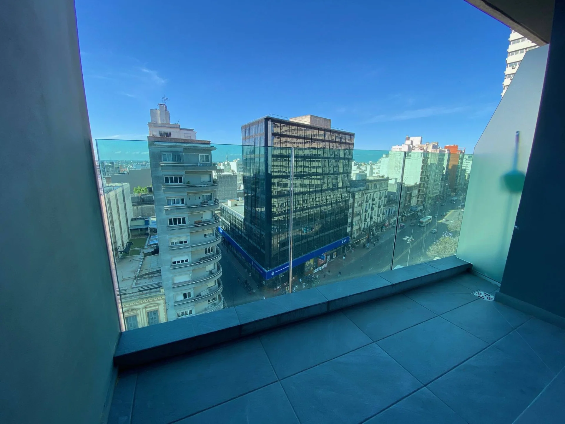 Living comedor amplio con acceso a amplia terraza, con vista a 18 de Julio