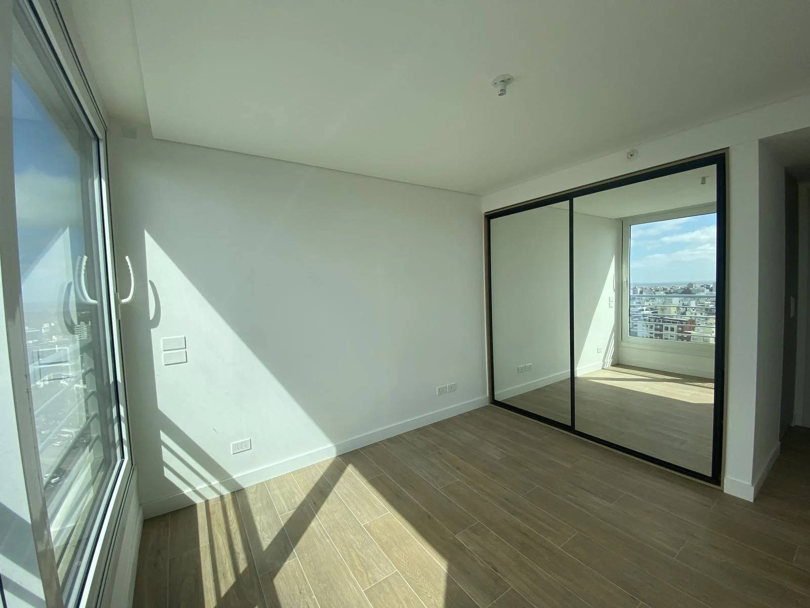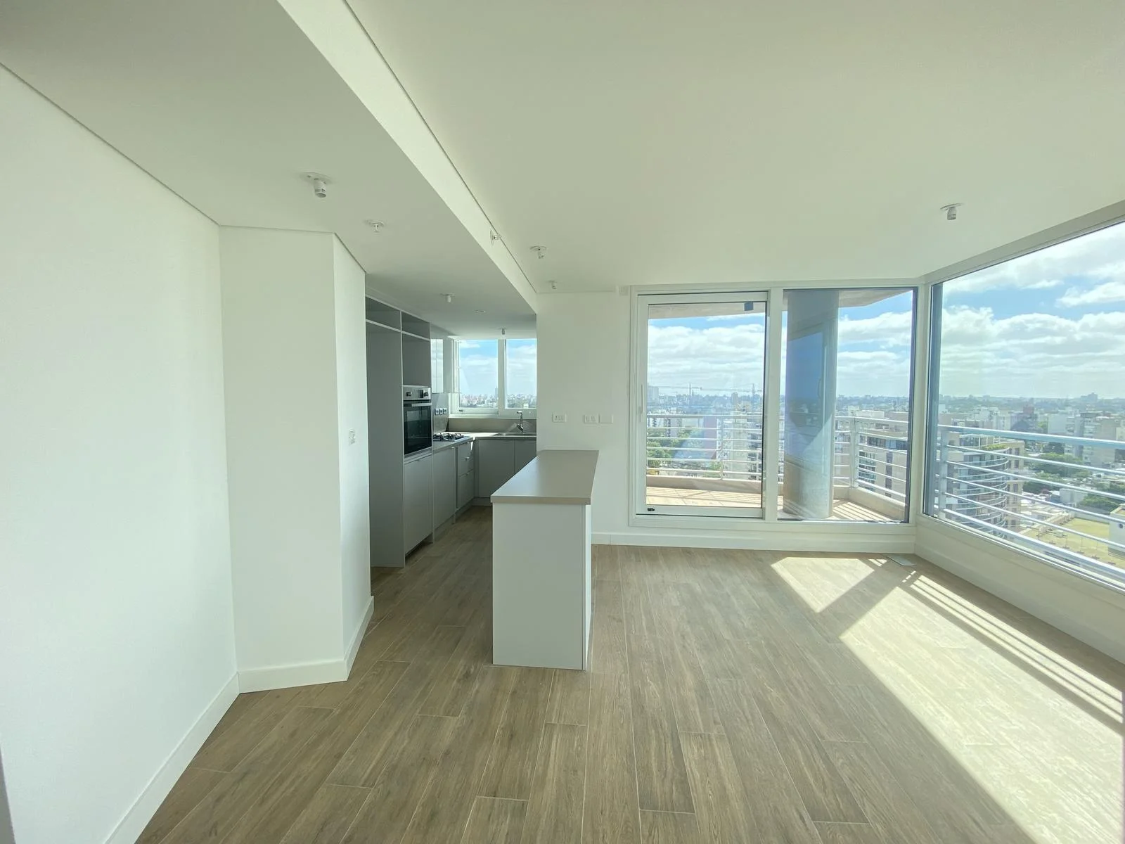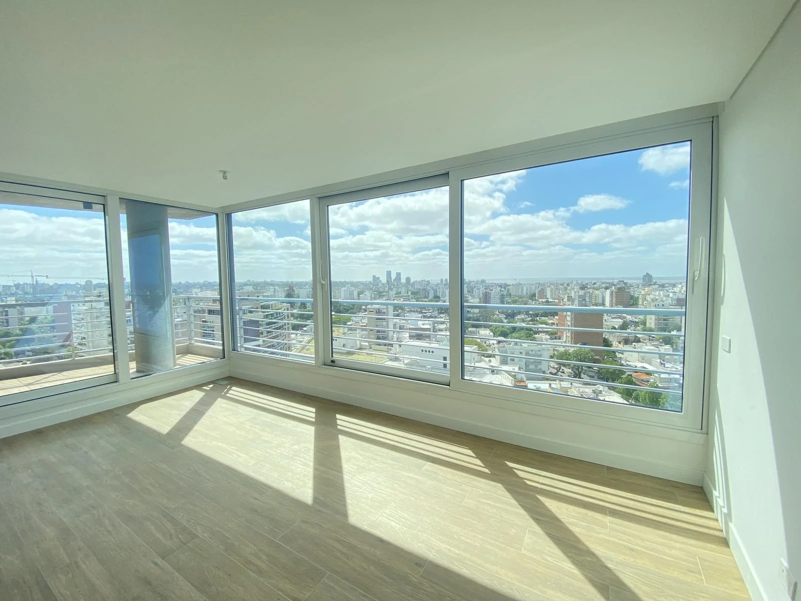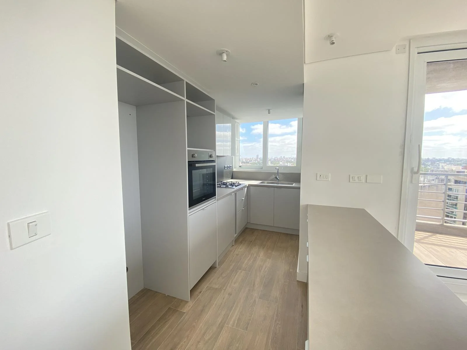 Apartamento premium de 2 dormitorios en el piso 17, equipado con horno, anafe, campana de extracción y lavavajilla, muebles bajo y sobre mesada. Pisos de porcelanato simil madera. Losa radiante por caldereta a gas sectorizada individual.