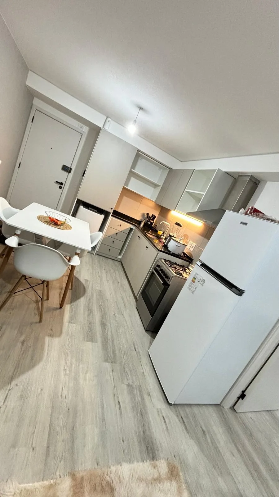 Ubicado en un piso alto, este apartamento ofrece una vista despejada y una excelente iluminación natural gracias a sus amplios ventanales de cristal. El living-comedor se integra armoniosamente con la cocina abierta, equipada con muebles aéreos y bajo mesada, brindando un diseño moderno y funcional. Desde esta área se accede a una terraza al frente, ideal para disfrutar del aire libre y la vista. El dormitorio es amplio y un gran ventanal que permite el acceso de luz y ventilación, además de ofrecer salida directa a la terraza. El baño completo es de gran tamaño, con acabados modernos y cómodos espacios de almacenamiento. El apartamento cuenta con garage.