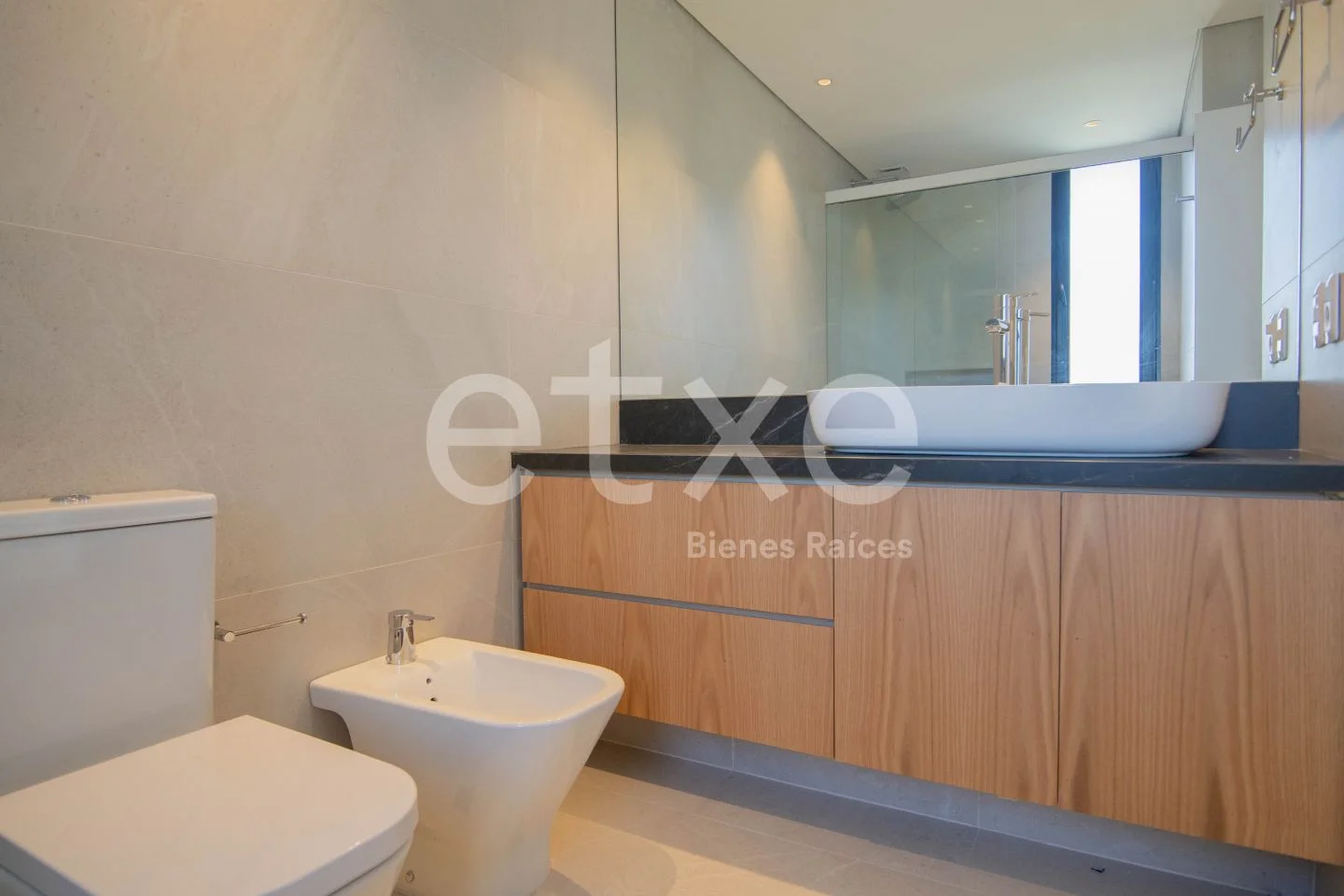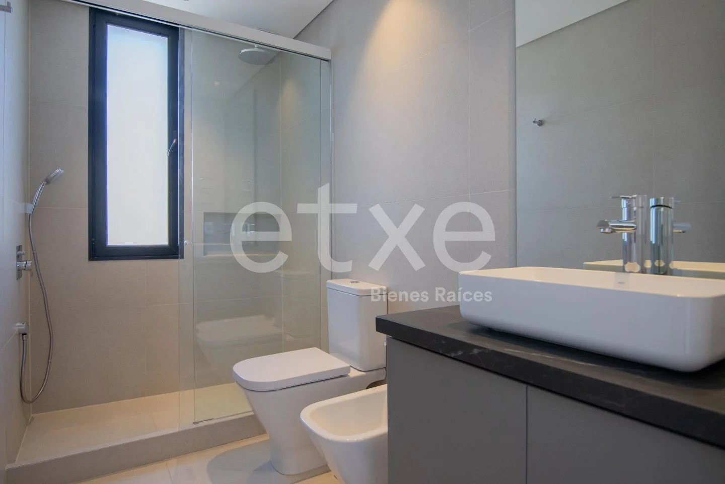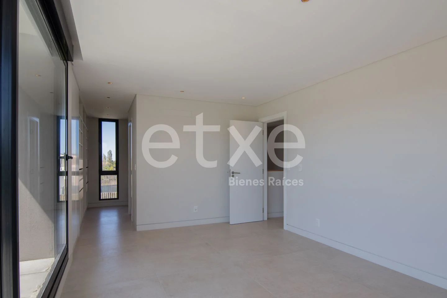 En planta alta, se encuentran tres dormitorios: el principal en suite con vestidor y terraza privada, y dos dormitorios adicionales que comparten un baño completo.
