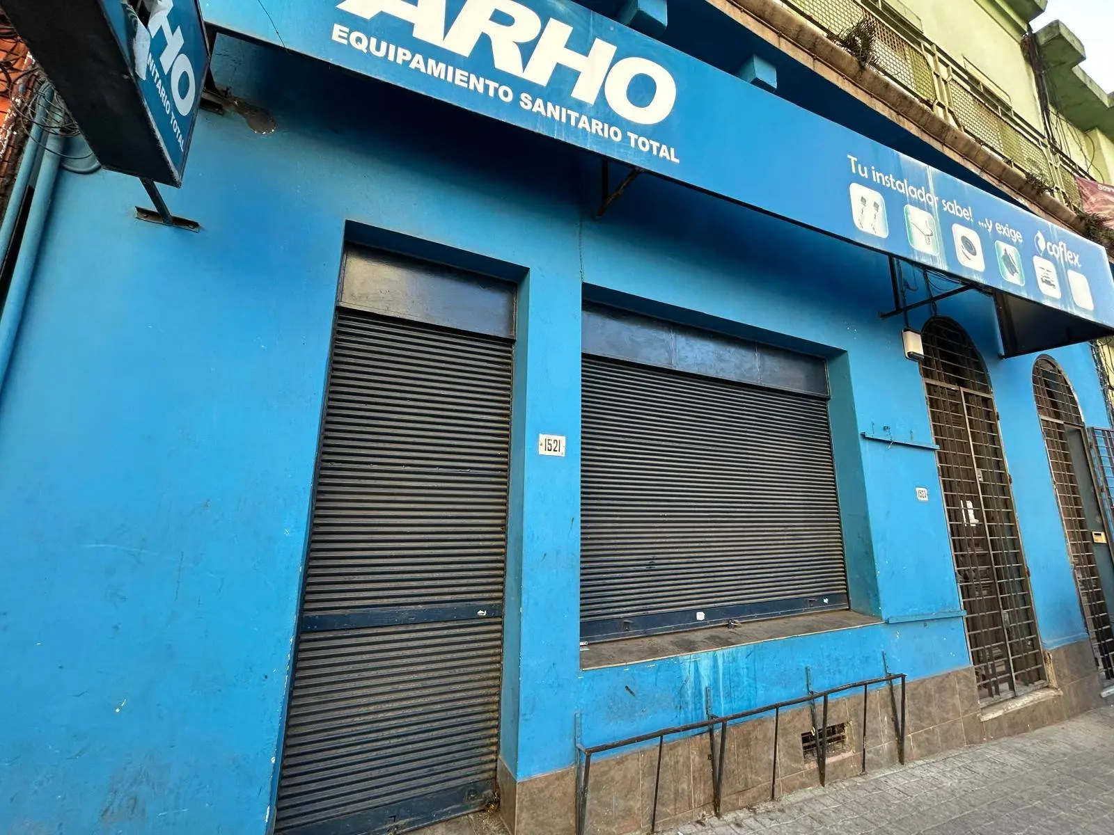 Amplia vidriera con cortina metalica electrica de seguridad.